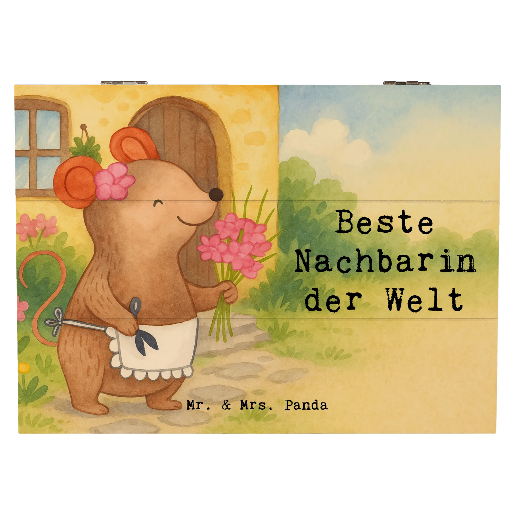 Die Kollektion Beziehungen feiert die Menschen, die unser Leben bereichern. Eine gute Nachbarschaft ist Gold wert, und mit dieser Truhe aus Holz zeigst du deiner Nachbarin, wie sehr du ihre Anwesenheit schätzt. Ob als Geburtstagsgeschenk, Mitbringsel zum Einzug oder einfach als Dankeschön zwischendurch – diese Holzbox mit Deckel ist ein Geschenktipp, der garantiert für ein Lächeln sorgt. Jedes Motiv von Mr. & Mrs. Panda wird mit viel Liebe im Norden Deutschlands entworfen. Die handgezeichneten Details der kleinen Gärtner-Maus machen die Holzbox zu einem Unikat, das man gerne ansieht. 💖