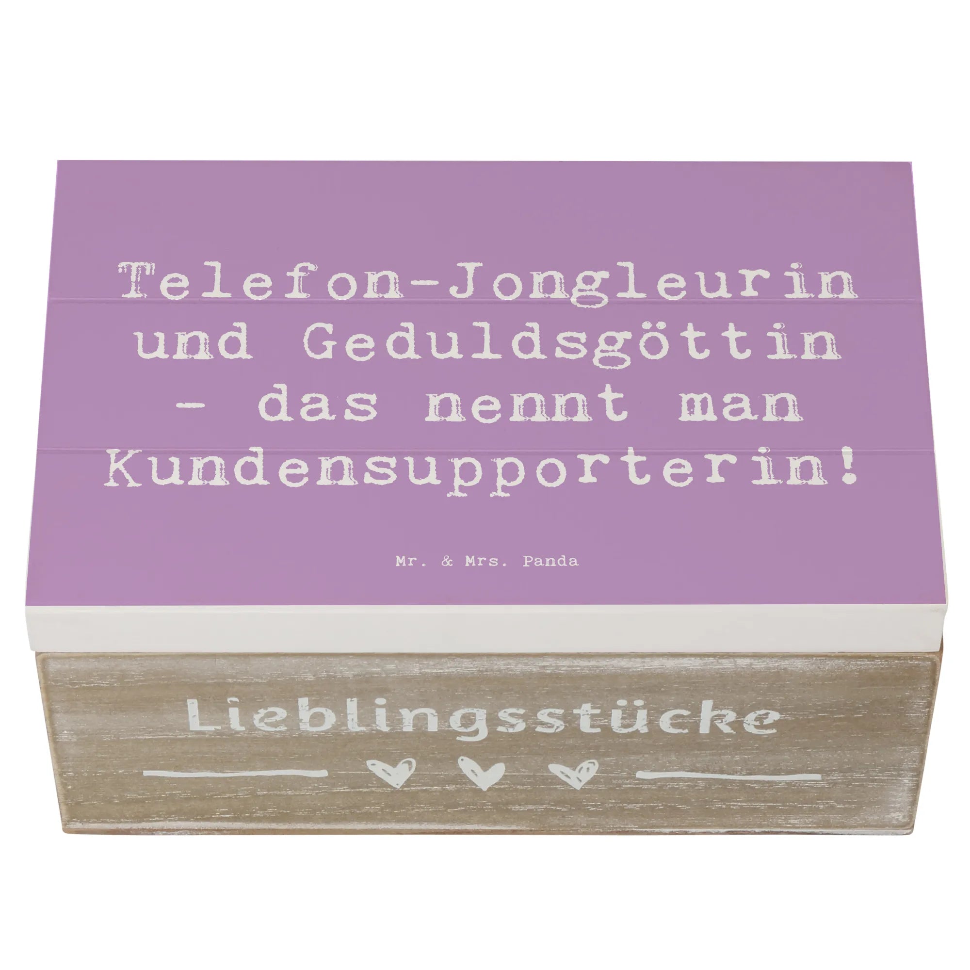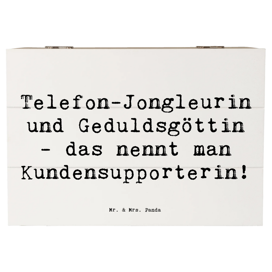 Entdecke die wunderschöne Holzkiste "Kundensupporterin" von Mr. & Mrs. Panda – die perfekte Geschenkidee für alle, die im Kundenservice arbeiten oder einfach nur eine tolle Erinnerungskiste suchen. Diese bezaubernde Kiste ist nicht nur hübsch anzusehen, sondern auch unglaublich praktisch. Mit dem zauberhaften Spruch "Telefon-Jongleurin und Geduldsgöttin - das nennt man Kundensupporterin!" wird jeder, der sie erhält, sofort ein Lächeln im Gesicht haben.