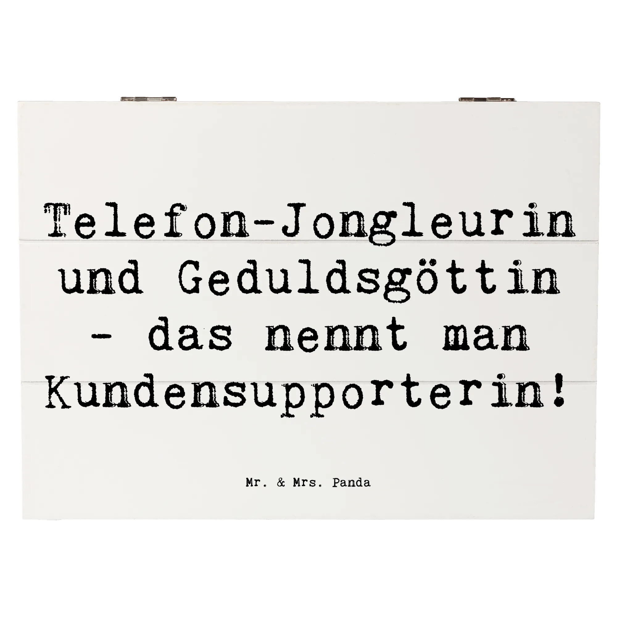 Die wunderschöne Holzkiste mit dem Motto "Telefon-Jongleurin und Geduldsgöttin - das nennt man Kundensupporterin!" von Mr. & Mrs. Panda ist das perfekte Geschenk für alle, die im Kundenservice arbeiten. Diese liebevoll gestaltete Erinnerungskiste bietet nicht nur einen praktischen Stauraum für wertvolle Schätze, sondern auch eine charmante Möglichkeit, Wertschätzung zu zeigen und Dankbarkeit auszudrücken. Mit ihrem hochwertigen Material aus robuster Holzfaser ist sie stabil und langlebig.