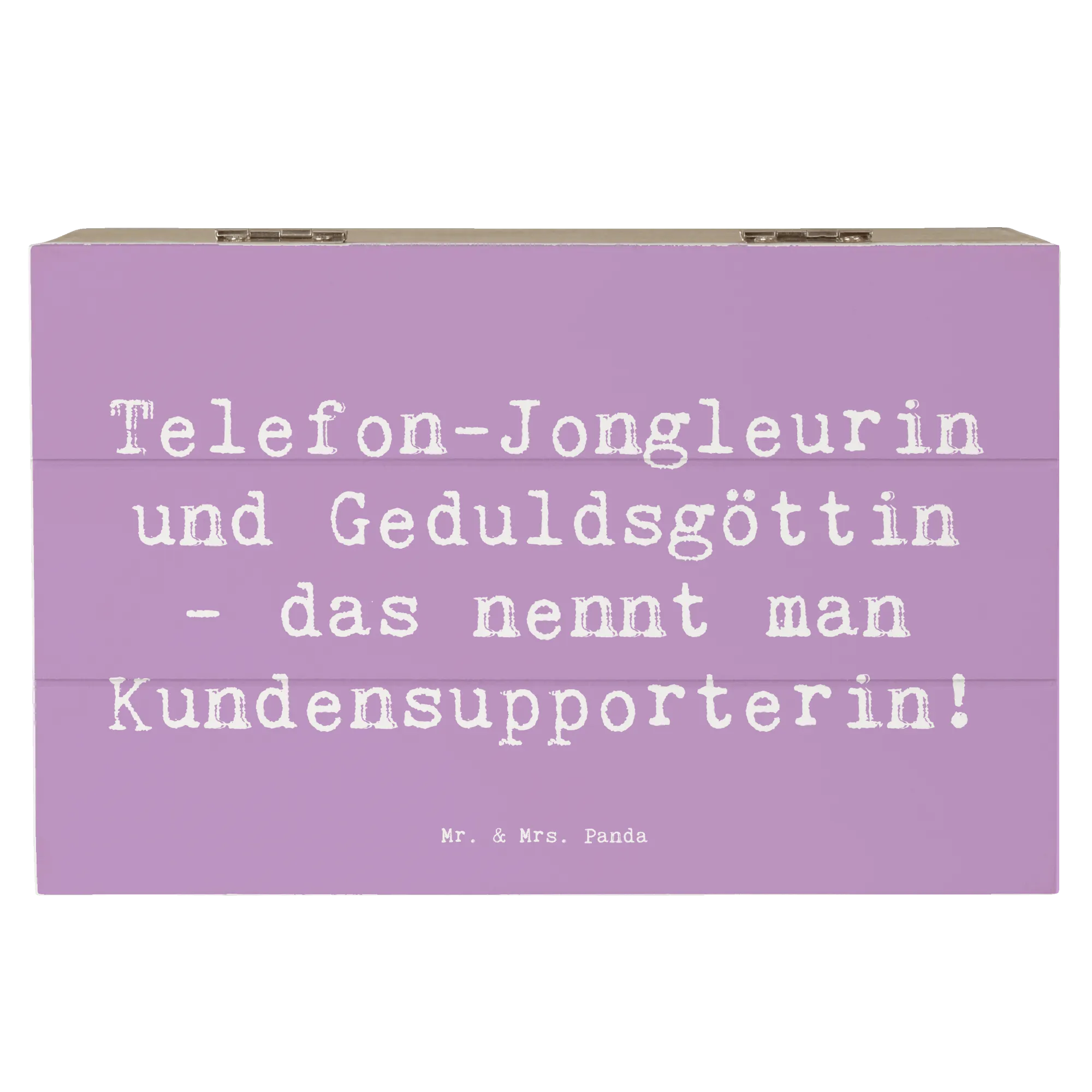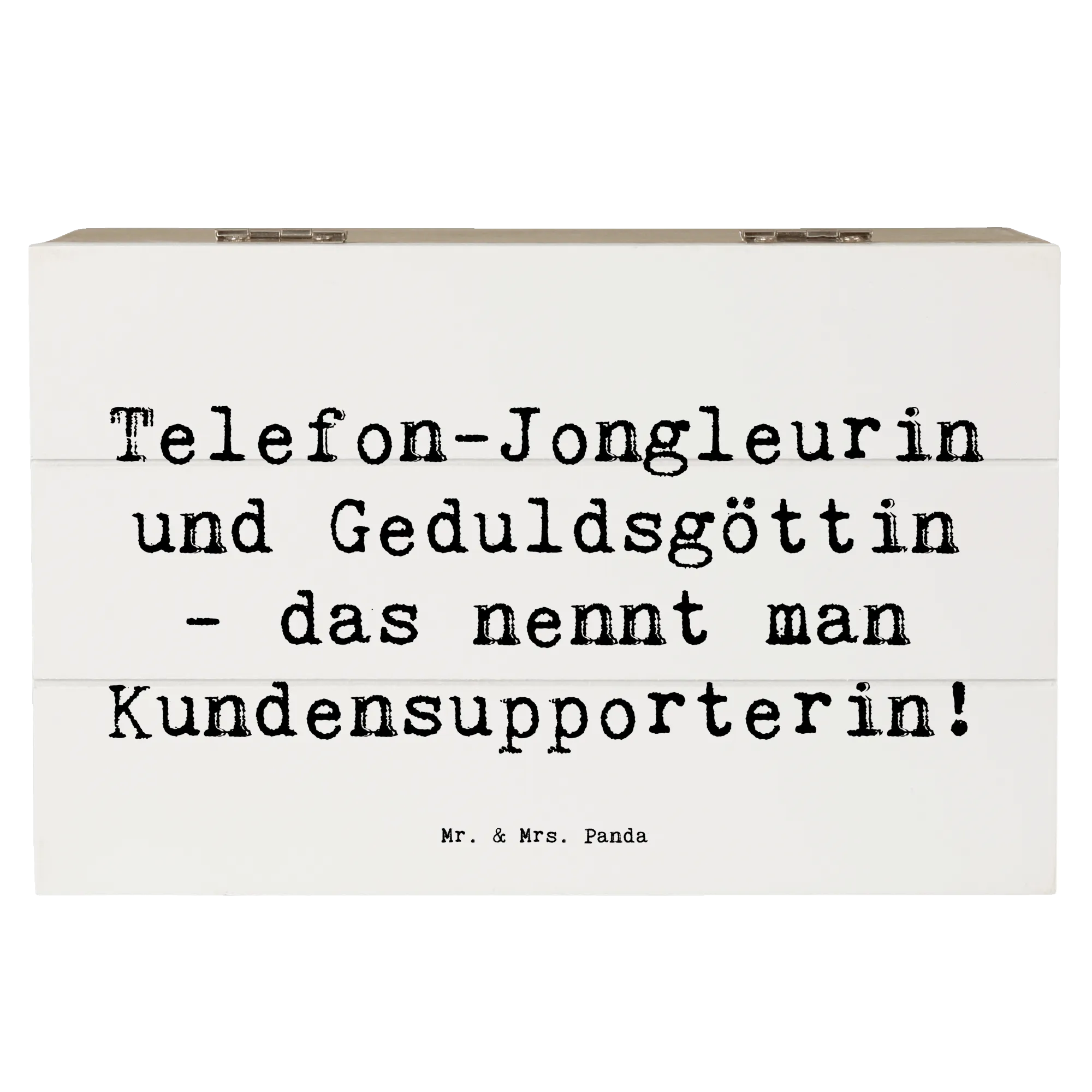 Die wunderschöne Holzkiste von Mr. & Mrs. Panda ist ein echtes Must-Have für alle Kundensupporterinnen da draußen! Bedruckt mit dem lustigen Spruch "Telefon-Jongleurin und Geduldsgöttin - das nennt man Kundensupporterin!", strahlt diese Kiste nicht nur Charme, sondern auch Wertschätzung aus.