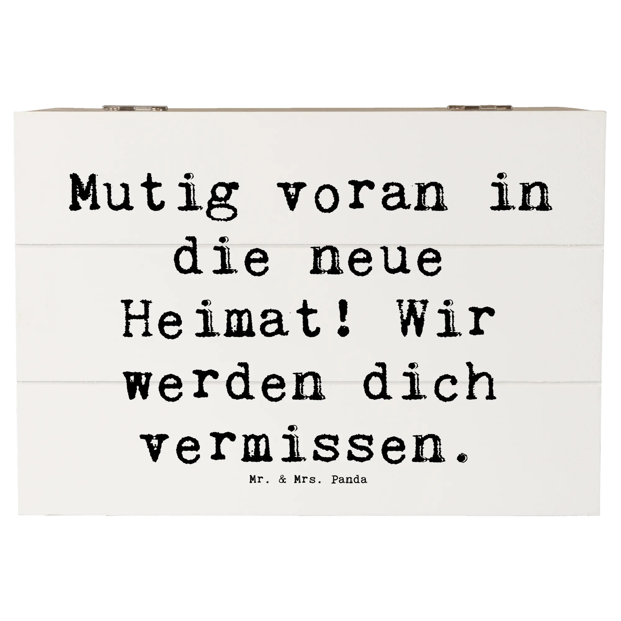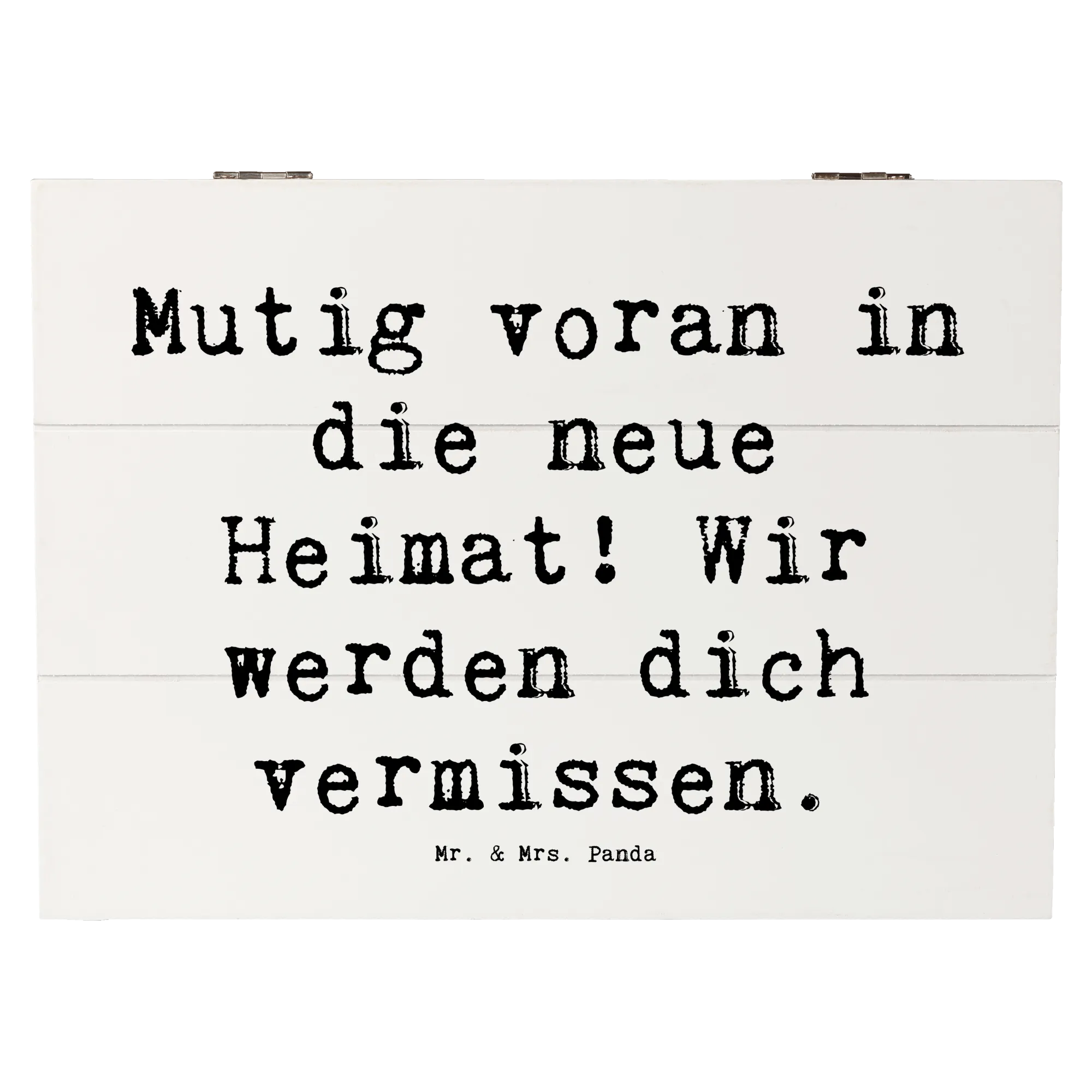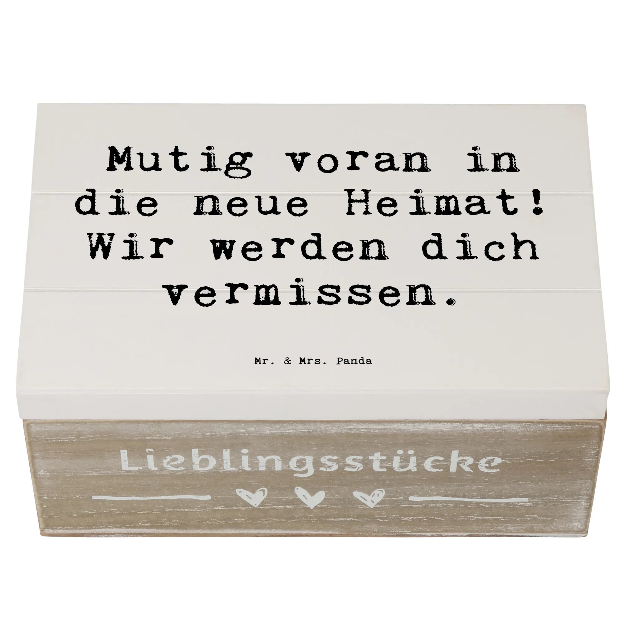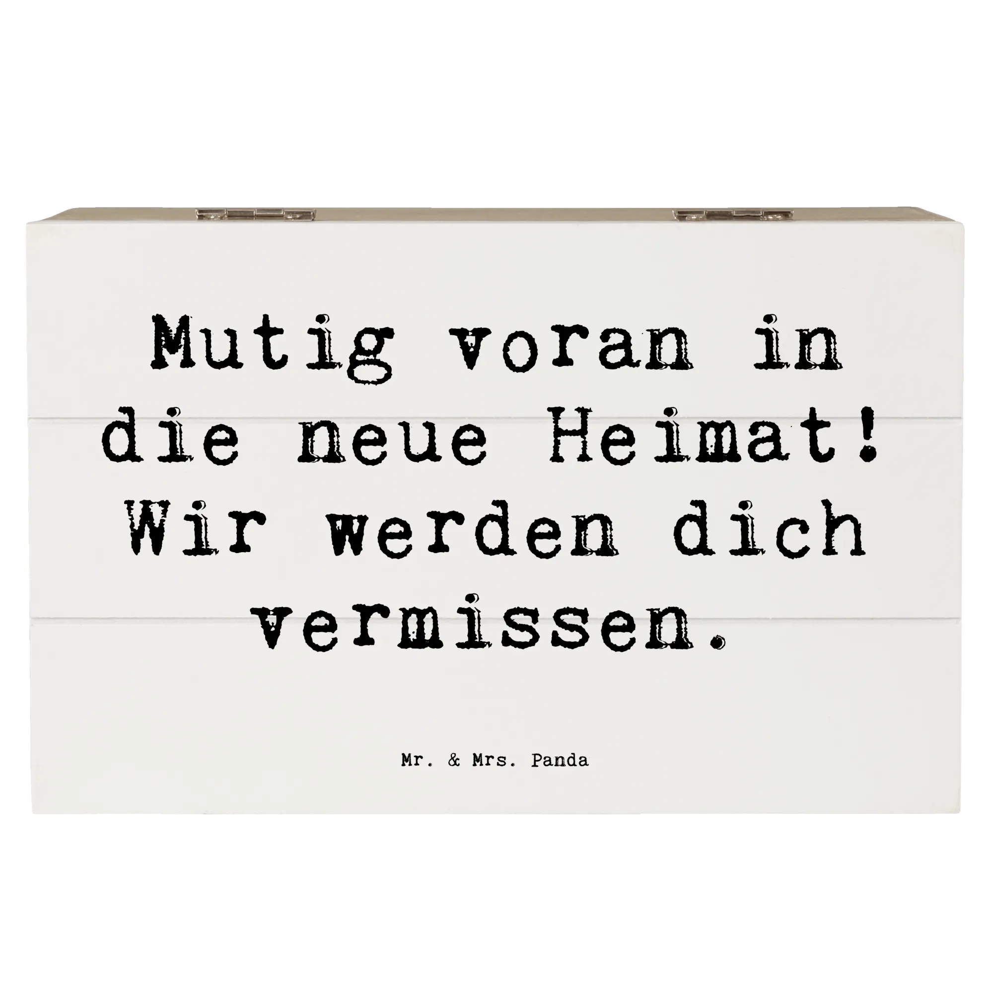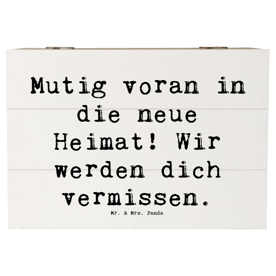 Entdecke die wunderschöne Holzkiste von Mr. & Mrs. Panda mit dem liebevollen Motiv "Umzug in eine neue Stadt" aus unserer Mutmacher-Kollektion. Diese besondere Schatzkiste ist nicht nur eine praktische Aufbewahrungslösung, sondern auch ein wunderschönes Geschenk für Freunde oder Familie, die einen Neuanfang wagen. Der Slogan "Mutig voran in die neue Heimat! Wir werden dich vermissen." vermittelt Trost und Zuversicht und zeigt, dass du an sie denkst, auch wenn sie weit weg sind.