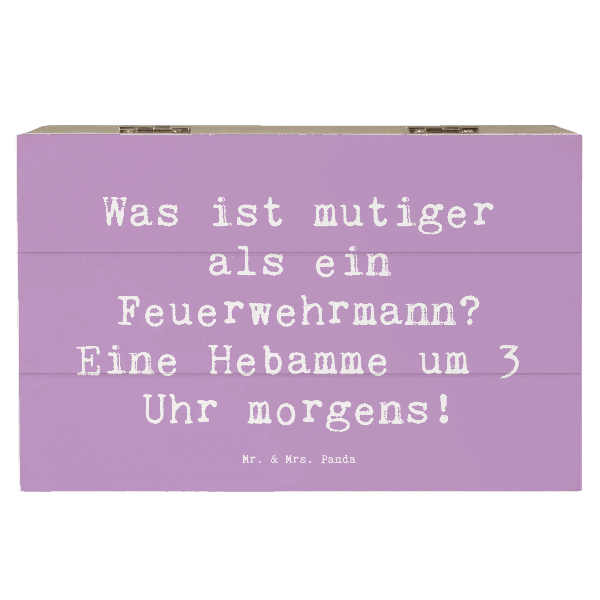 Die perfekte Holzkiste für alle Hebammen und Gesundheitshelden! Diese wunderschöne Erinnerungskiste von Mr. & Mrs. Panda wird schnell zum ganz persönlichen Aufbewahrungsort für kostbare Schätze und Erinnerungen. Ob zur Geburt eines Kindes, zur Feier einer Konfirmation oder einfach nur zur Aufbewahrung von kleinen Andenken – diese Kiste bietet den idealen Platz. Mit dem liebevoll gestalteten Motiv einer Hebamme und dem humorvollen Spruch "Was ist mutiger als ein Feuerwehrmann? Eine Hebamme um 3 Uhr morgens!" bringt sie ein Lächeln in jedes Herz.