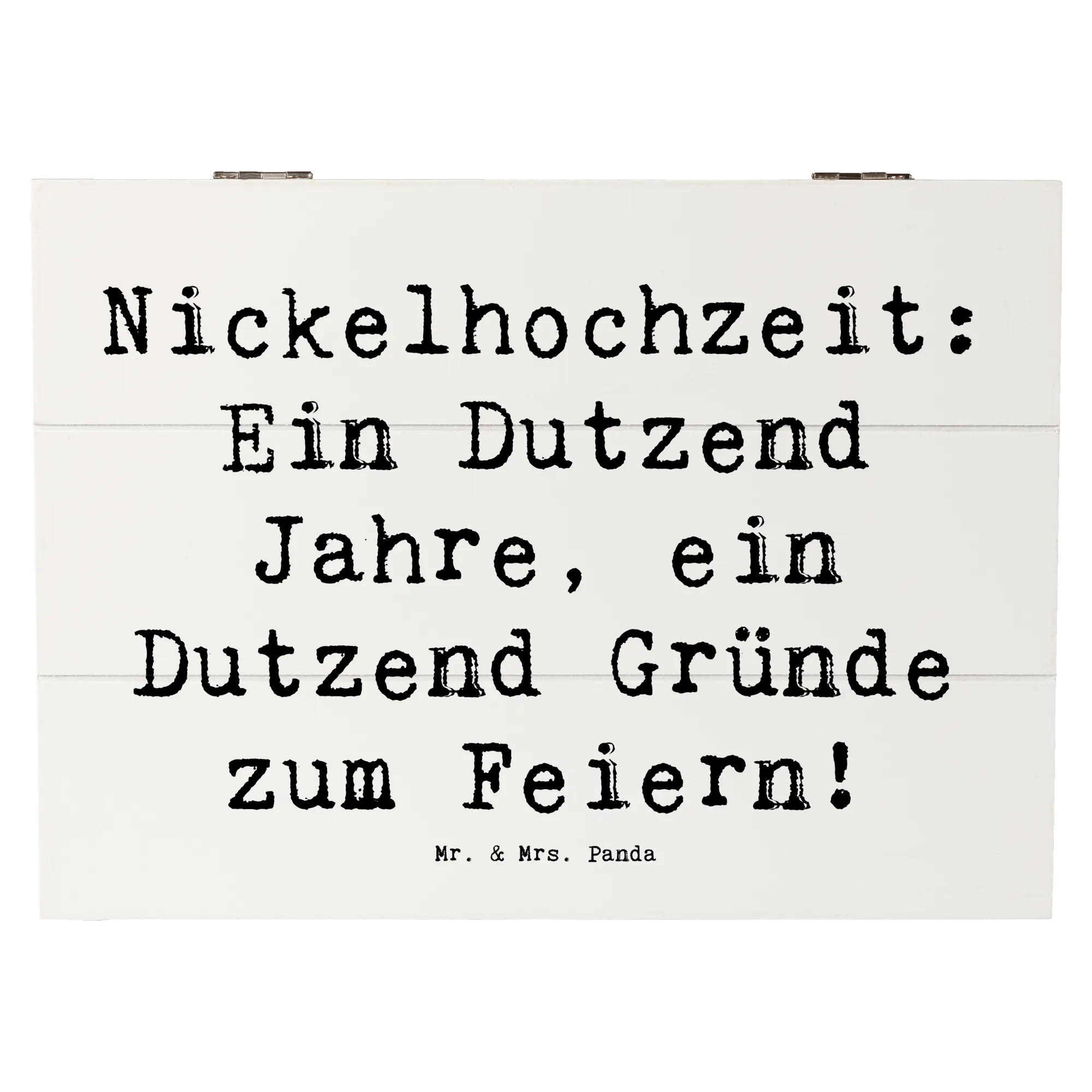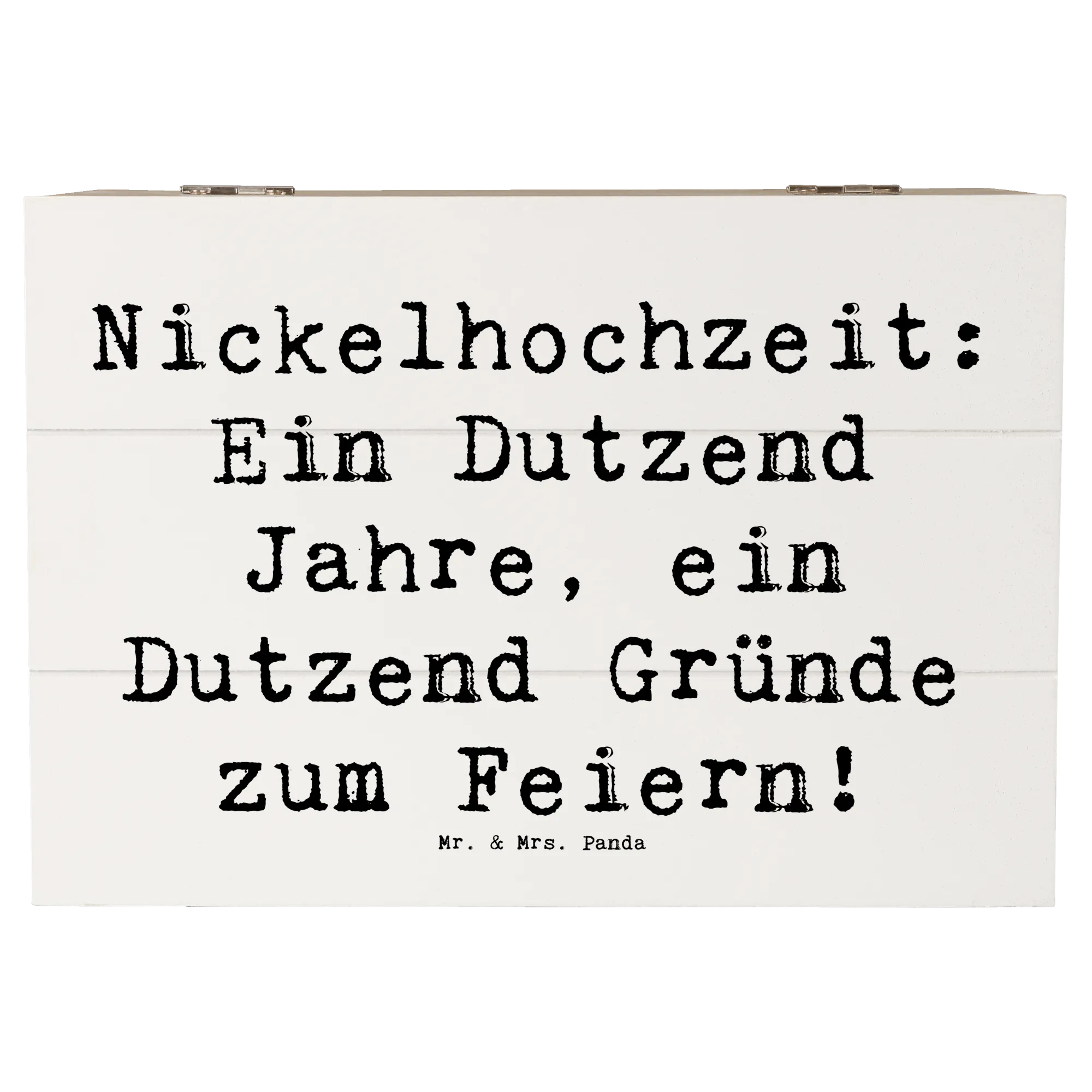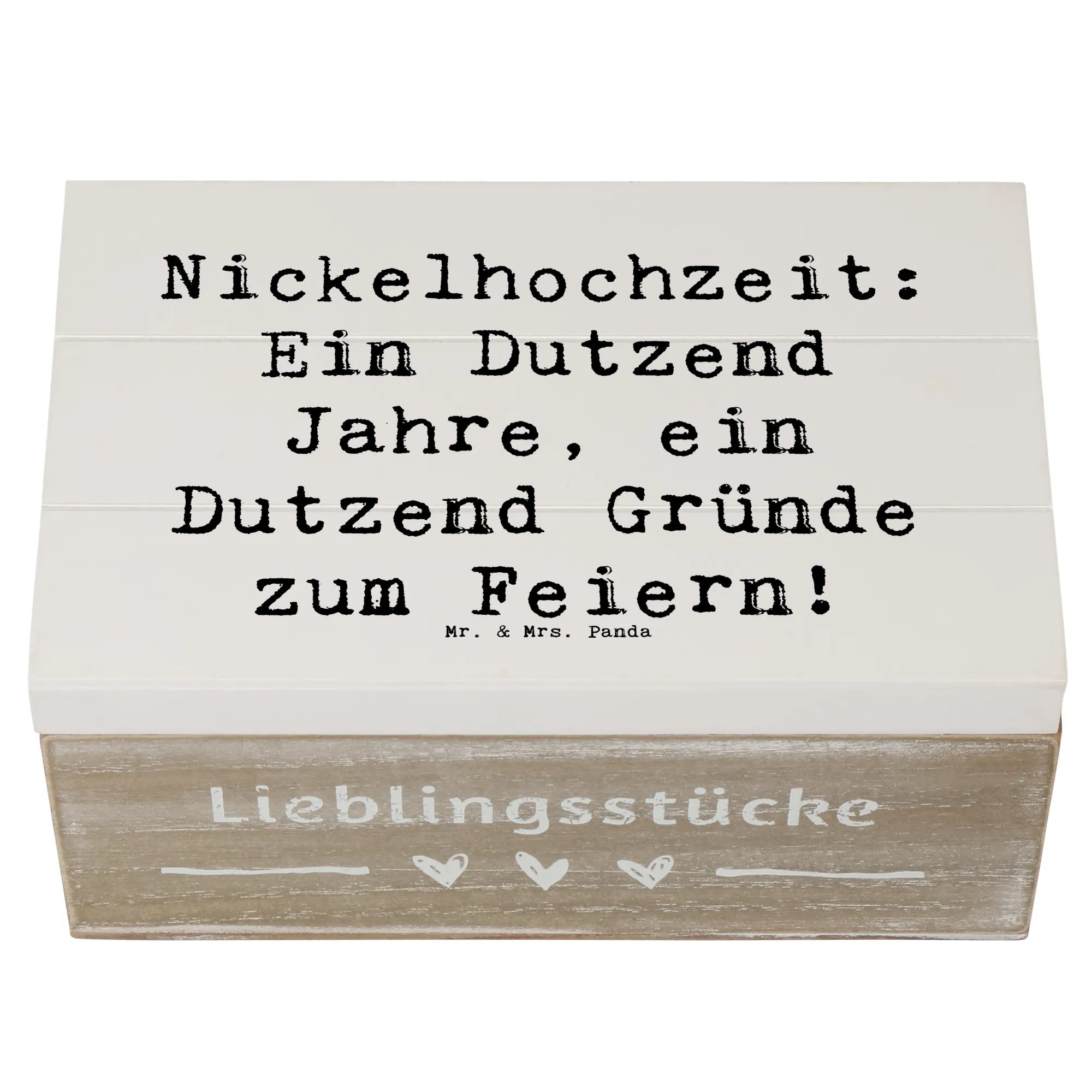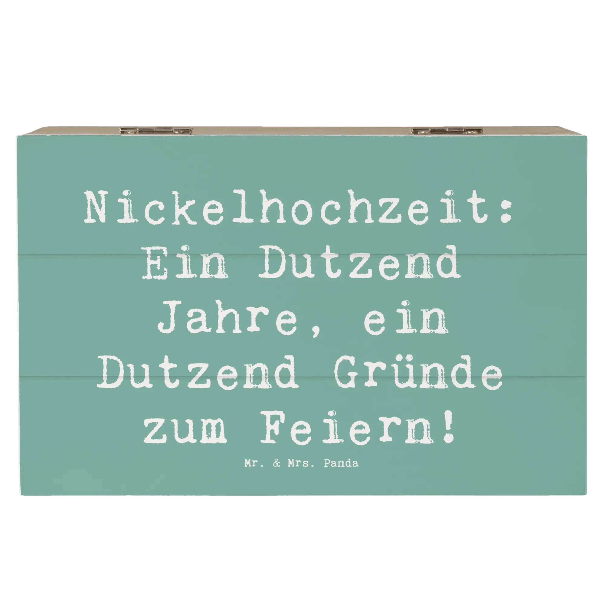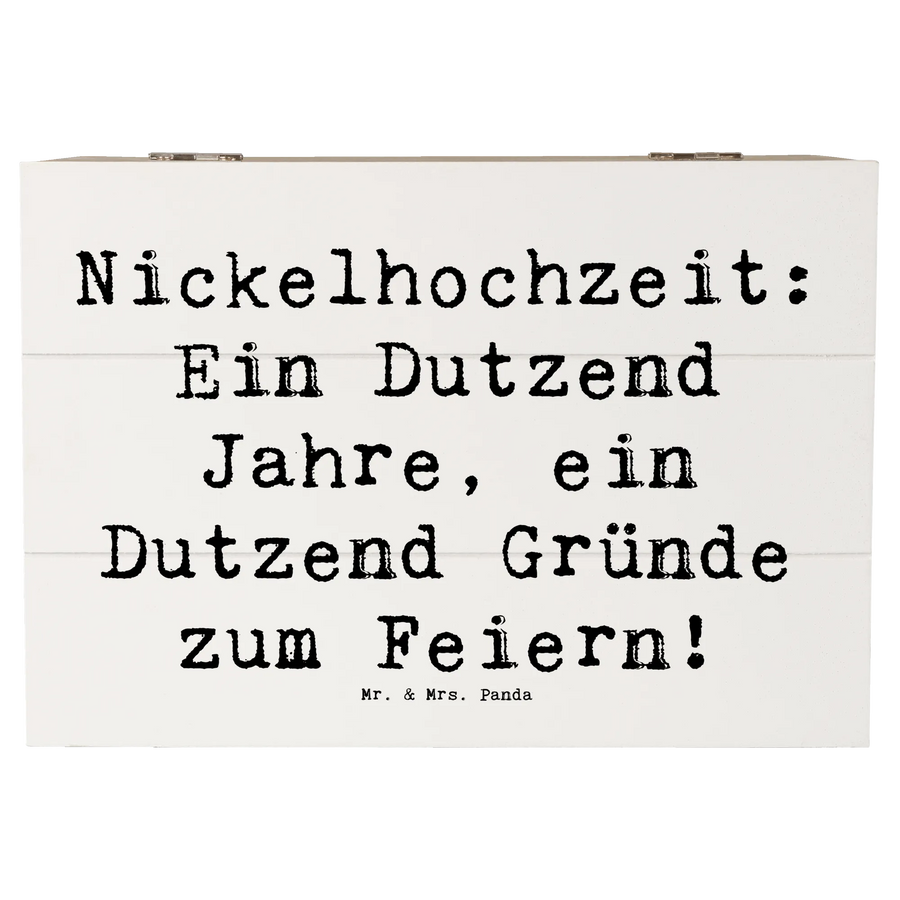 Die wunderschöne Holzkiste von Mr. & Mrs. Panda, bedruckt mit dem liebevollen Slogan "Nickelhochzeit: Ein Dutzend Jahre, ein Dutzend Gründe zum Feiern!", ist der perfekte Begleiter zum 12. Hochzeitstag. Diese stilvolle Kiste ist ideal für alle, die ihr gemeinsames Leben feiern und eine besondere Erinnerung an diesen tollen Anlass schaffen möchten. Egal, ob du sie selbst nutzen möchtest, um die schönsten Schätze aus deiner gemeinsamen Zeit aufzubewahren, oder als liebevolles Geschenk für ein Brautpaar oder Freunde zur Hochzeit – diese Erinnerungskiste passt perfekt zu jedem Anlass rund um die Liebe!