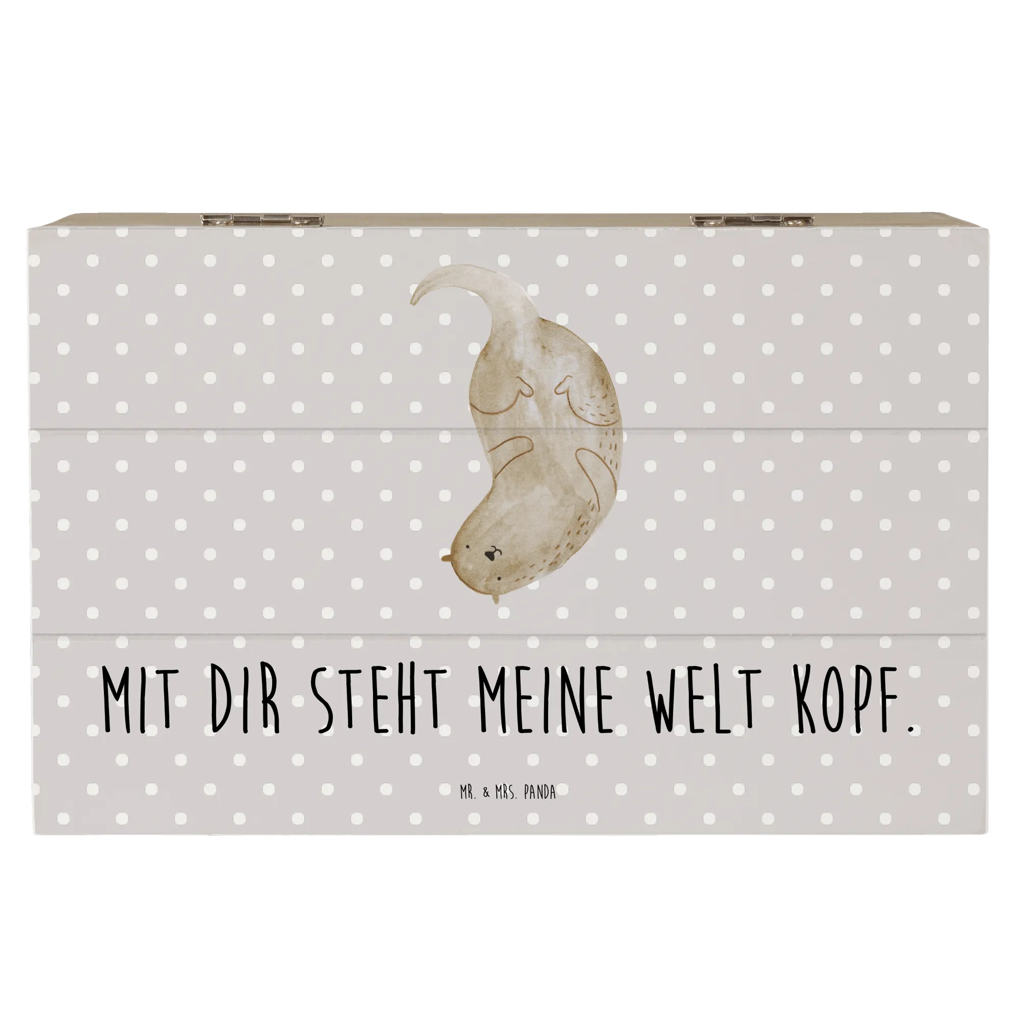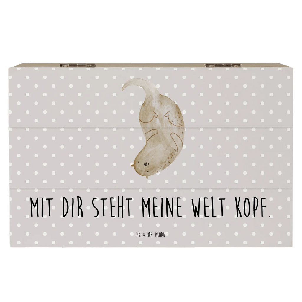 Eine wunderschöne Holzkiste von Mr. & Mrs. Panda – verziert mit dem liebevollen Otter-Motiv „Otter kopfüber“ und dem Spruch „Mit Dir steht meine Welt Kopf.“ Diese dekorative Erinnerungskiste ist mehr als eine Aufbewahrungsbox: Sie ist ein Herzstück für all deine wertvollen Erinnerungen.