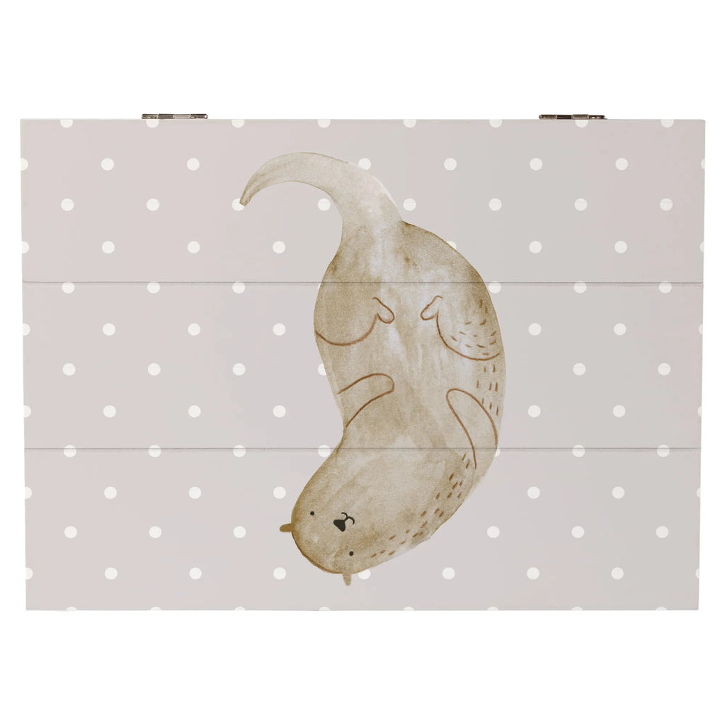 Mr. & Mrs. Panda Holzkiste „Otter kopfüber“ – eine liebevolle Erinnerungskiste und Geschenkbox in einem. Das handgezeichnete Otter-Motiv zeigt einen fröhlichen Otter, der kopfüber durchs Wasser schwimmt und dir ein Lächeln ins Gesicht zaubert. Diese dekorative Holzbox ist ideal als Schatzkiste für Fotos, Briefe, erste Babyschuhe oder kleine Erinnerungsstücke zu Taufe, Kommunion, Konfirmation oder Hochzeit.