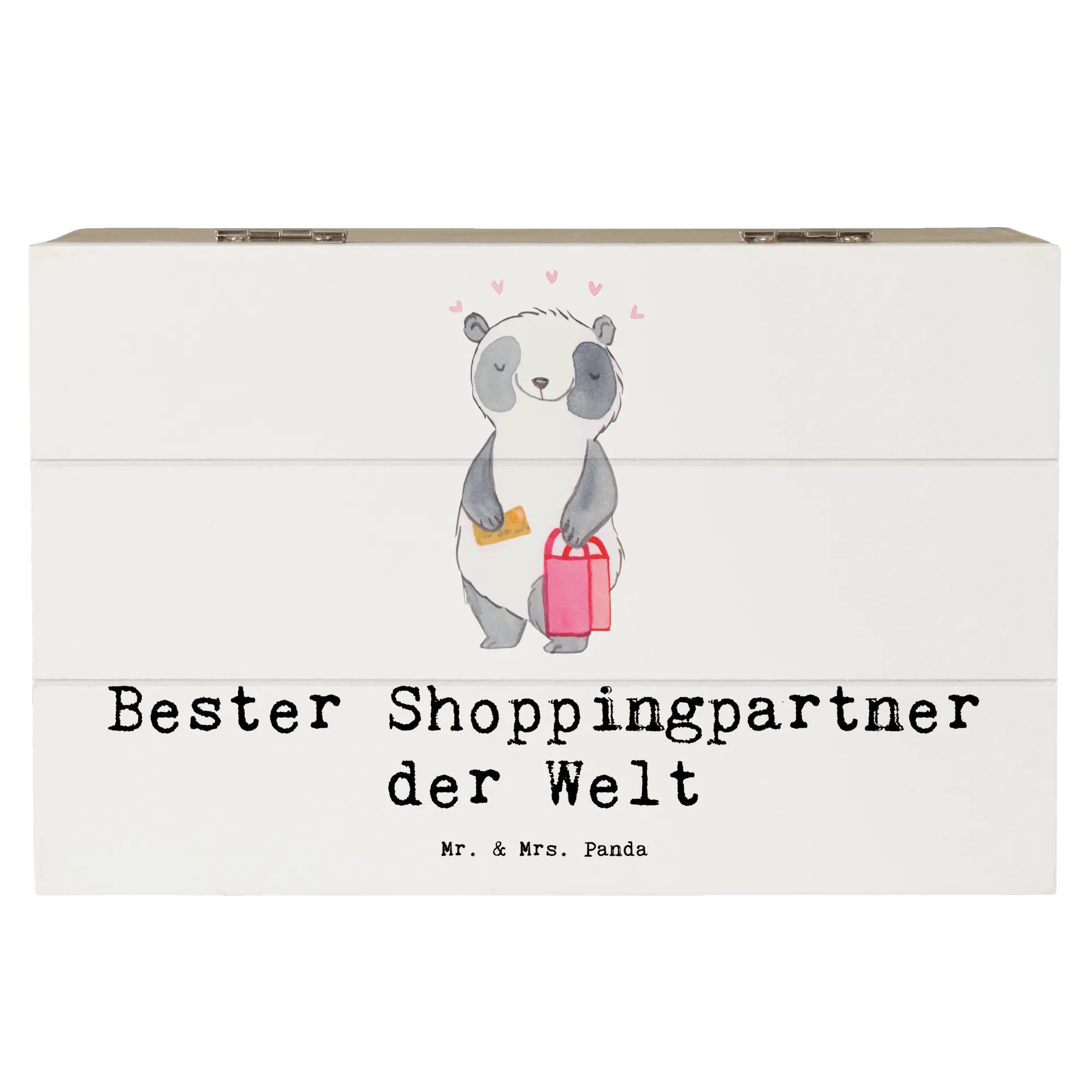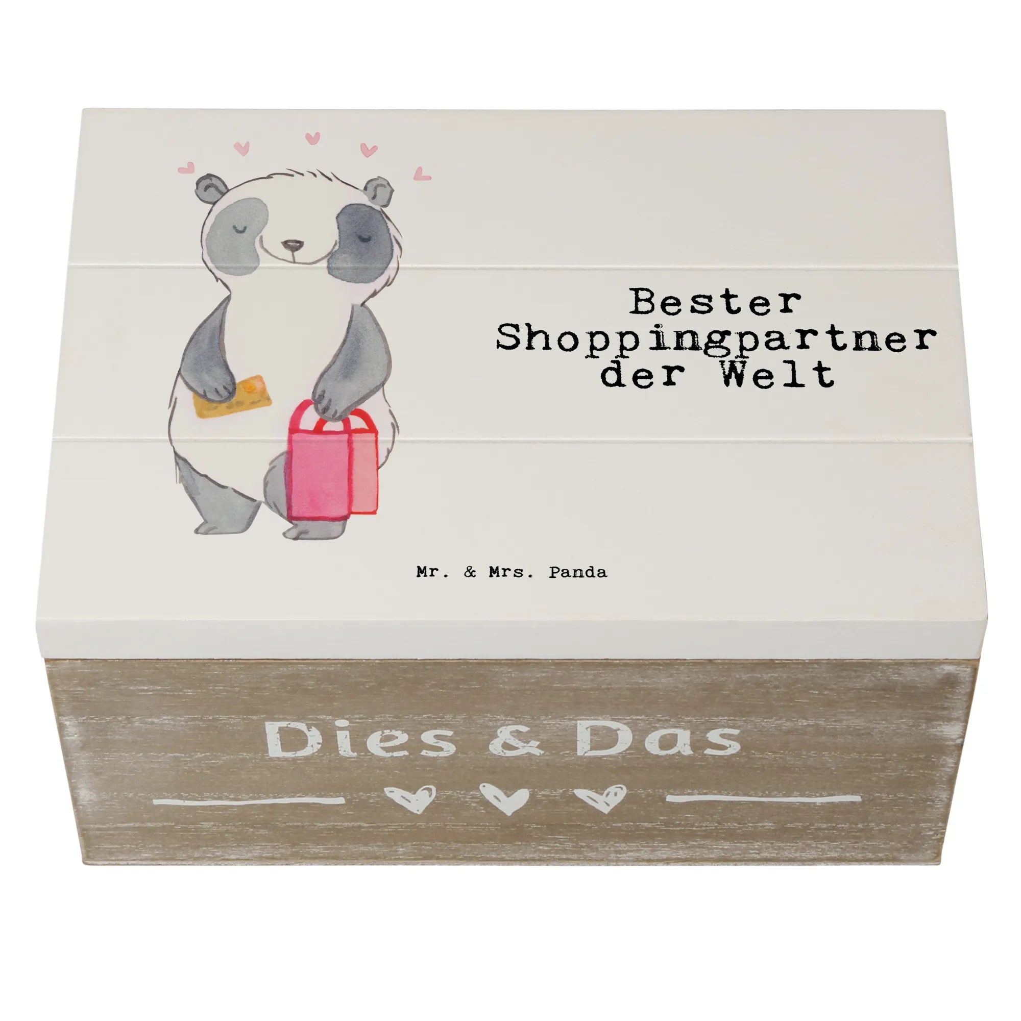 Die wunderschöne Holzkiste "Bester Shoppingpartner der Welt" von Mr. & Mrs. Panda ist das perfekte Geschenk für all deine liebsten Shopping-Partnerinnen und -Partner.