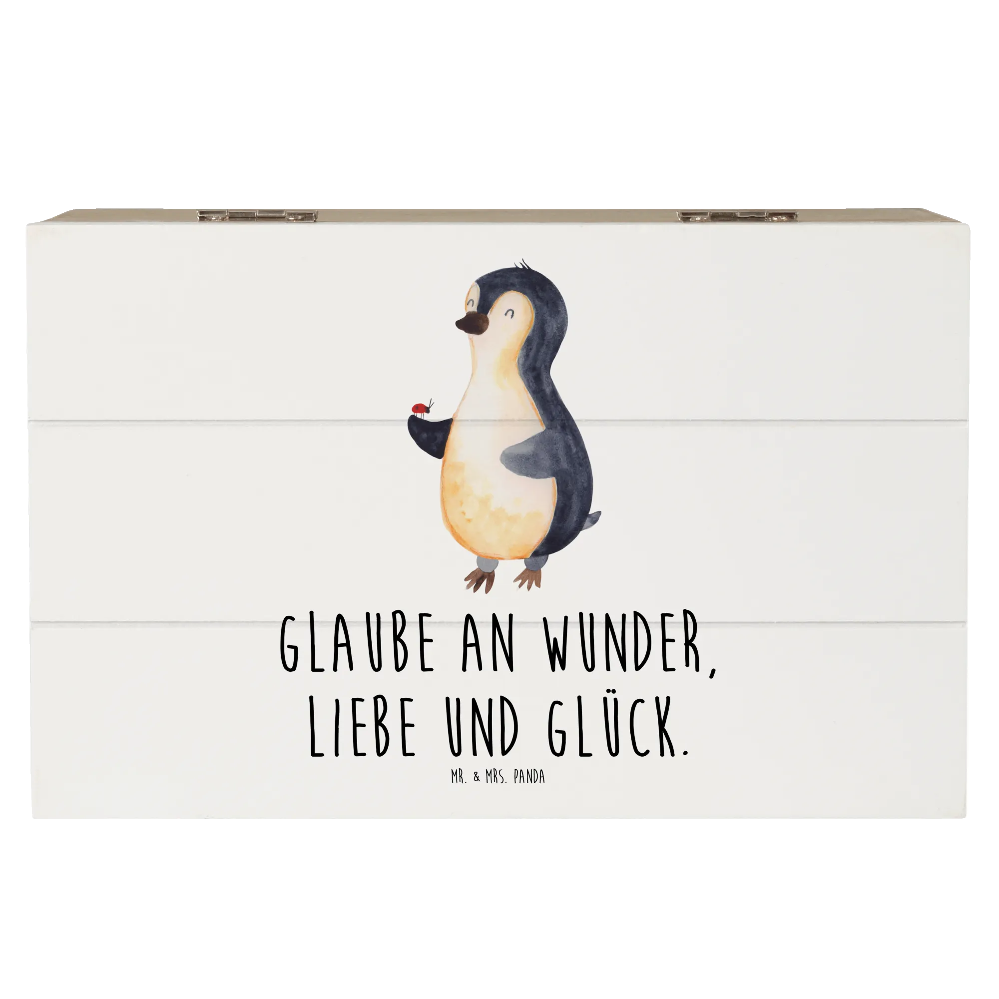 Die wunderschöne Holzkiste "Pinguin Marienkäfer" von Mr. & Mrs. Panda ist das perfekte Geschenk für jeden Anlass!