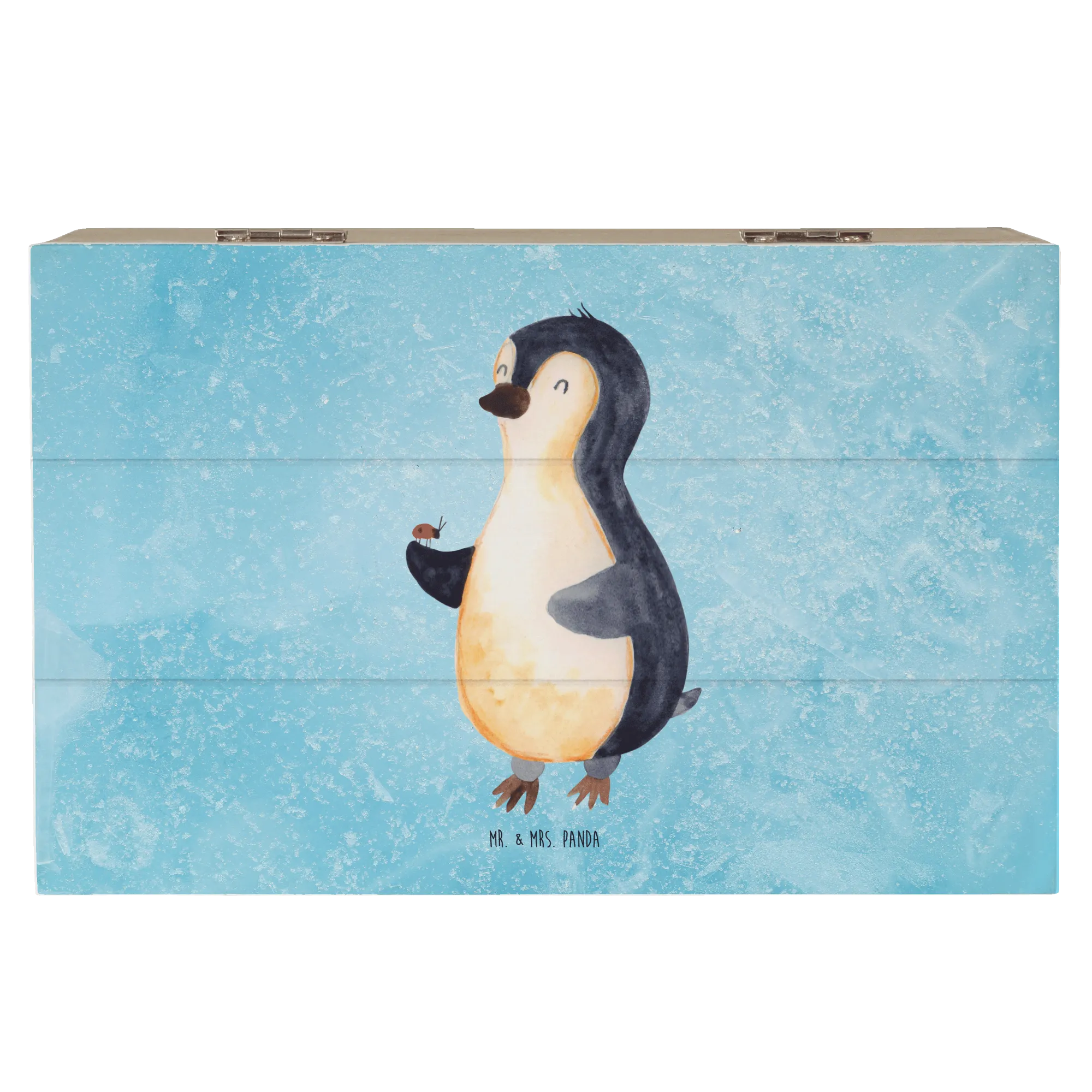 Eine wunderschöne Holzkiste von Mr. & Mrs. Panda – liebevoll gestaltet mit dem fröhlichen Pinguin und seinem kleinen Marienkäfer. Dieses Motiv aus der Pinguin - Kollektion ist ein echter Stimmungsmacher und passt perfekt in Kinderzimmer, Wohnbereich oder auf das Sideboard als dekorative Aufbewahrungsbox.