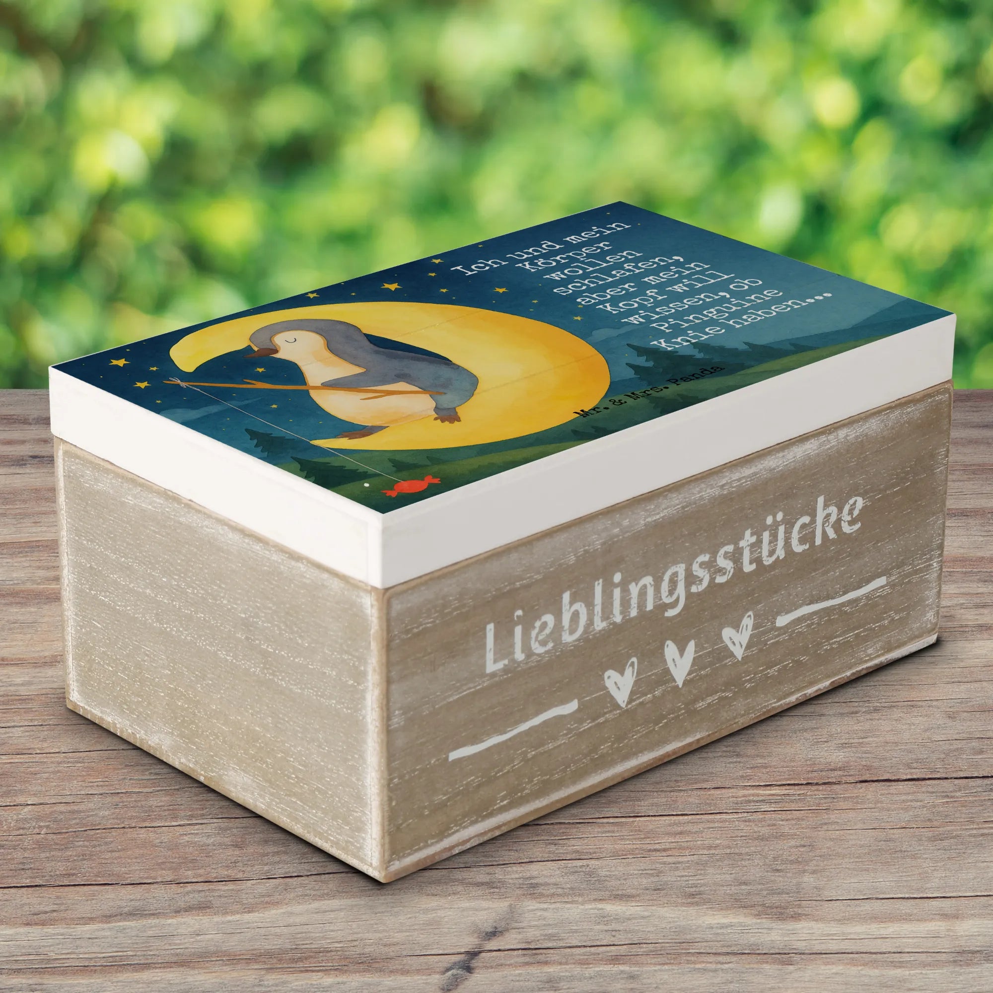 Holzkiste Pinguin Mond Design - 22 x 15 cm - mit Spruch