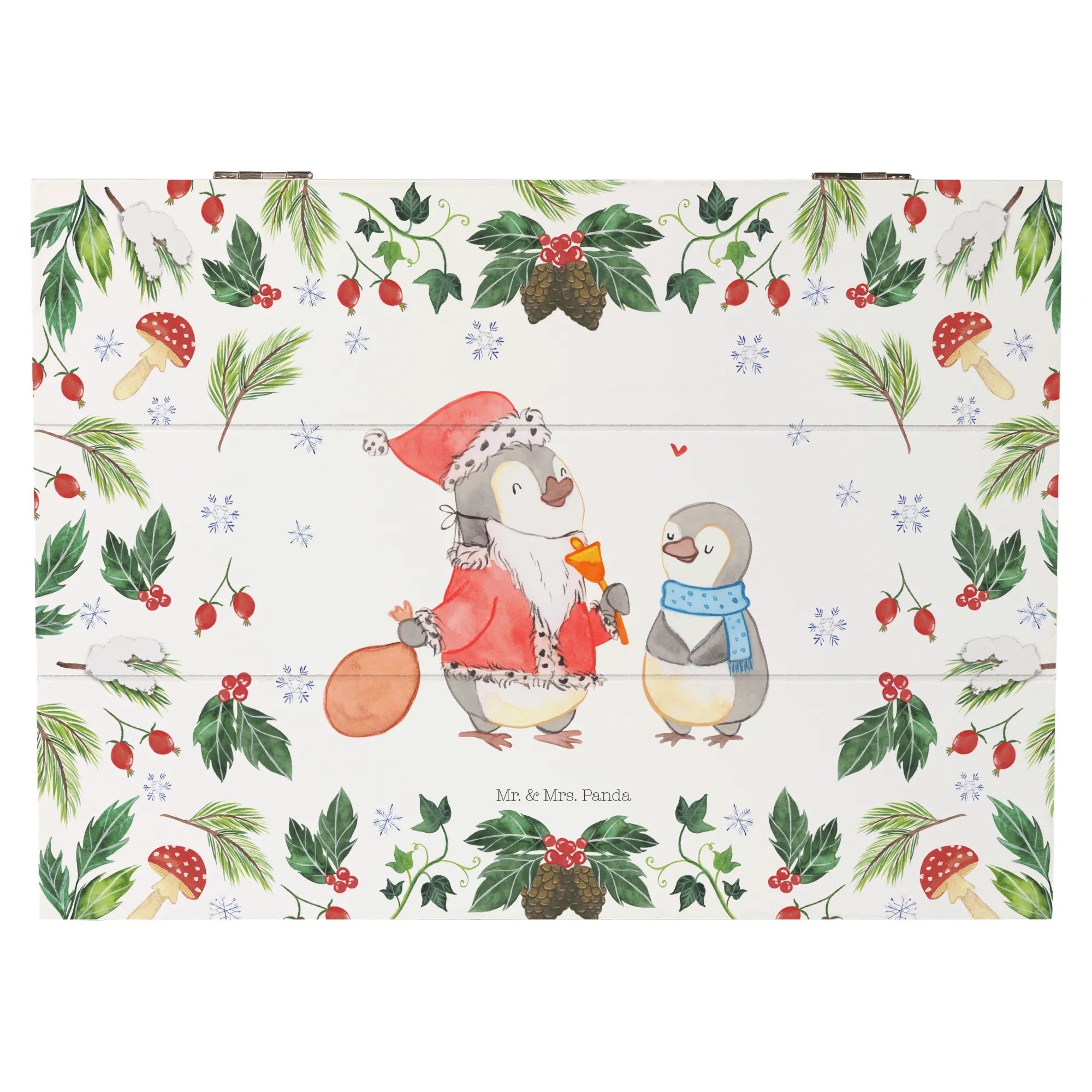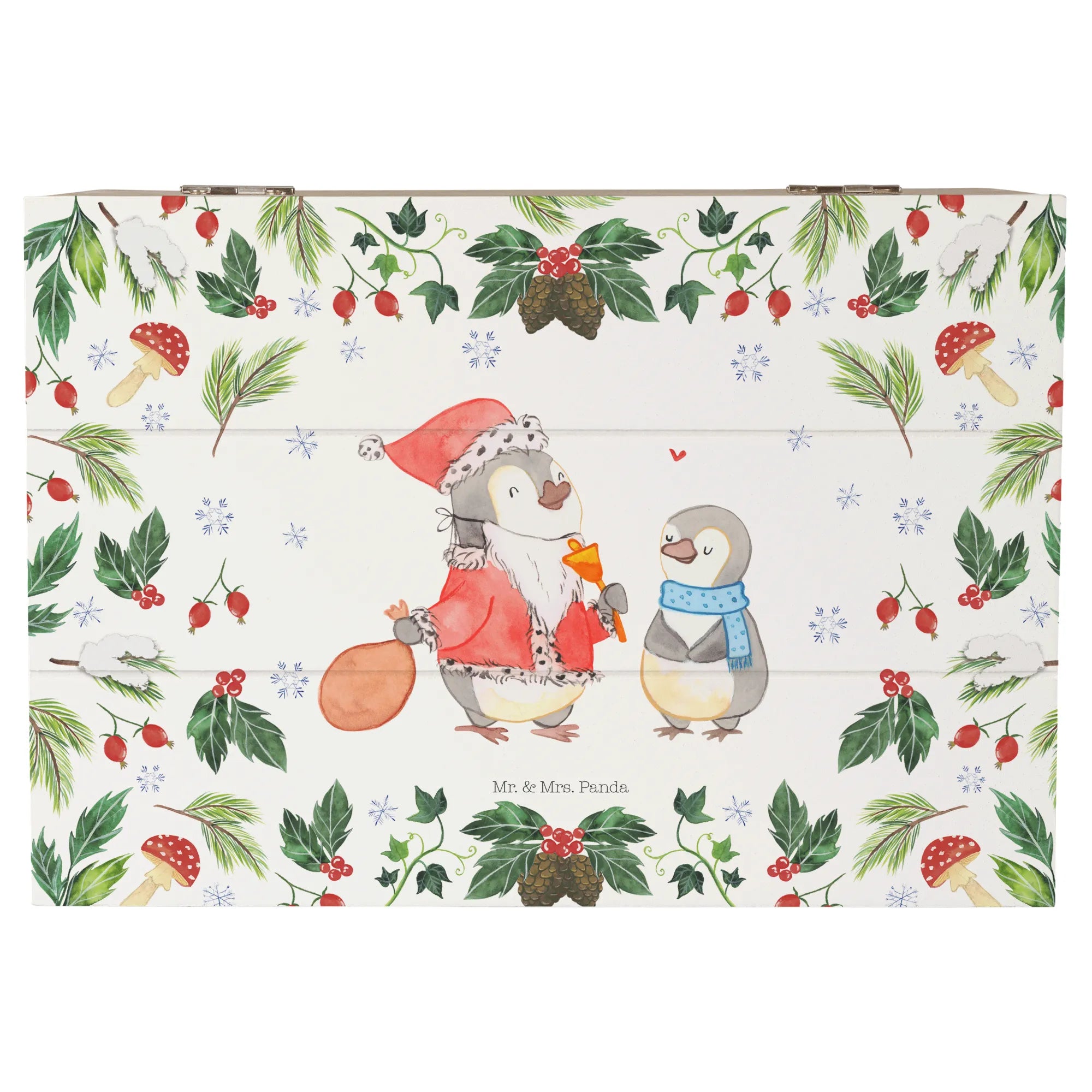 Entdecke die bezaubernde Holzkiste "Pinguin Wunschliste" aus der Winter Kollektion von Mr. & Mrs. Panda! Diese einzigartige Kiste bietet nicht nur einen wunderbaren Platz für all deine Schätze, sondern verzaubert auch durch ihr charmantes Design. Der süße Pinguin, der sich als Nikolaus verkleidet hat, trägt einen großen Sack voller Geschenke und wird jeden Raum mit Freude füllen.
