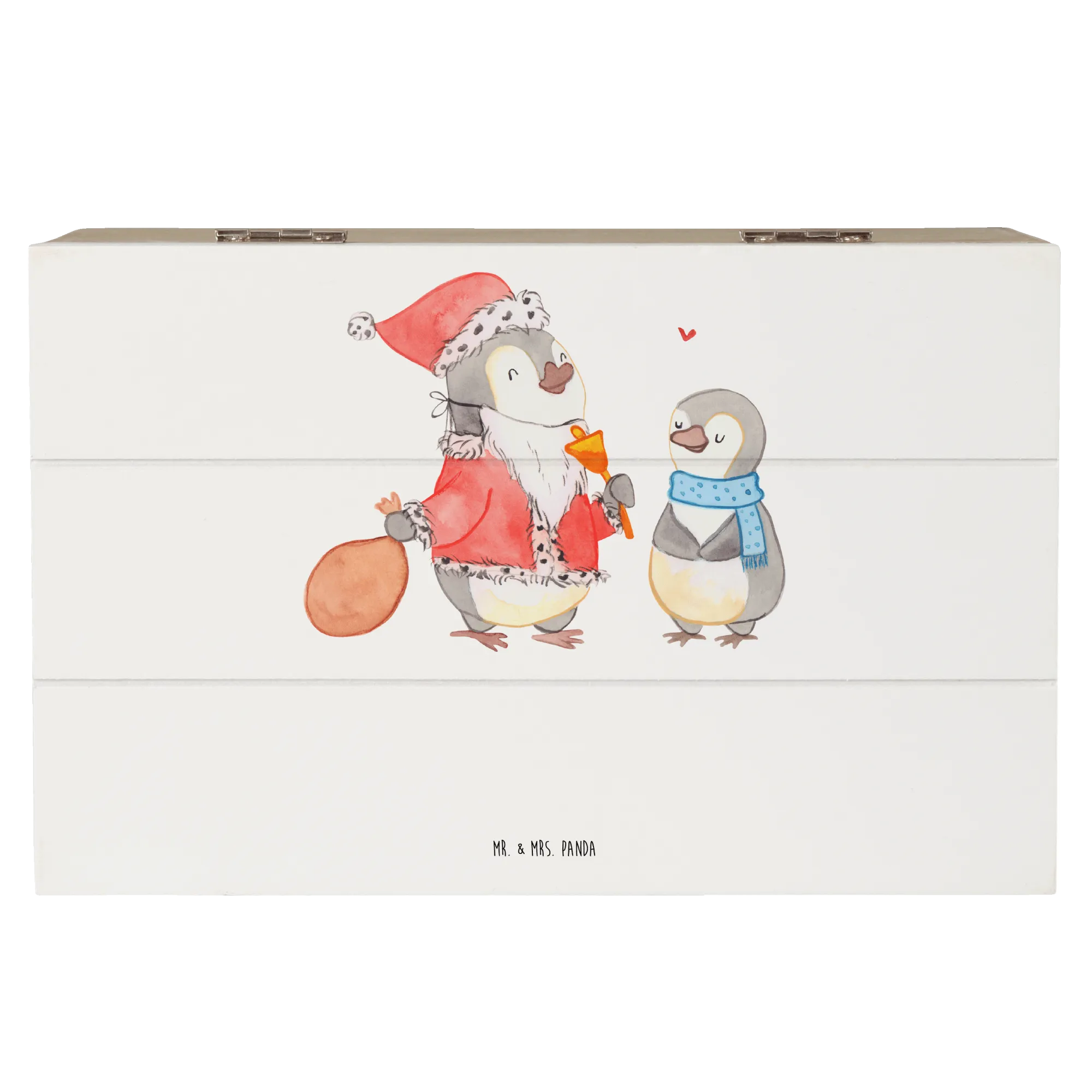 Die wunderschöne Holzkiste mit dem niedlichen Pinguin Motiv 'Wunschliste' aus der Winter Kollektion von Mr. & Mrs. Panda ist das perfekte Geschenk für die festliche Zeit des Jahres! Diese Kiste ist nicht nur ein idealer Aufbewahrungsort für all deine wertvollen Schätze, sondern auch ein echter Hingucker in deiner Weihnachtsdekoration.