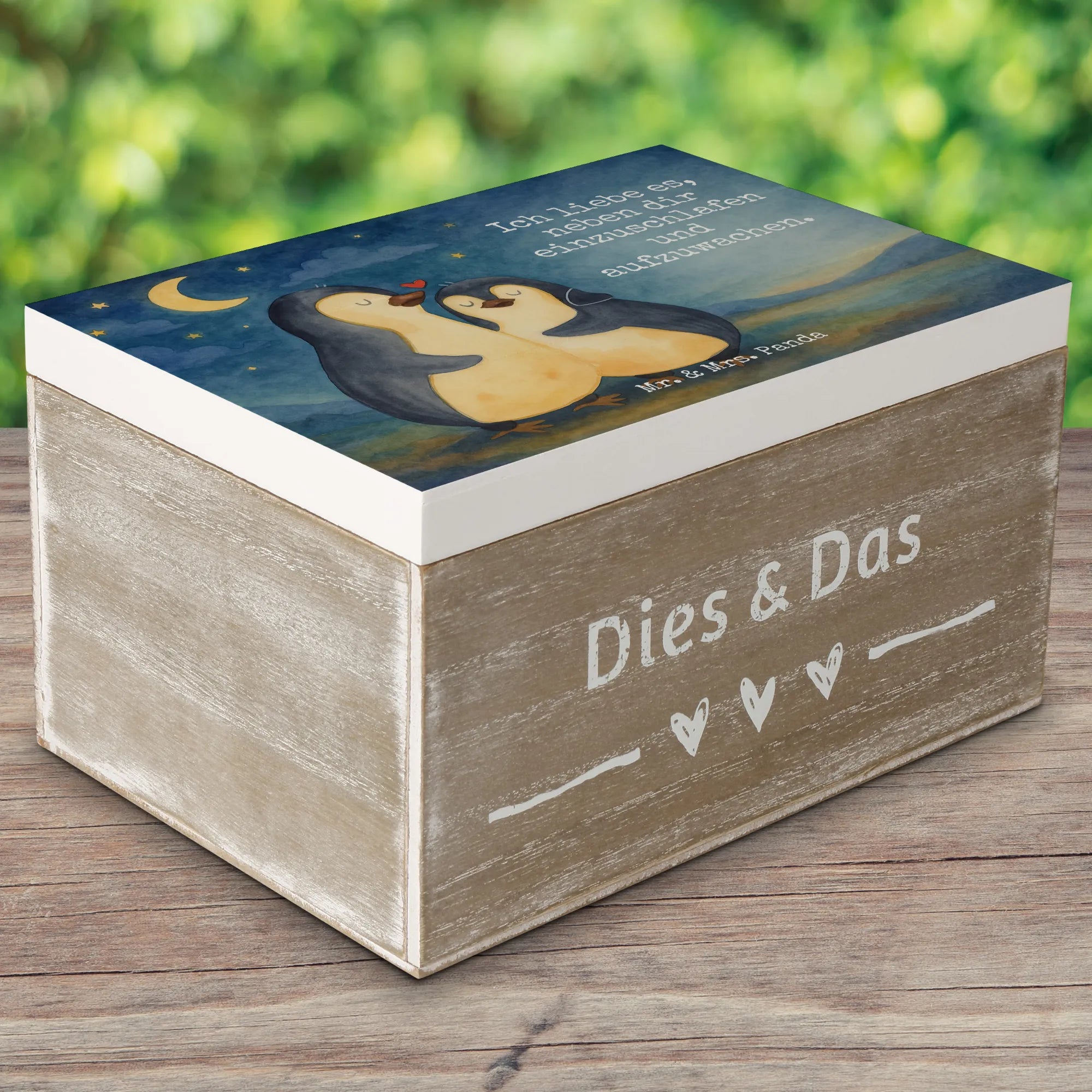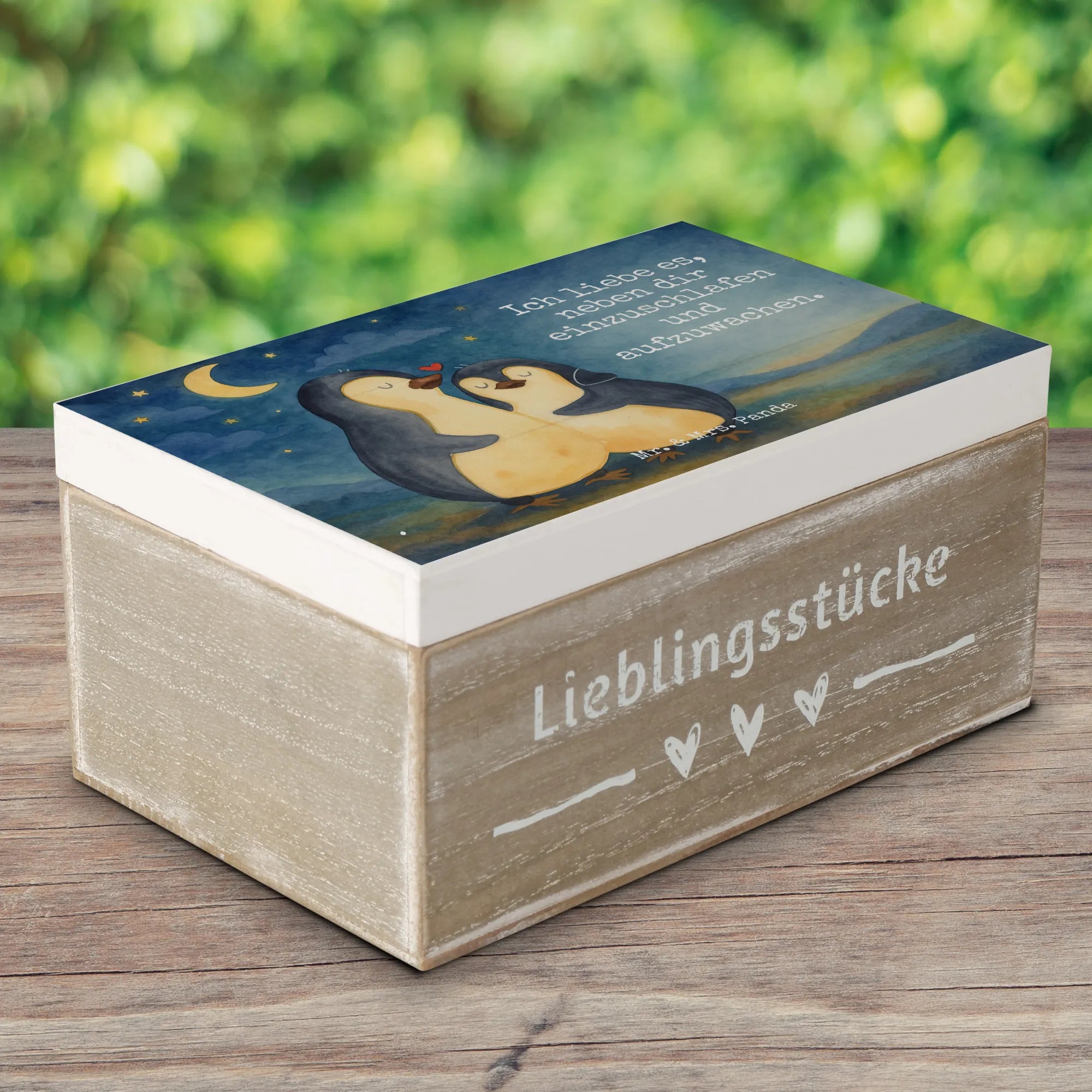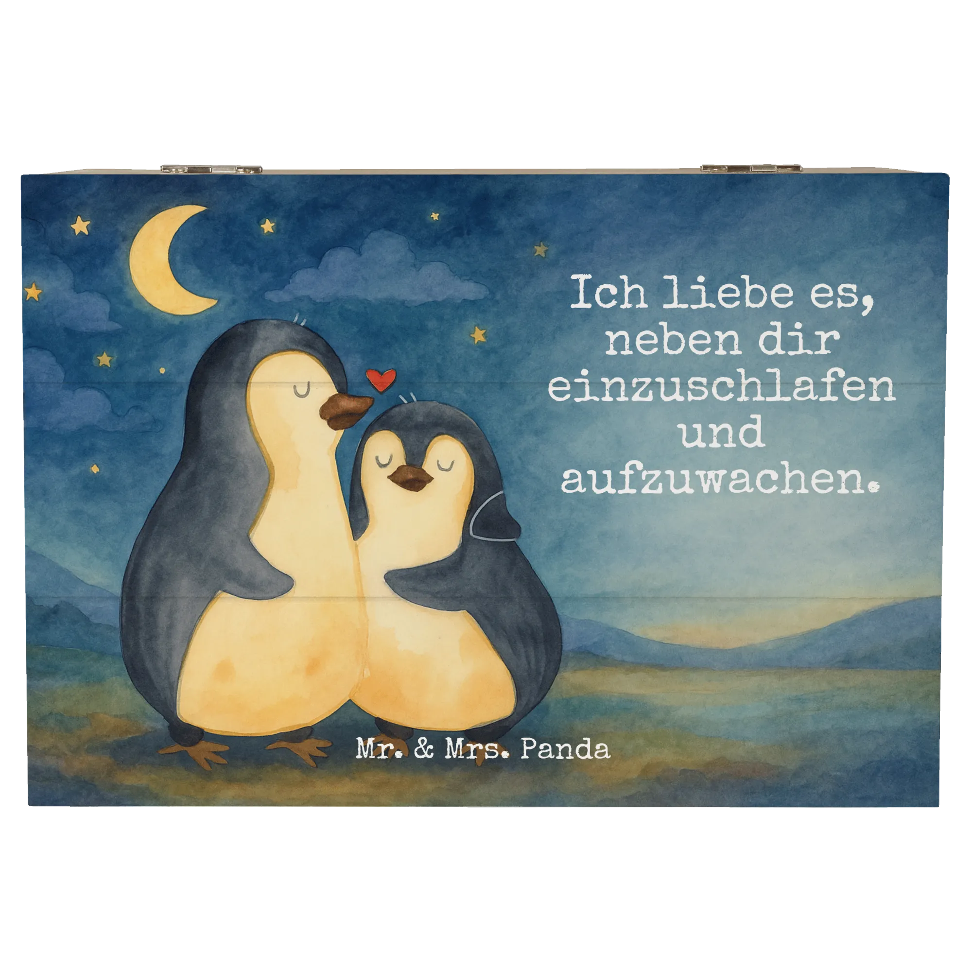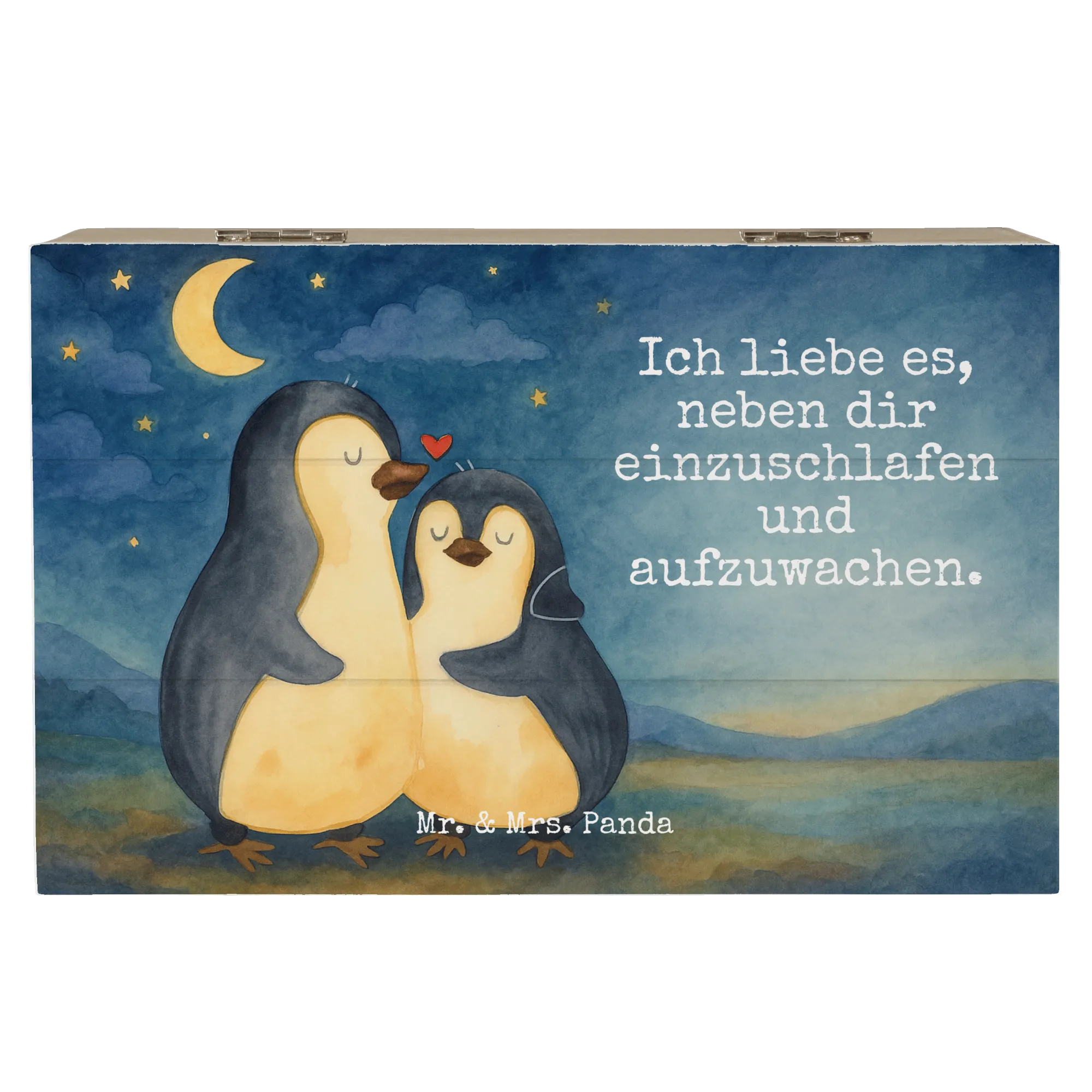 Holzkiste Pinguine Einschlafen Design - 22 x 15 cm - mit Spruch