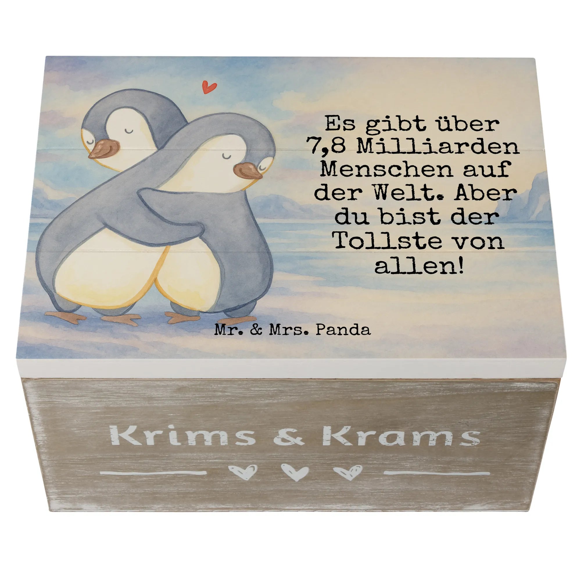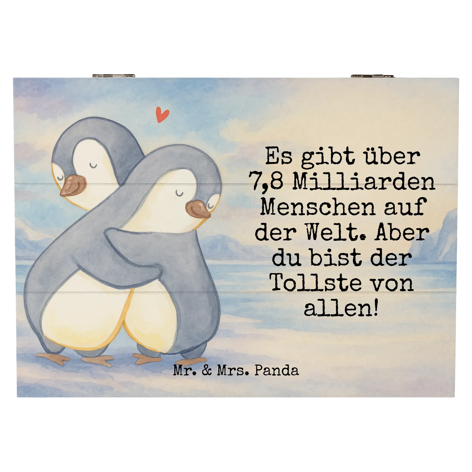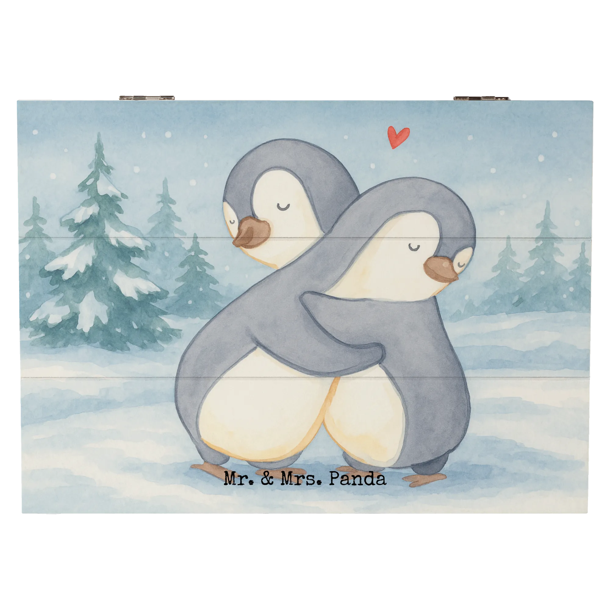 Holzkiste Pinguine Kuscheln Design - 22 x 15 cm - mit Spruch