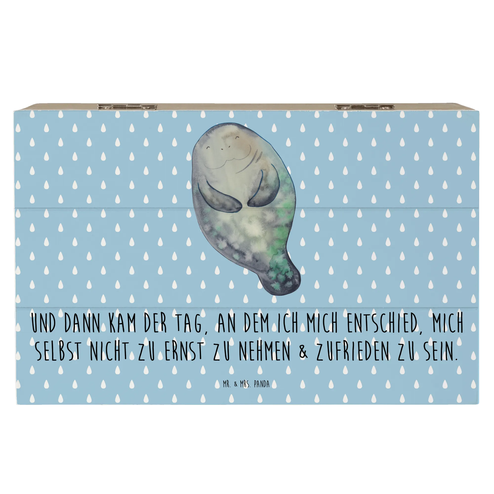 Holzkiste "Seekuh happy" – ein kleines Stück Meer für Dein Zuhause. Die zarte Illustration der glücklichen Seekuh aus der Meerestiere-Kollektion von Mr. & Mrs. Panda verbreitet Ruhe, Selbstliebe und einen Hauch Urlaub. Perfekt für alle, die Achtsamkeit, Neuanfänge und Lebensfreude schätzen.
