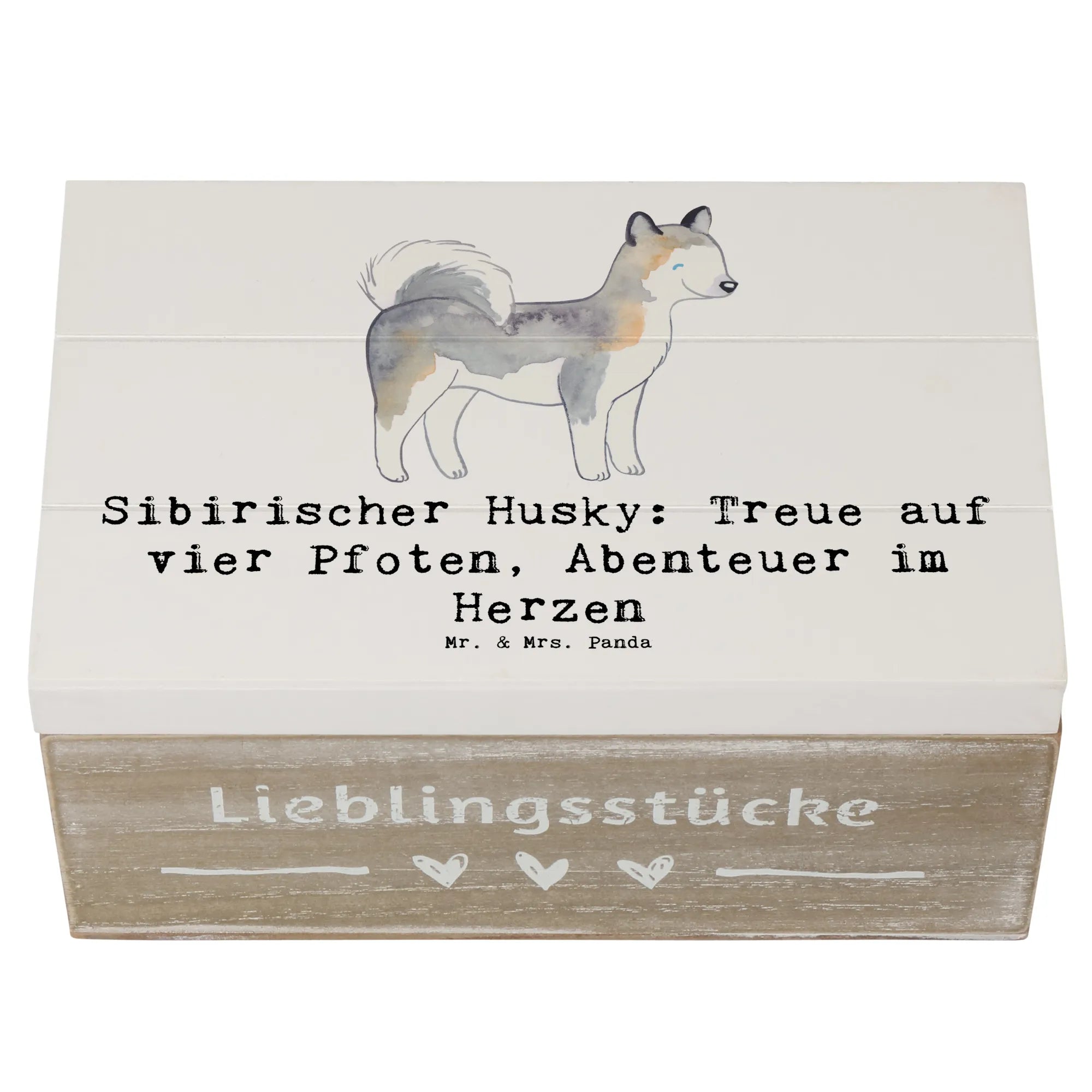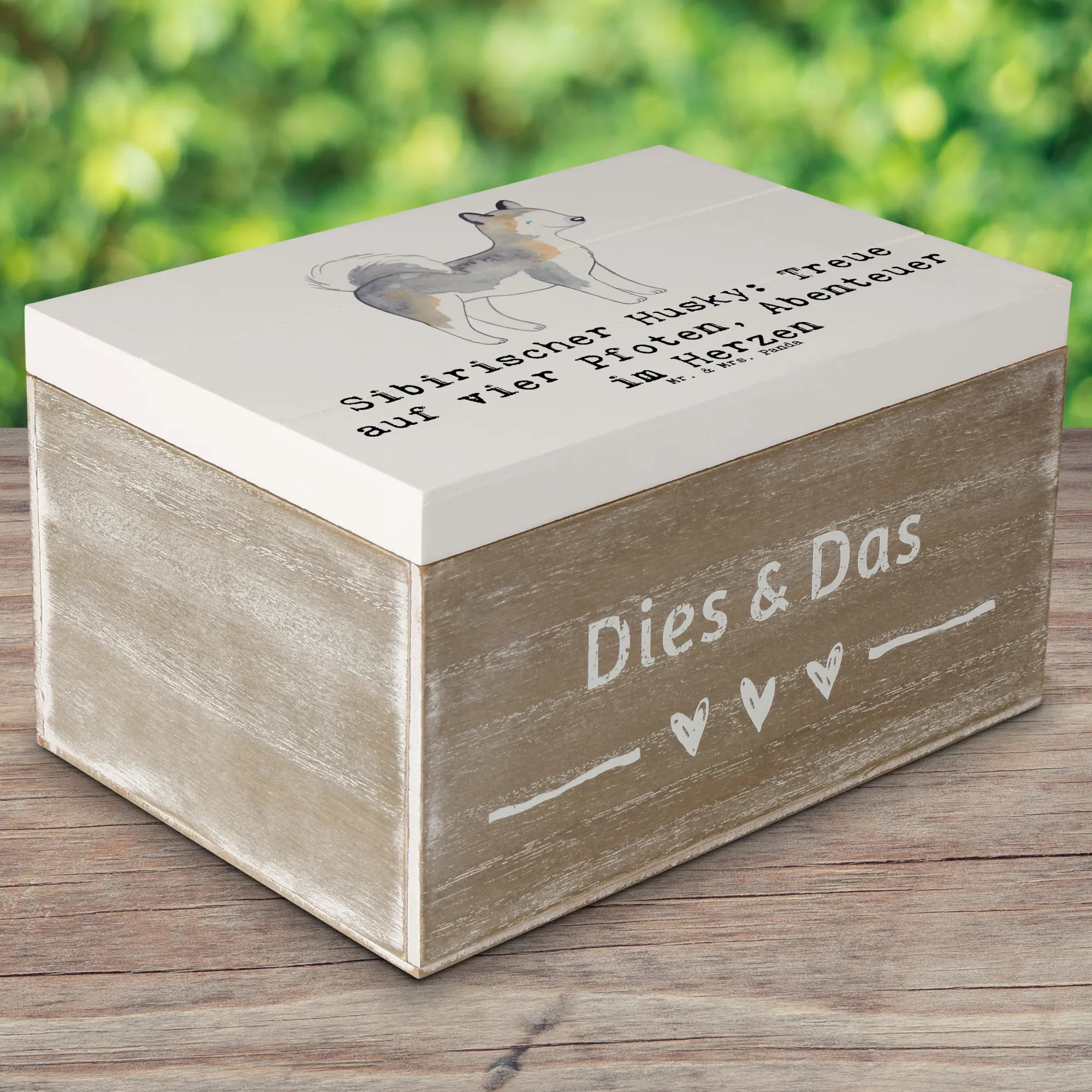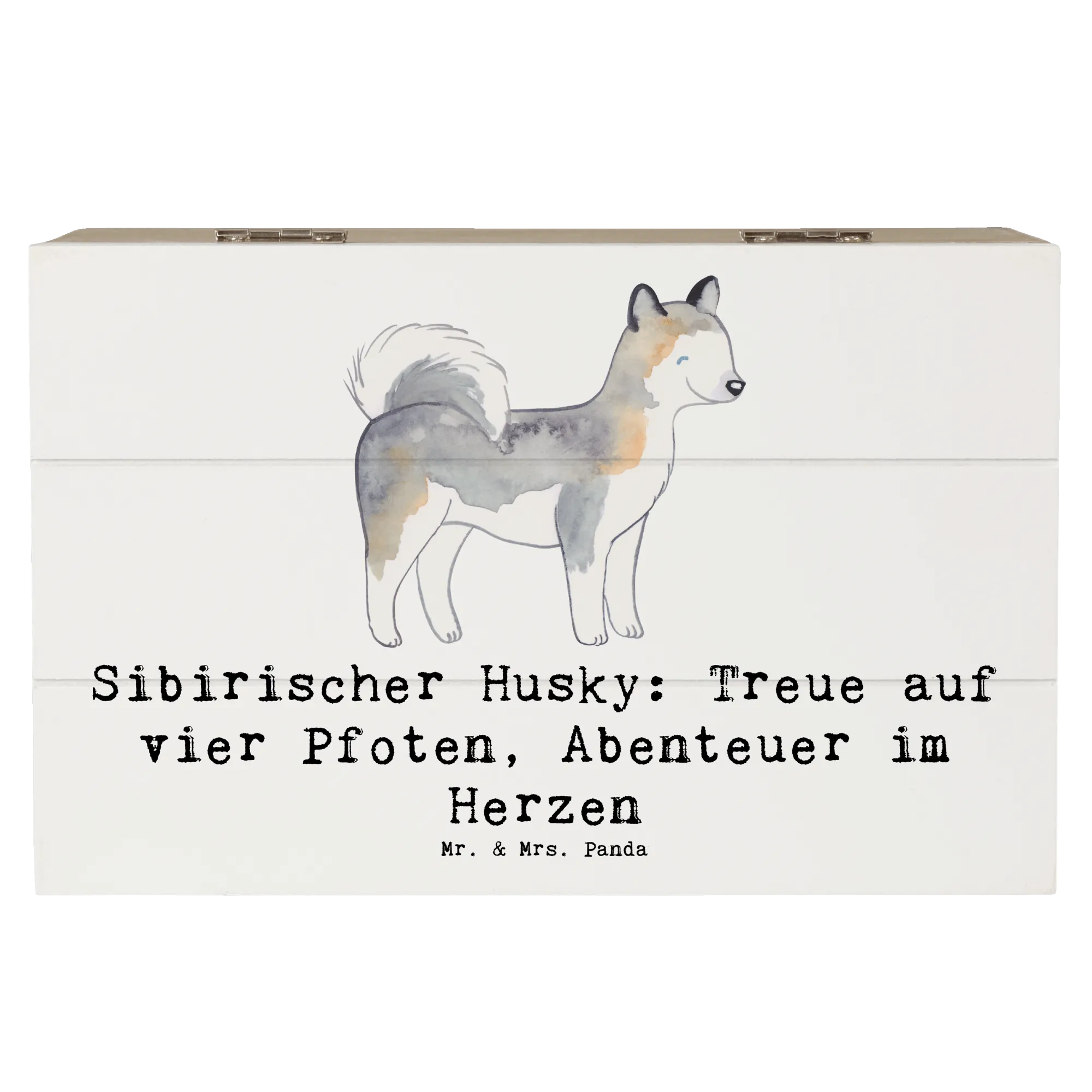 Die wunderschöne Holzkiste von Mr. & Mrs. Panda mit dem Motiv 'Sibirischer Husky: Treue auf vier Pfoten, Abenteuer im Herzen' ist das perfekte Geschenk für alle Hundefans! Diese stilvolle Kiste aus robuster Premium Hartfaser bietet nicht nur einen wunderschönen Anblick, sondern auch einen praktischen Aufbewahrungsort für alle Deine Schätze.