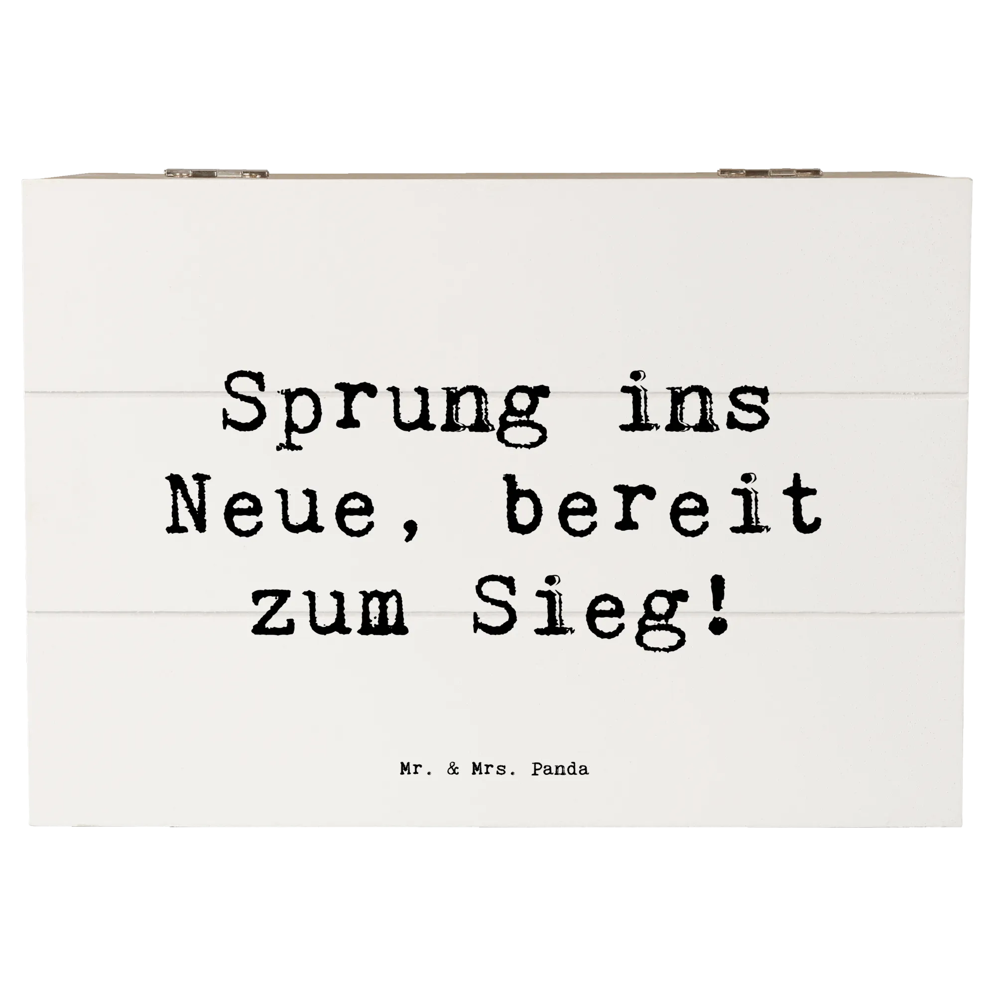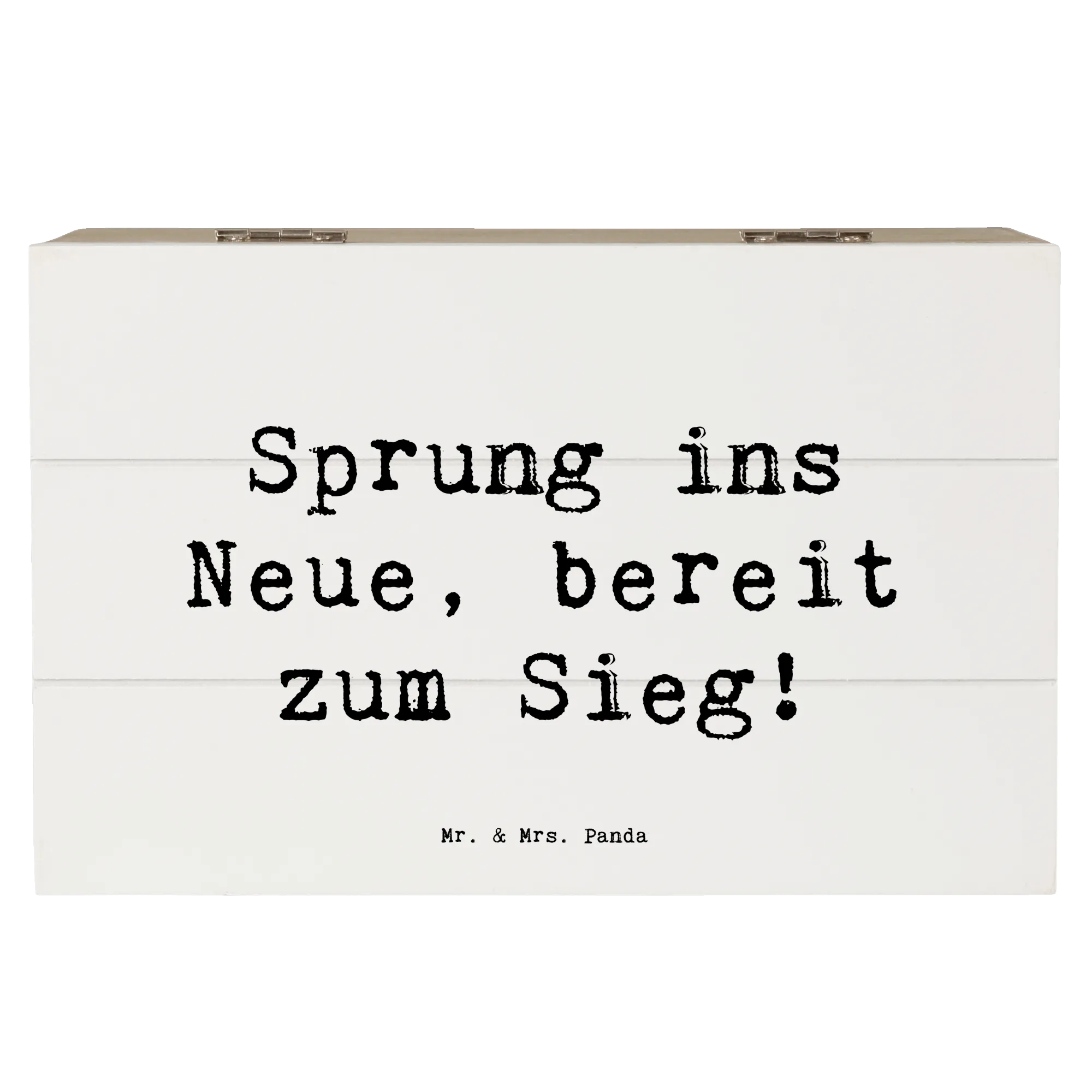 Die wunderschöne Holzkiste 'Sich in einer neuen Sportart versuchen' aus der Mutmacher-Kollektion von Mr. & Mrs. Panda ist das perfekte Geschenk für alle, die sich neu ausprobieren und sich Mut zusprechen wollen.