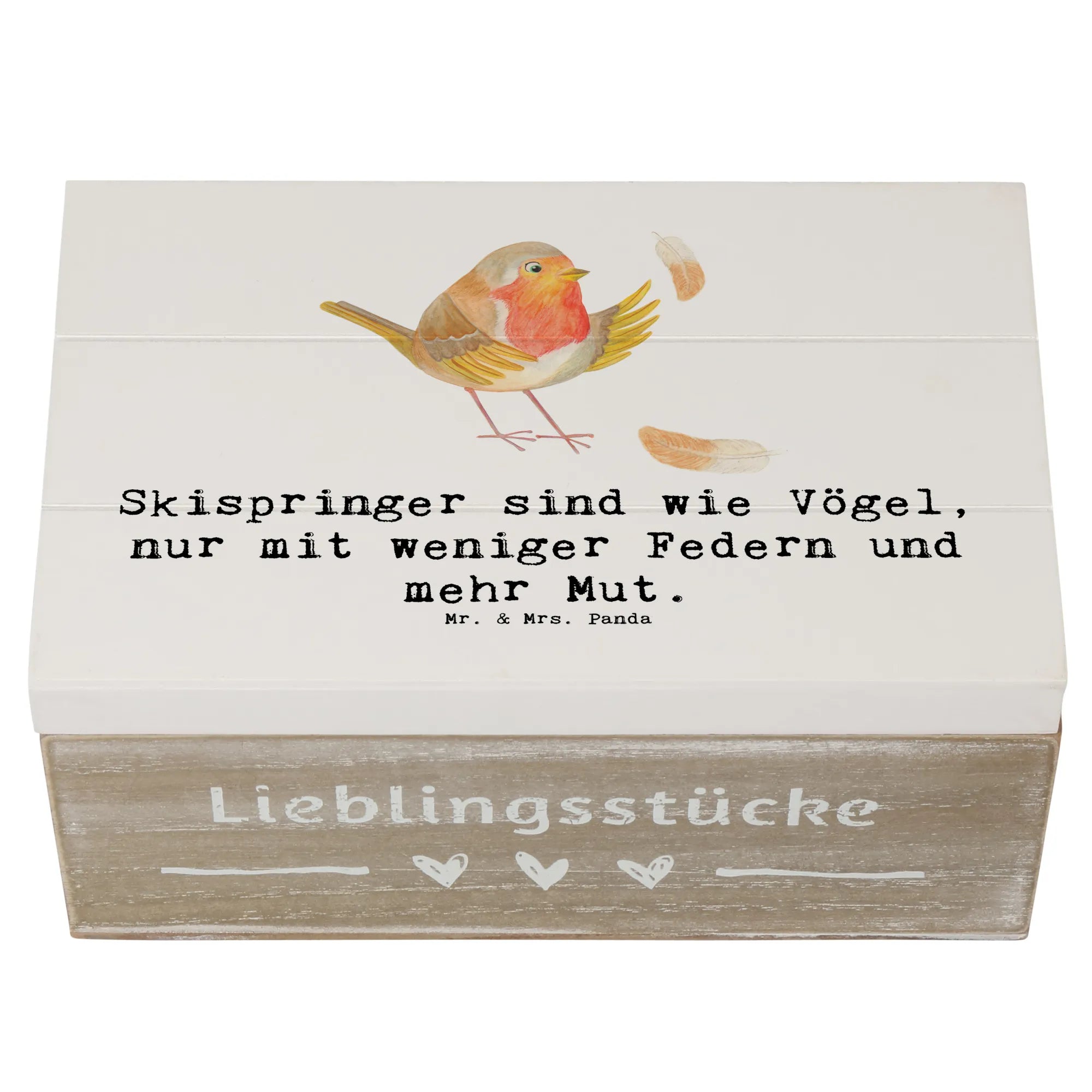 Die Holzkiste "Skispringen" von Mr. & Mrs. Panda ist weit mehr als nur ein Aufbewahrungsort – es ist ein Ort, an dem Geschichten erzählt und Erinnerungen bewahrt werden. Ein wahrhaft einzigartiges Geschenk für alle, die den Sport lieben und die kleinen Dinge im Leben zu schätzen wissen.