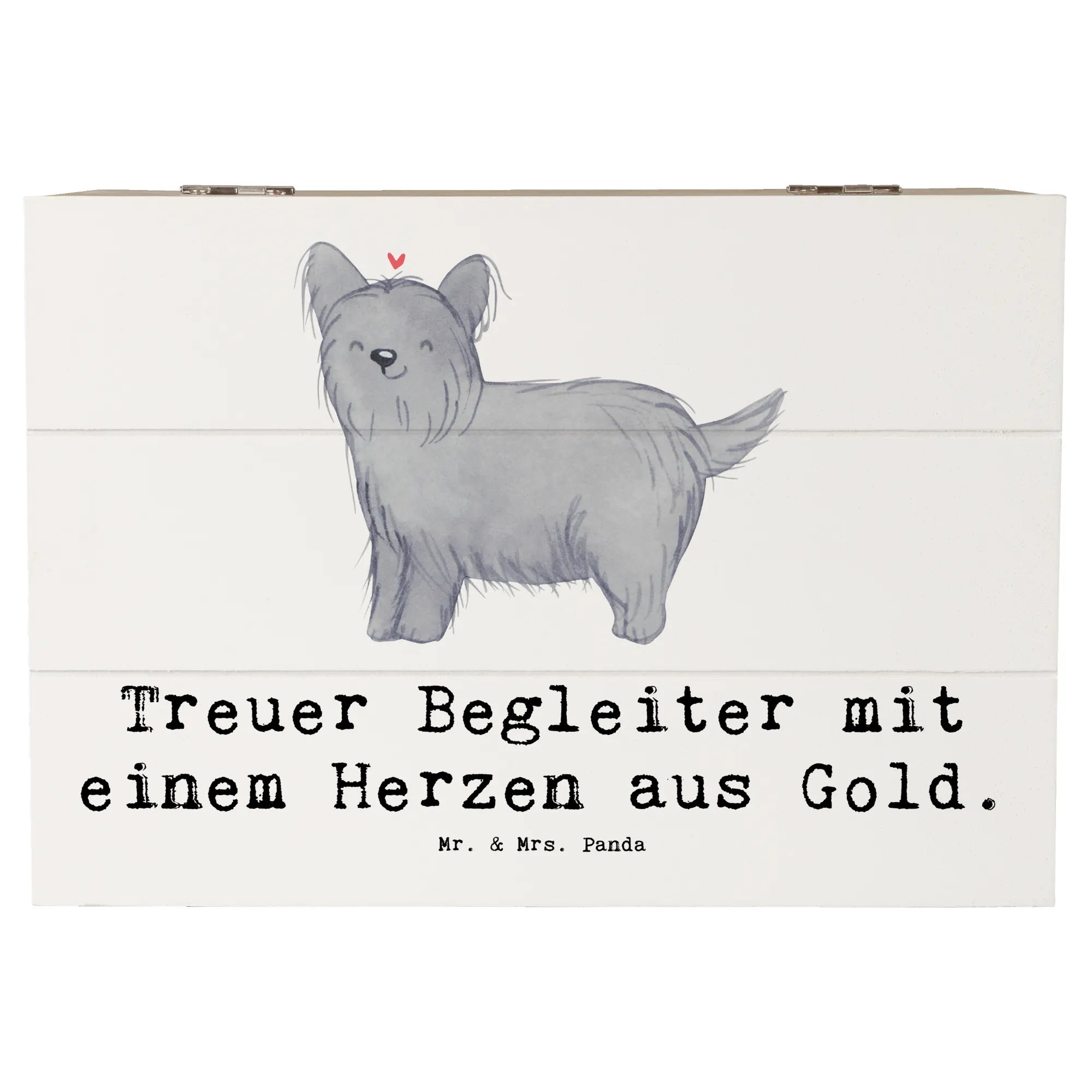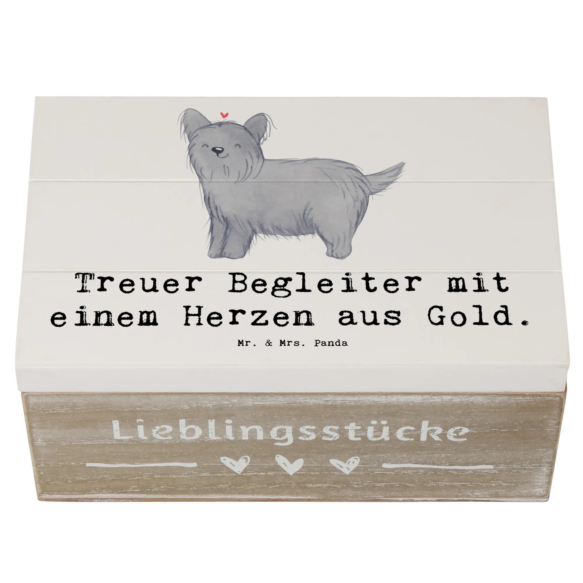Die wunderschöne Holzkiste von Mr. & Mrs. Panda ist das perfekte Geschenk für jeden Hundefreund, der den Skye Terrier liebt! Mit ihrem einzigartigen Design und dem liebevollen Slogan 'Treuer Begleiter mit einem Herzen aus Gold' begeistert diese Kiste nicht nur durch ihre Optik, sondern ist auch unglaublich praktisch.