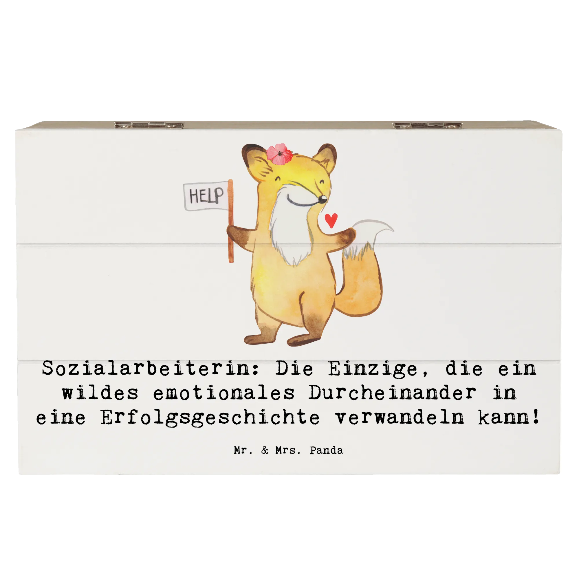 Der liebevoll gestaltete Slogan „Sozialarbeiterin: Die Einzige, die ein wildes emotionales Durcheinander in eine Erfolgsgeschichte verwandeln kann!“ verwandelt die Kiste in eine persönliche Errinnerung an all die positiven Veränderungen, die sie bewirken.