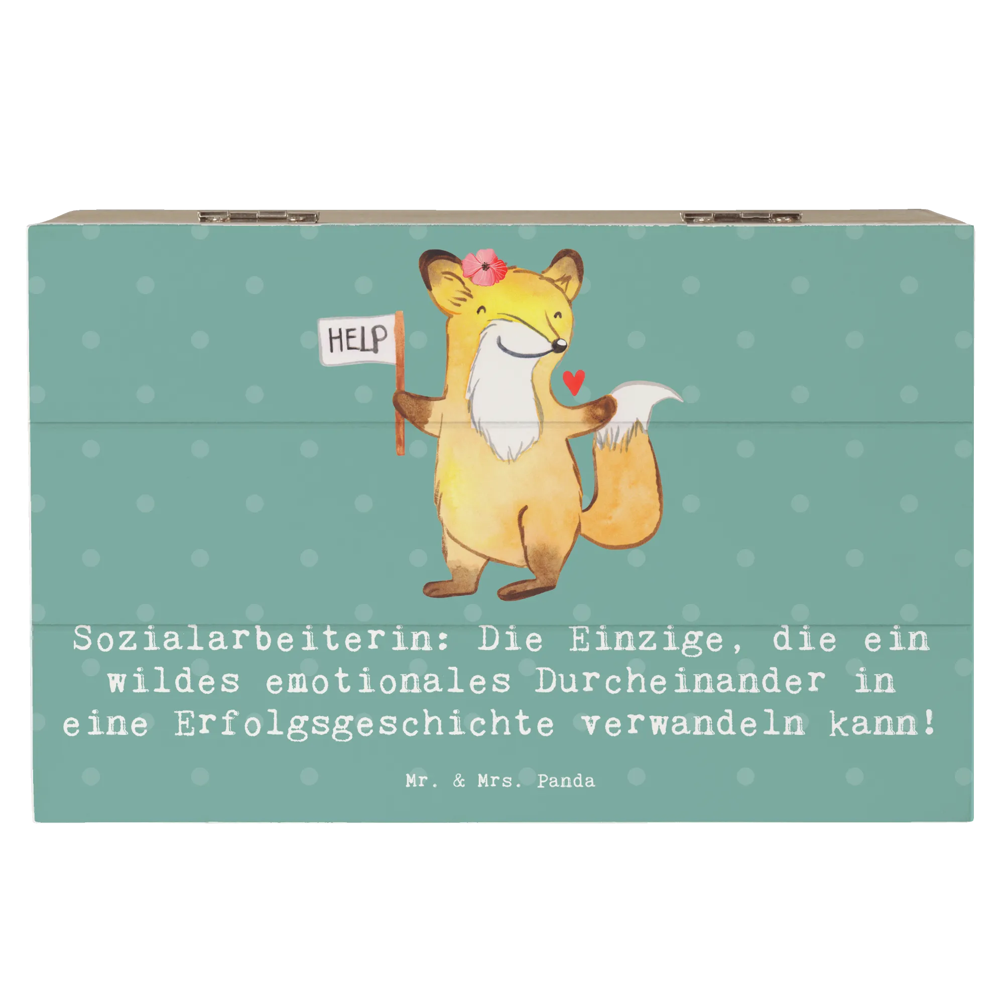 Die besondere Gestaltung mit dem Slogan 'Sozialarbeiterin: Die Einzige, die ein wildes emotionales Durcheinander in eine Erfolgsgeschichte verwandeln kann!' macht diese Kiste zu einem einzigartigen Geschenk für jede Sozialarbeiterin. Sie zeigt Wertschätzung für ihren Beruf und spiegelt ihre Stärke und Leidenschaft wider. Diese Holzkiste ist perfekt, um die Erfolge und Erinnerungen im Berufsalltag festzuhalten und jede Sozialarbeiterin zum Lächeln zu bringen.