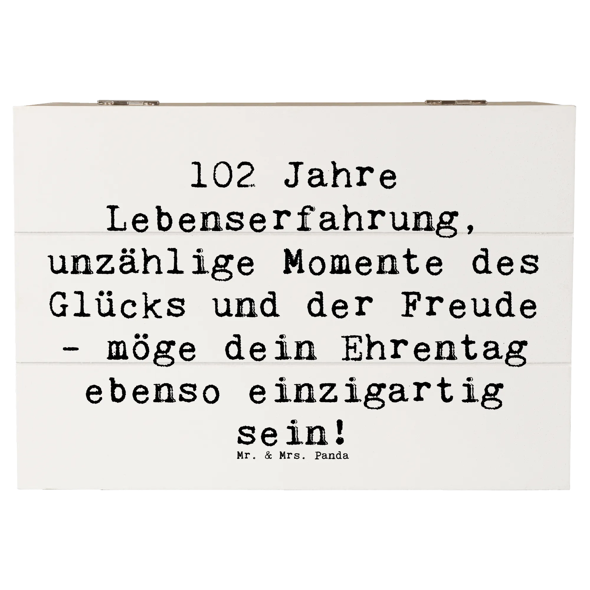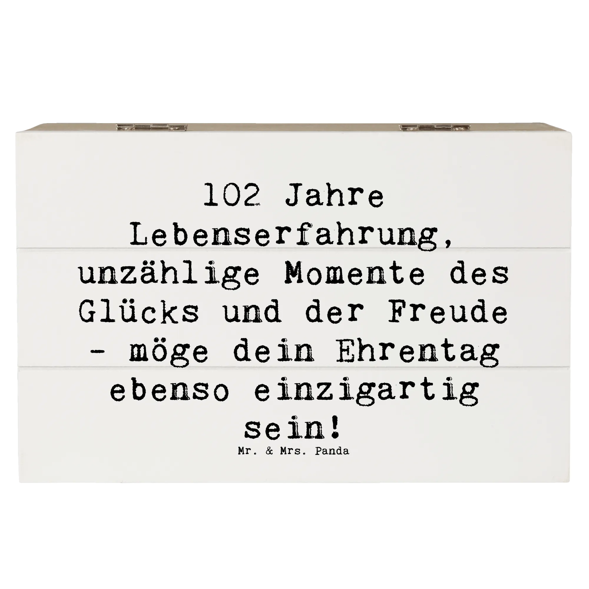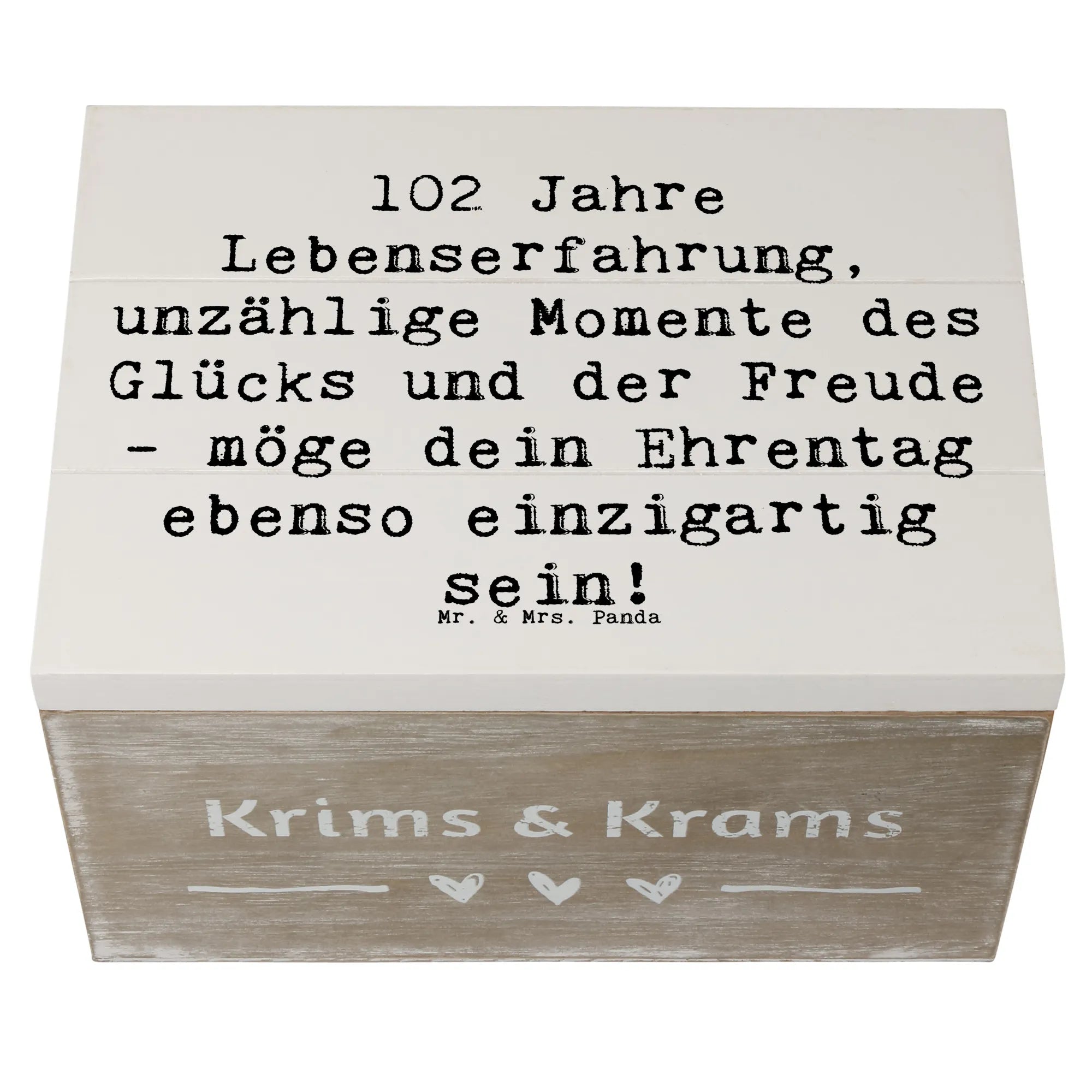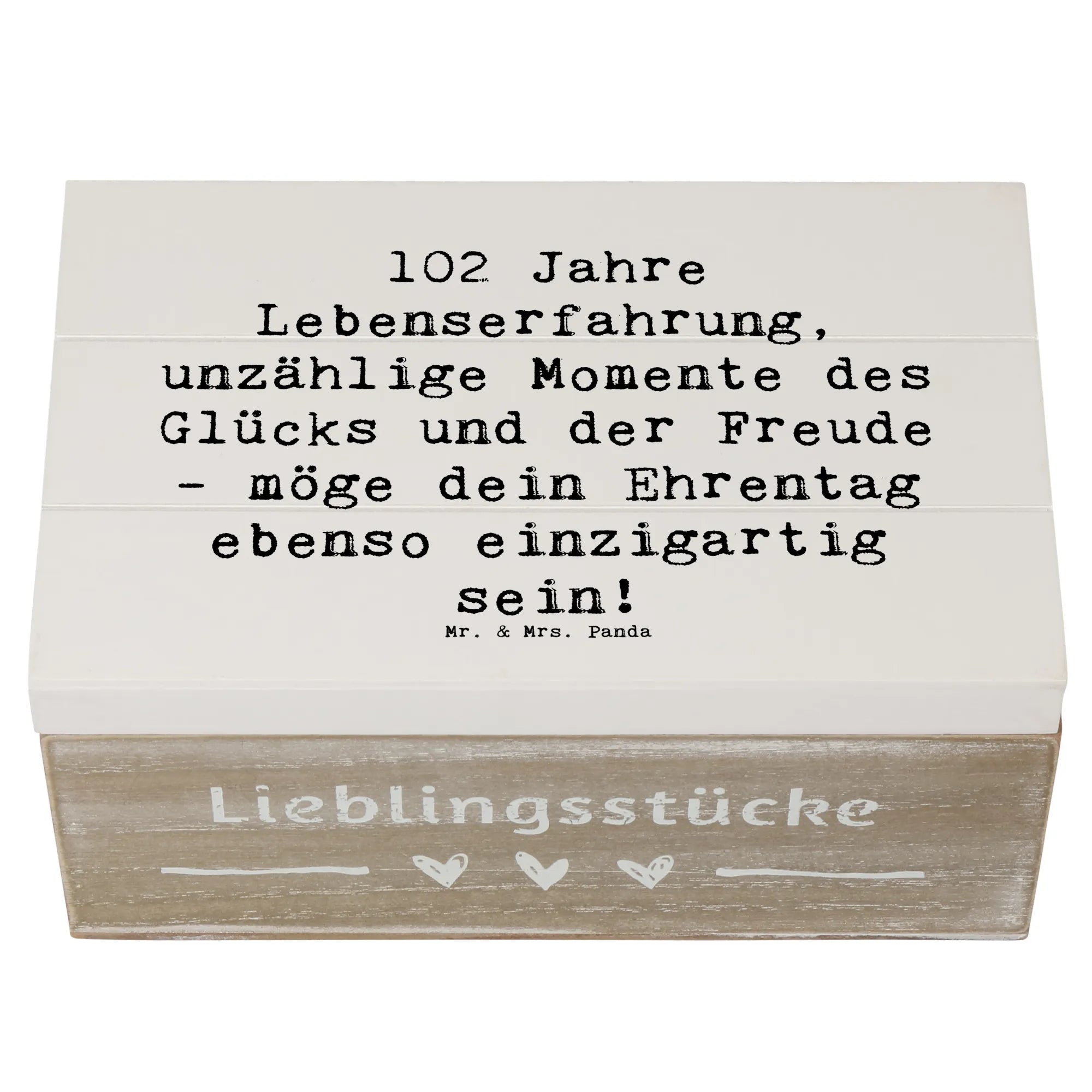 Lass dir von der kreativen Kraft der Geburtstagskollektion von Mr. & Mrs. Panda die perfekte Inspiration geben! Ob zum 102. Geburtstag oder für andere festliche Anlässe - diese Holzkiste ist ein liebevolles Geschenk, das bleibt.