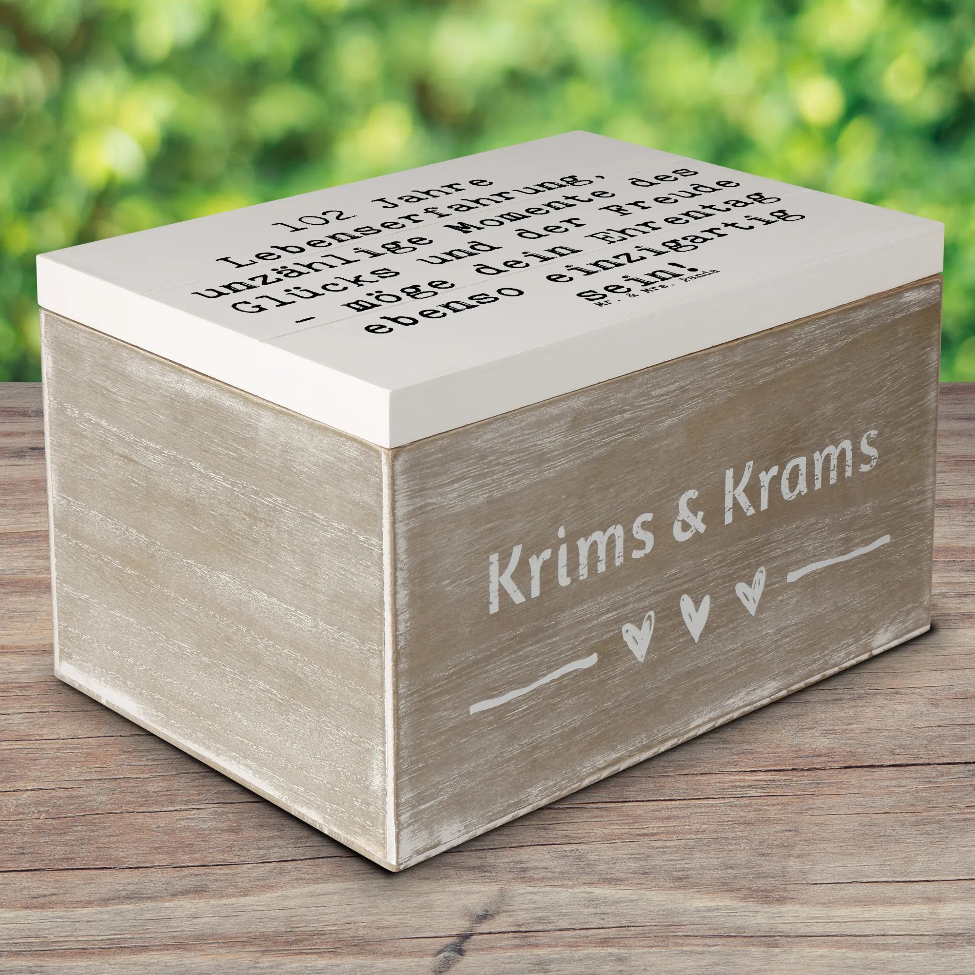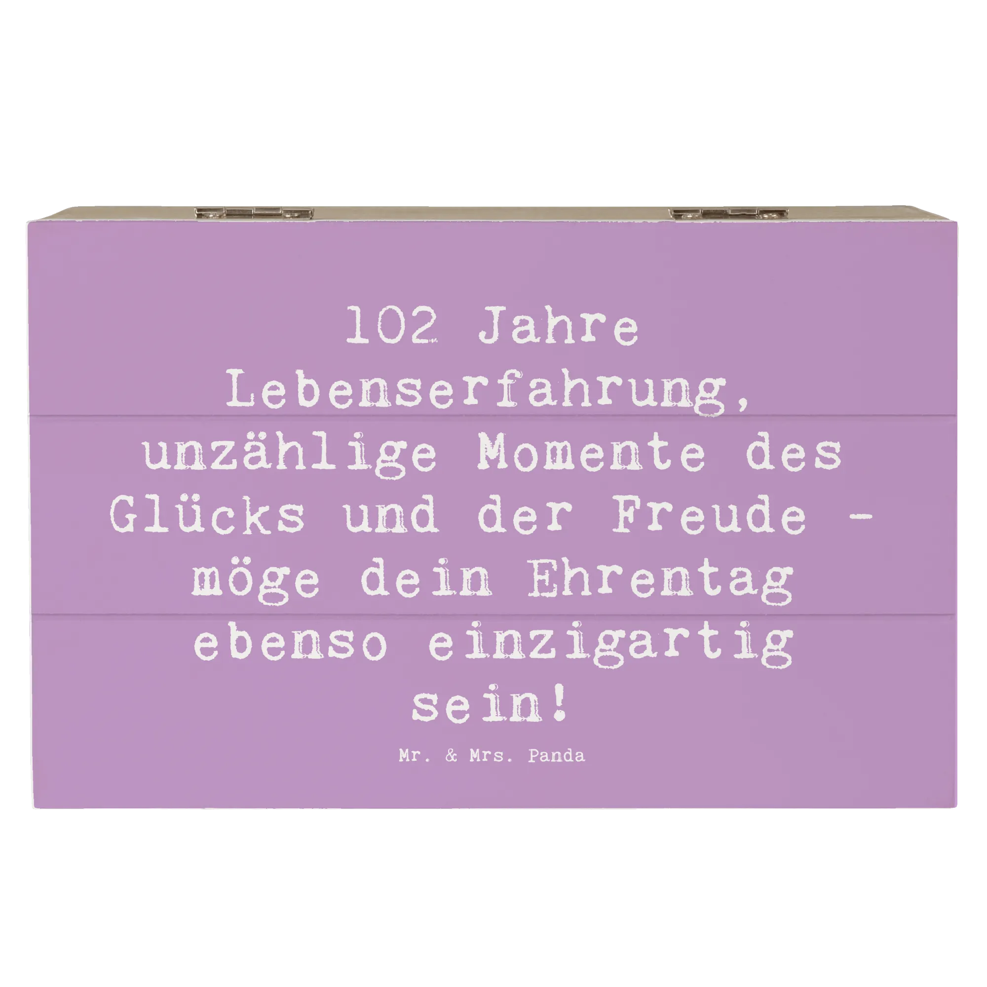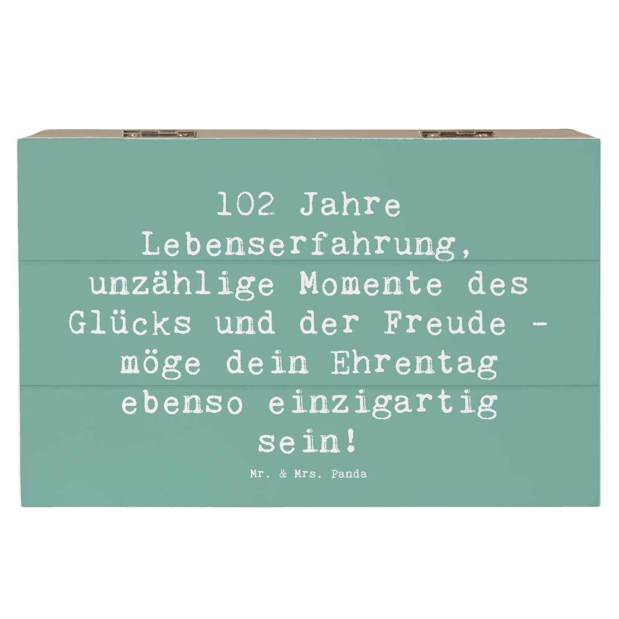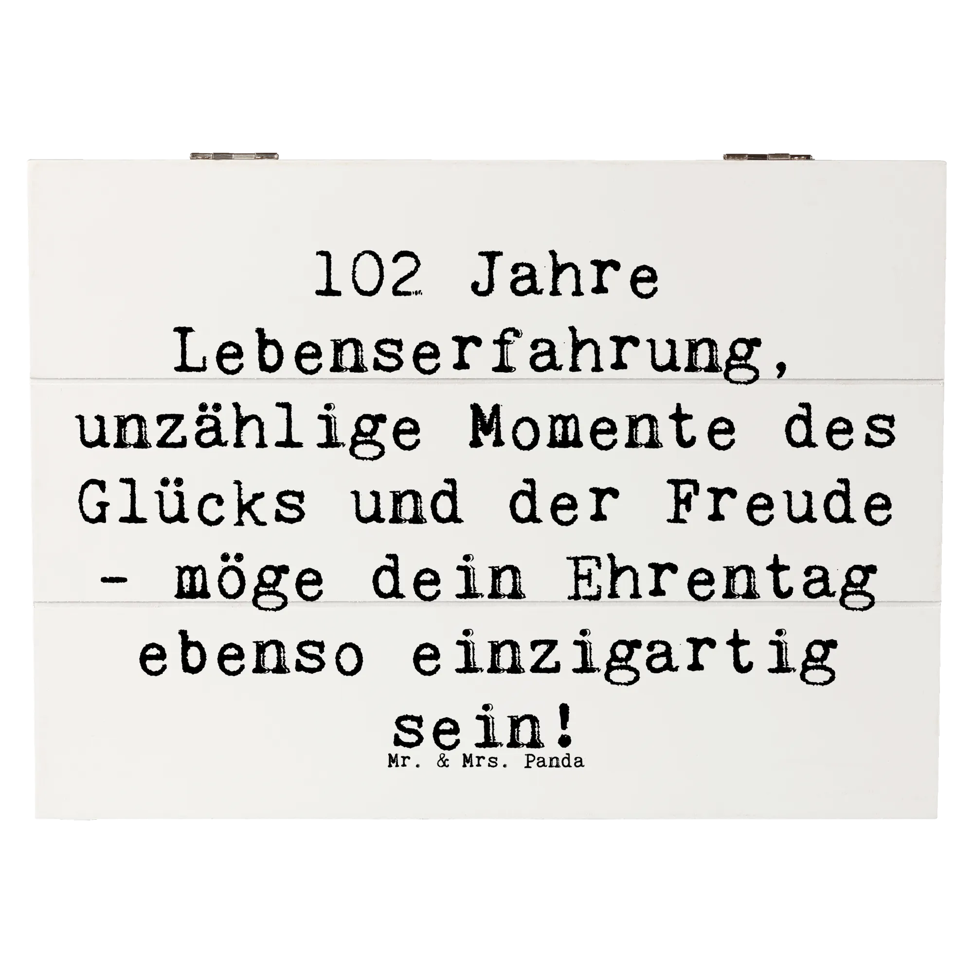 Lass dir von der kreativen Kraft der Geburtstagskollektion von Mr. & Mrs. Panda die perfekte Inspiration geben! Ob zum 102. Geburtstag oder für andere festliche Anlässe - diese Holzkiste ist ein liebevolles Geschenk, das bleibt.