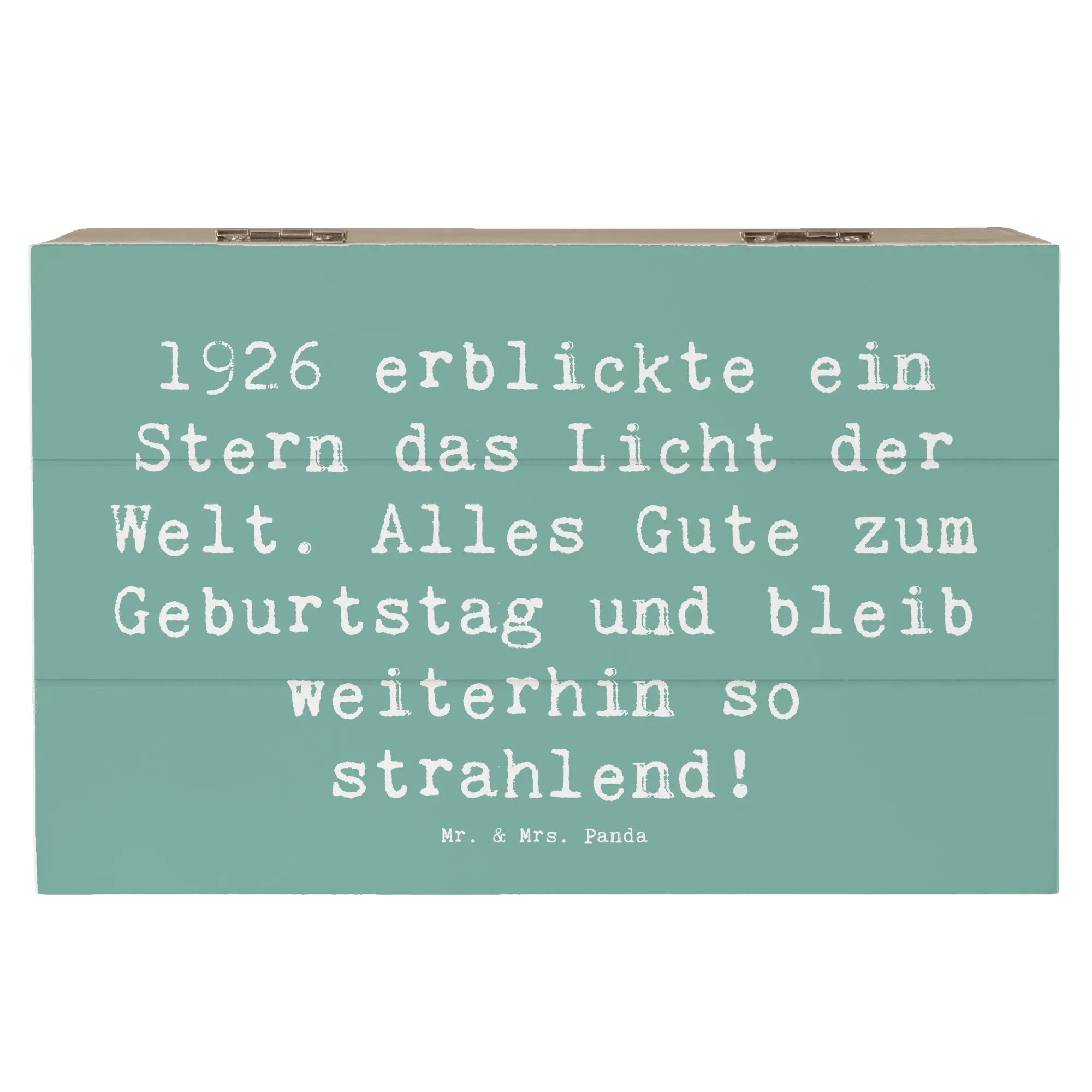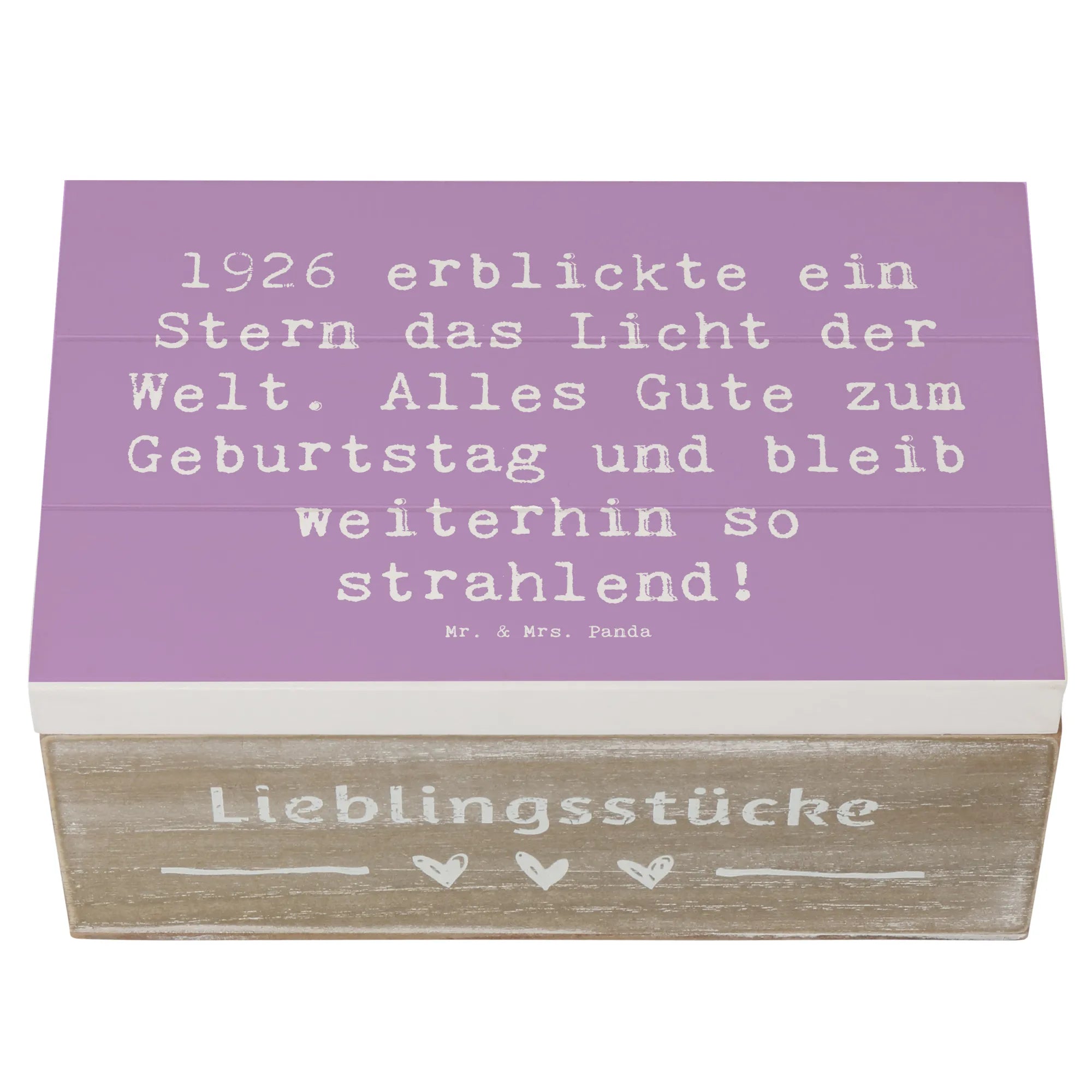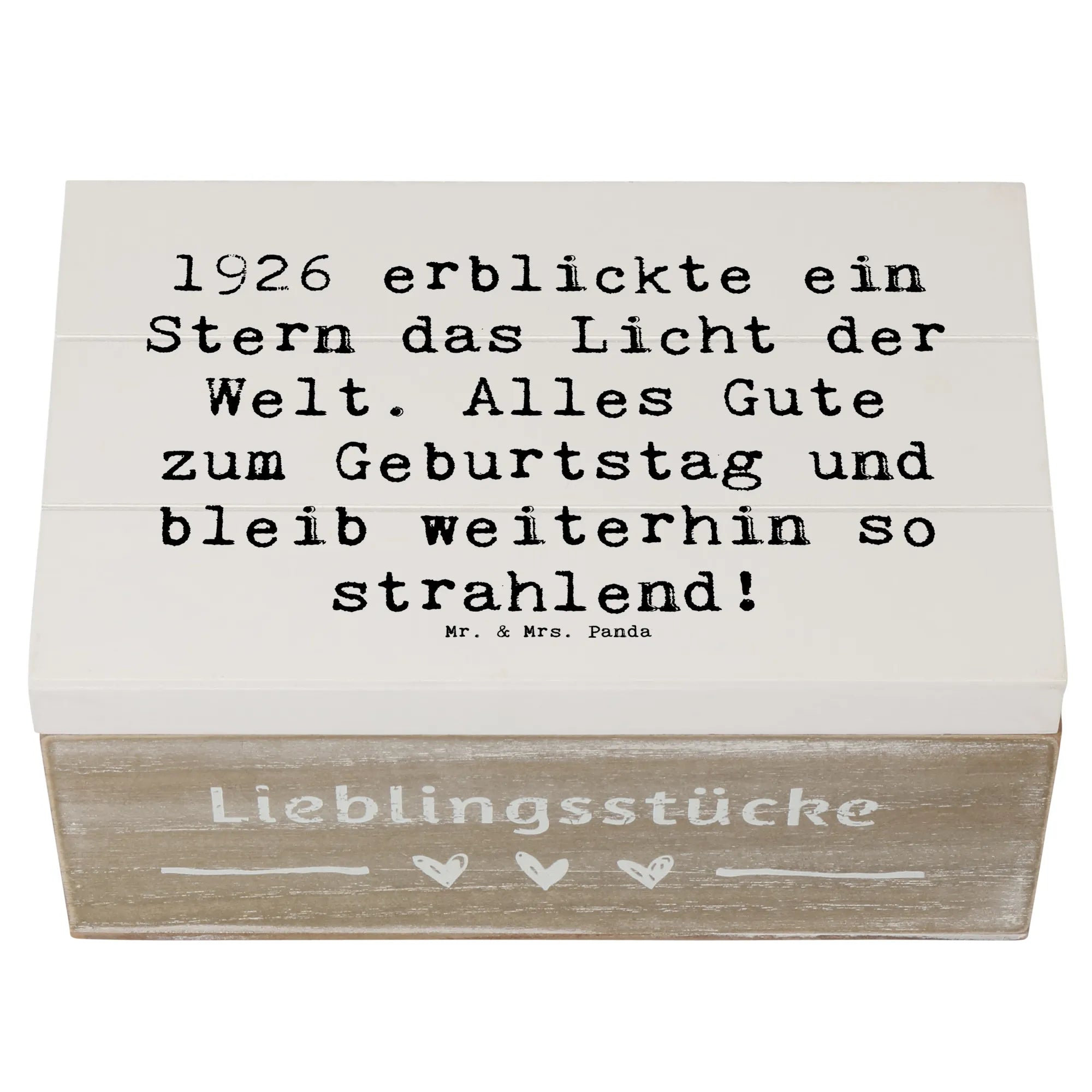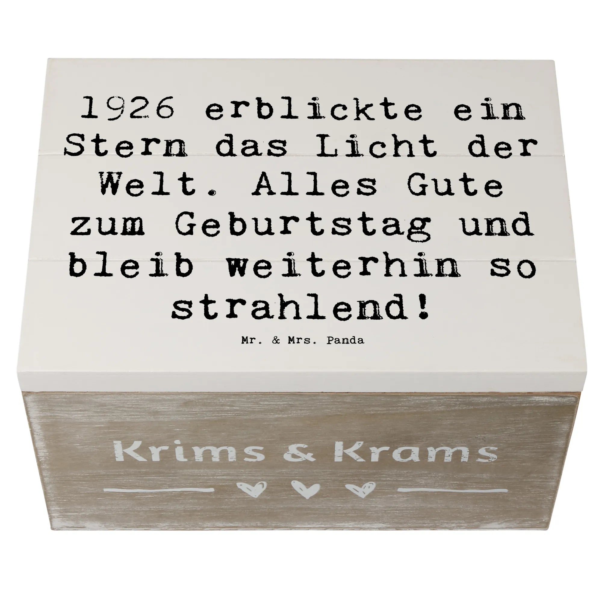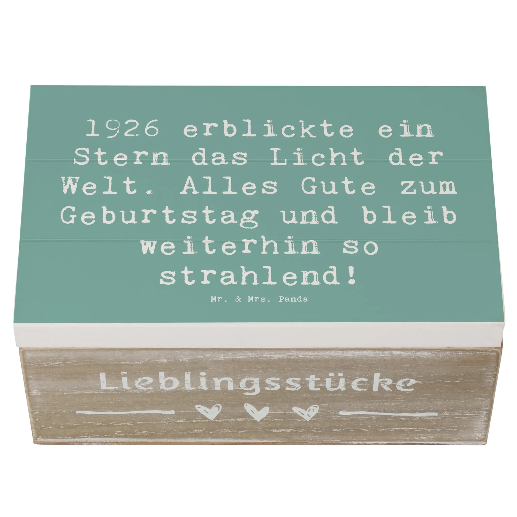 Wenn Du auf der Suche nach einem einzigartigen Geburtstagsgeschenk bist, das nicht nur praktisch ist, sondern auch mit einer liebevollen Botschaft kommt, dann ist diese Holzkiste genau das Richtige! Jedes Mal, wenn die Kiste geöffnet wird, wird der Spruch '1926 erblickte ein Stern das Licht der Welt. Alles Gute zum Geburtstag und bleib weiterhin so strahlend!' gelesen und schafft damit unvergessliche Momente.