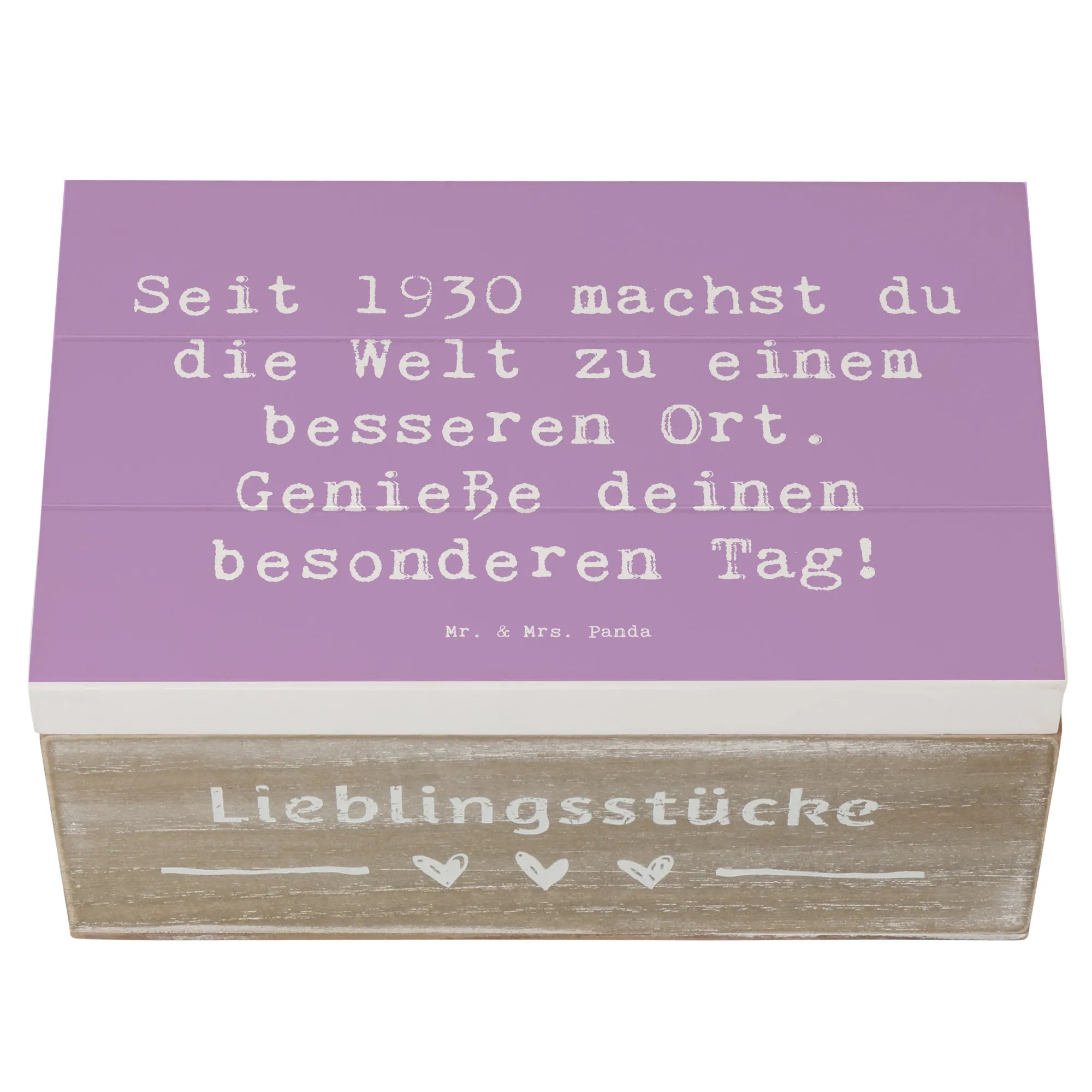 Die wunderschöne Holzkiste von Mr. & Mrs. Panda ist das perfekte Geschenk für jeden Geburtstagsjubilar, der im Jahr 1930 das Licht der Welt erblickt hat. Mit einem liebevollen Spruch, der besagt: 'Seit 1930 machst du die Welt zu einem besseren Ort. Genieße deinen besonderen Tag!', wird diese Erinnerungskiste bereits beim Auspacken für Freude sorgen.