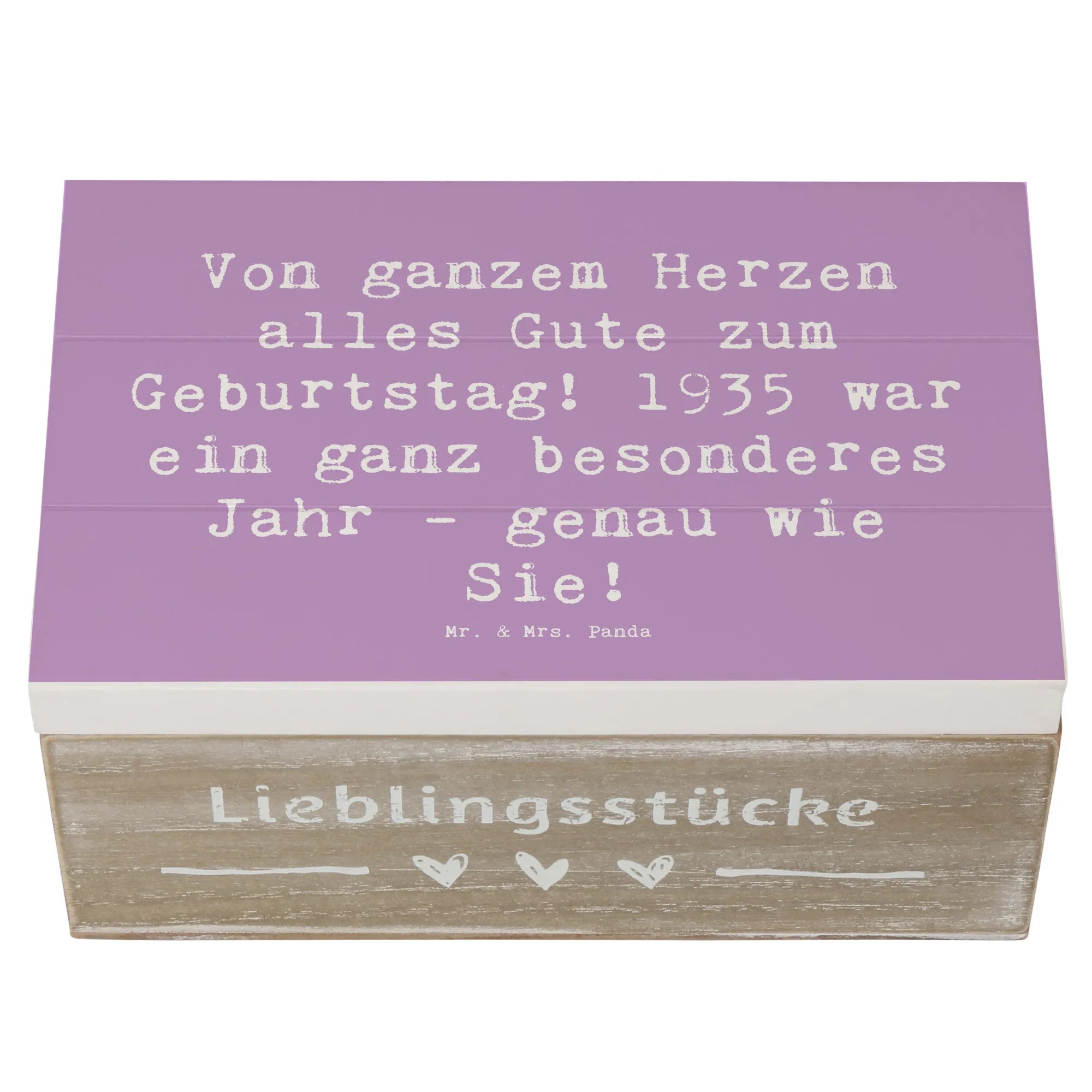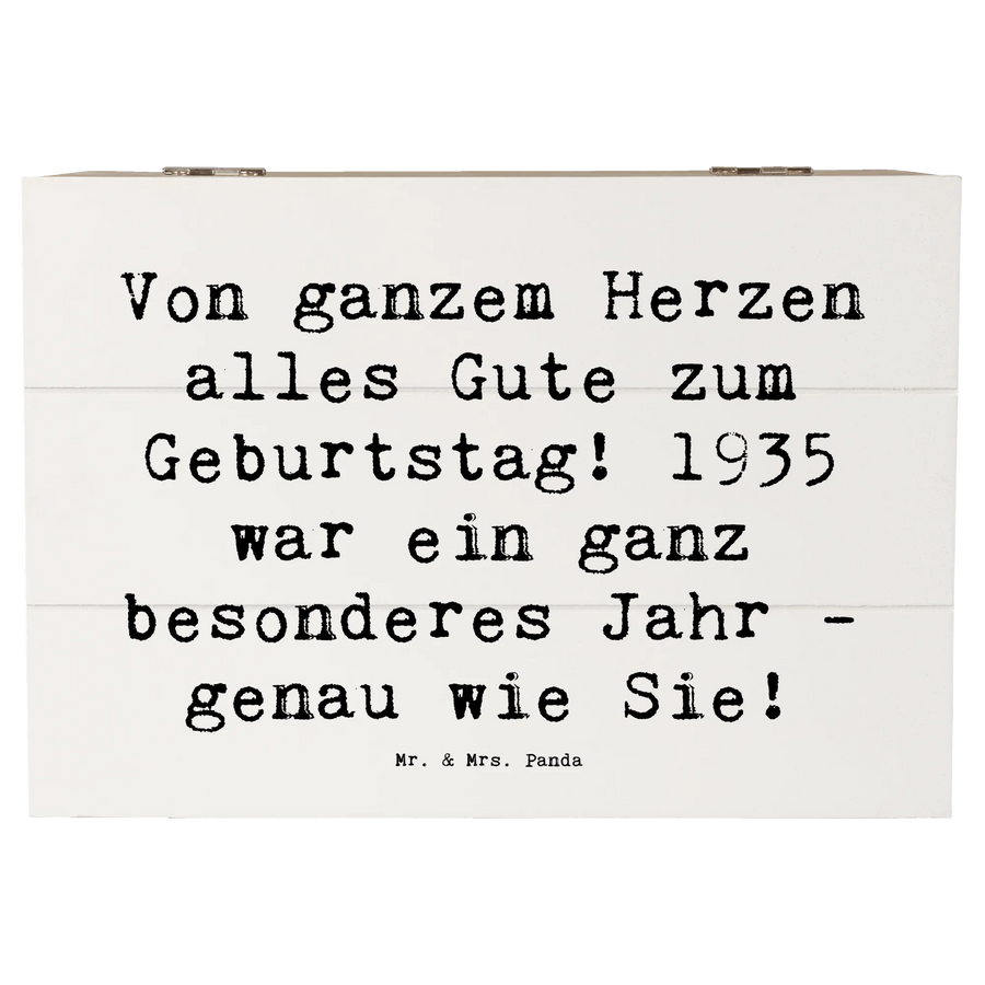 Eine zauberhafte Holzkiste von Mr. & Mrs. Panda – perfekt als Geburtstagsgeschenk für alle, die 1935 geboren wurden. Der liebevolle Spruch „Von ganzem Herzen alles Gute zum Geburtstag! 1935 war ein ganz besonderes Jahr - genau wie Sie!“ macht diese Holzbox zu einer persönlichen und emotionalen Überraschung.