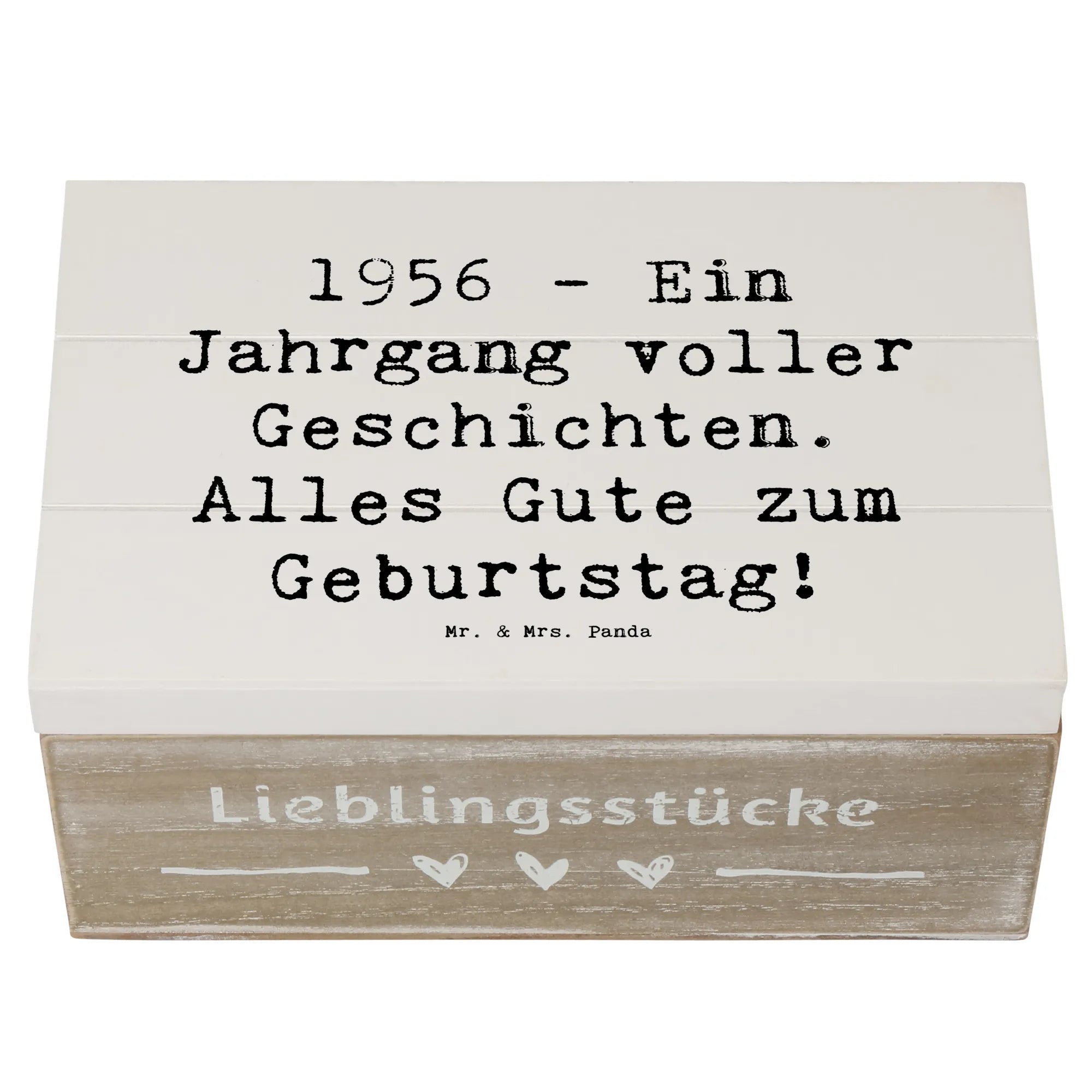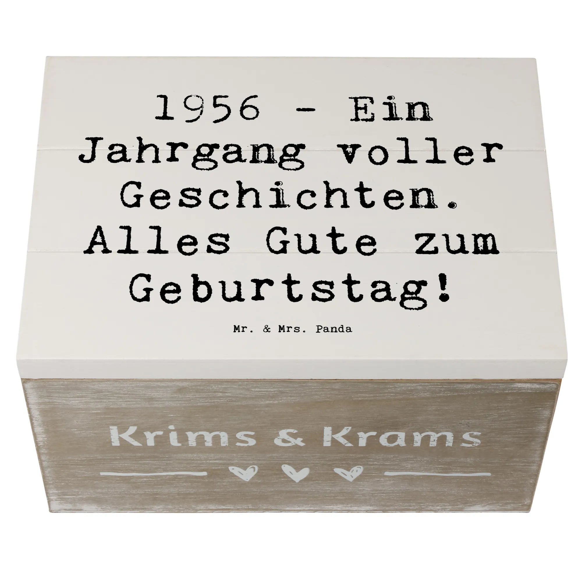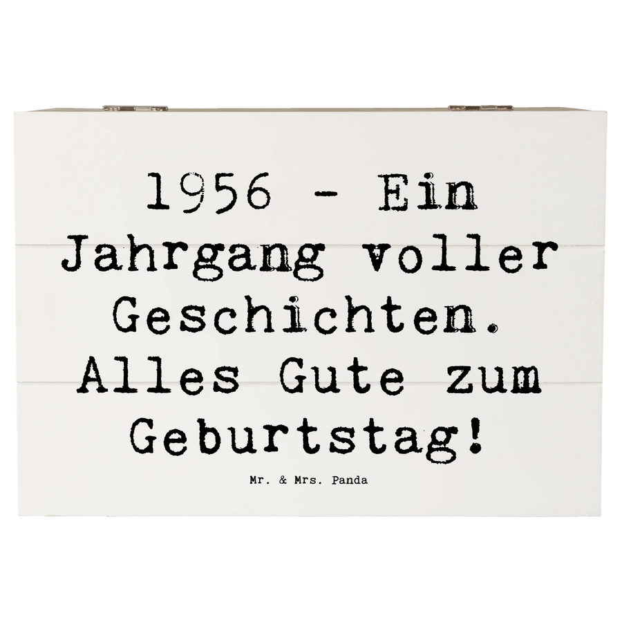 Die wunderschöne Holzkiste von Mr. & Mrs. Panda ist das perfekte Geschenk für alle, die 1956 geboren wurden oder jemanden damit überraschen möchten. Diese Erinnerungskiste, bedruckt mit dem liebevollen Slogan "1956 - Ein Jahrgang voller Geschichten. Alles Gute zum Geburtstag!", bietet nicht nur einen stilvollen Aufbewahrungsort für persönliche Schätze, sondern ist auch ein ganz besonderes Highlight jeder Feier.