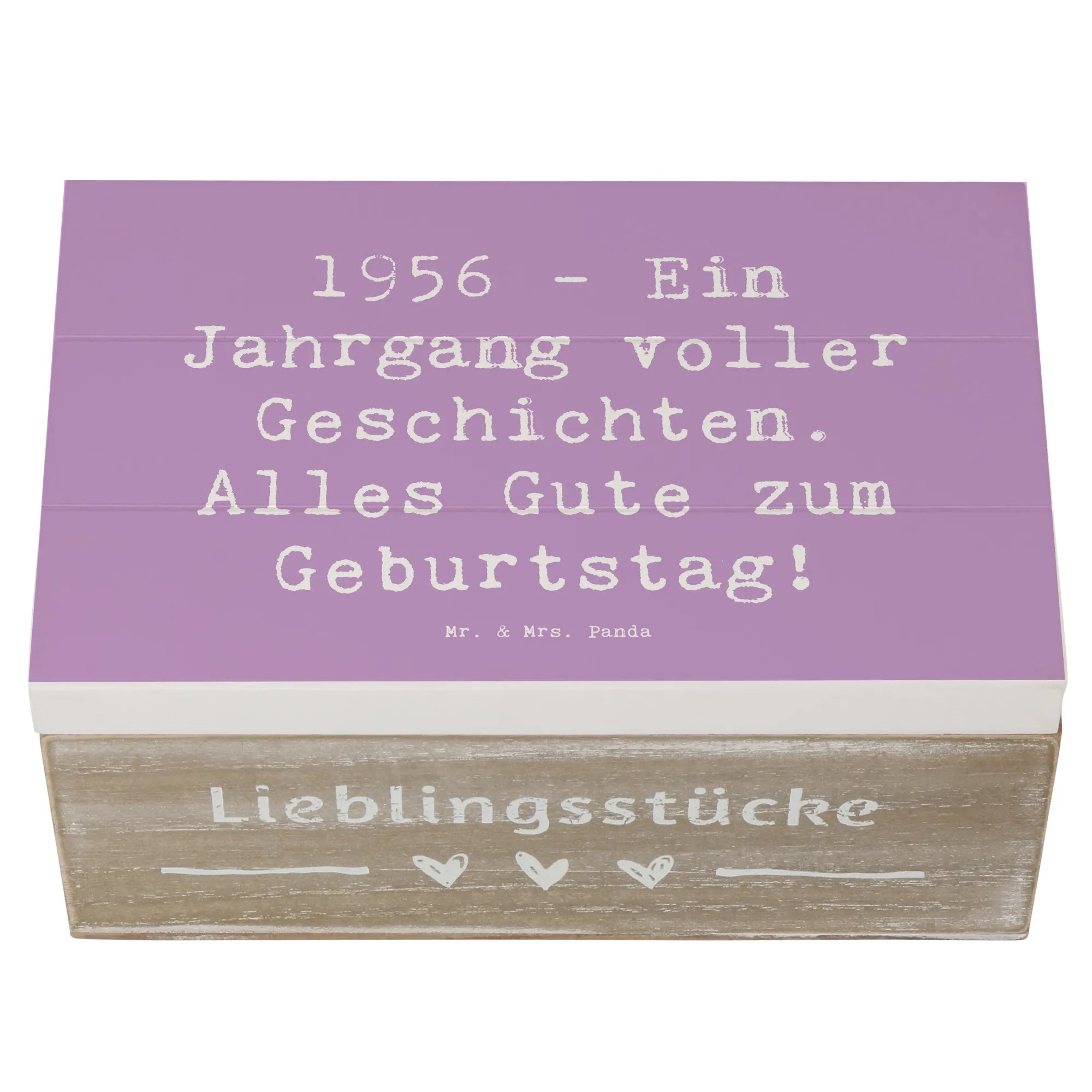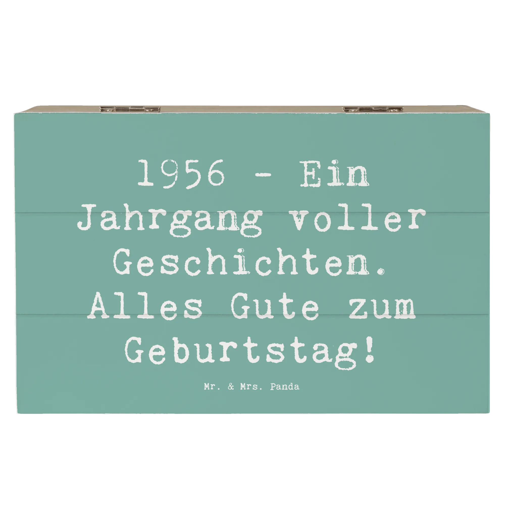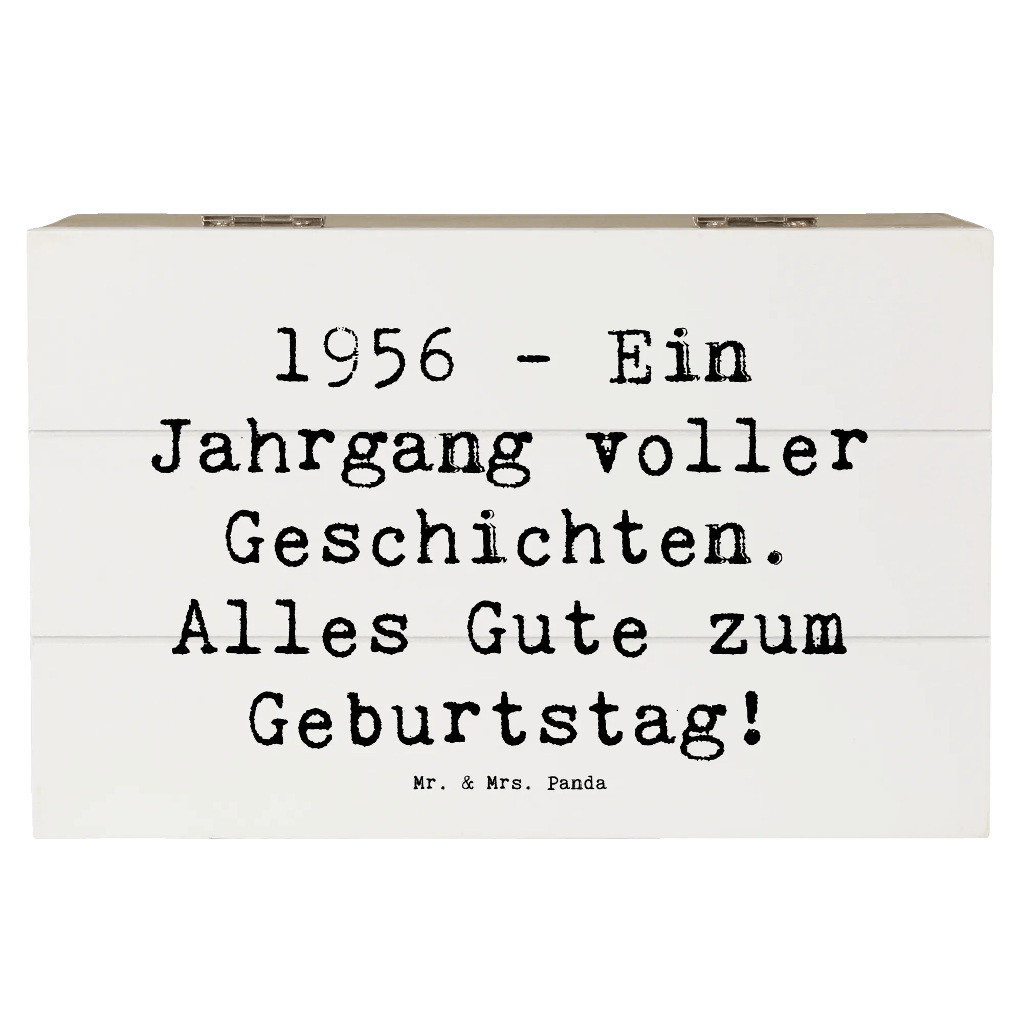 Die wunderschöne Holzkiste von Mr. & Mrs. Panda ist das perfekte Geschenk für alle, die 1956 geboren wurden oder jemanden damit überraschen möchten. Diese Erinnerungskiste, bedruckt mit dem liebevollen Slogan "1956 - Ein Jahrgang voller Geschichten. Alles Gute zum Geburtstag!", bietet nicht nur einen stilvollen Aufbewahrungsort für persönliche Schätze, sondern ist auch ein ganz besonderes Highlight jeder Feier.