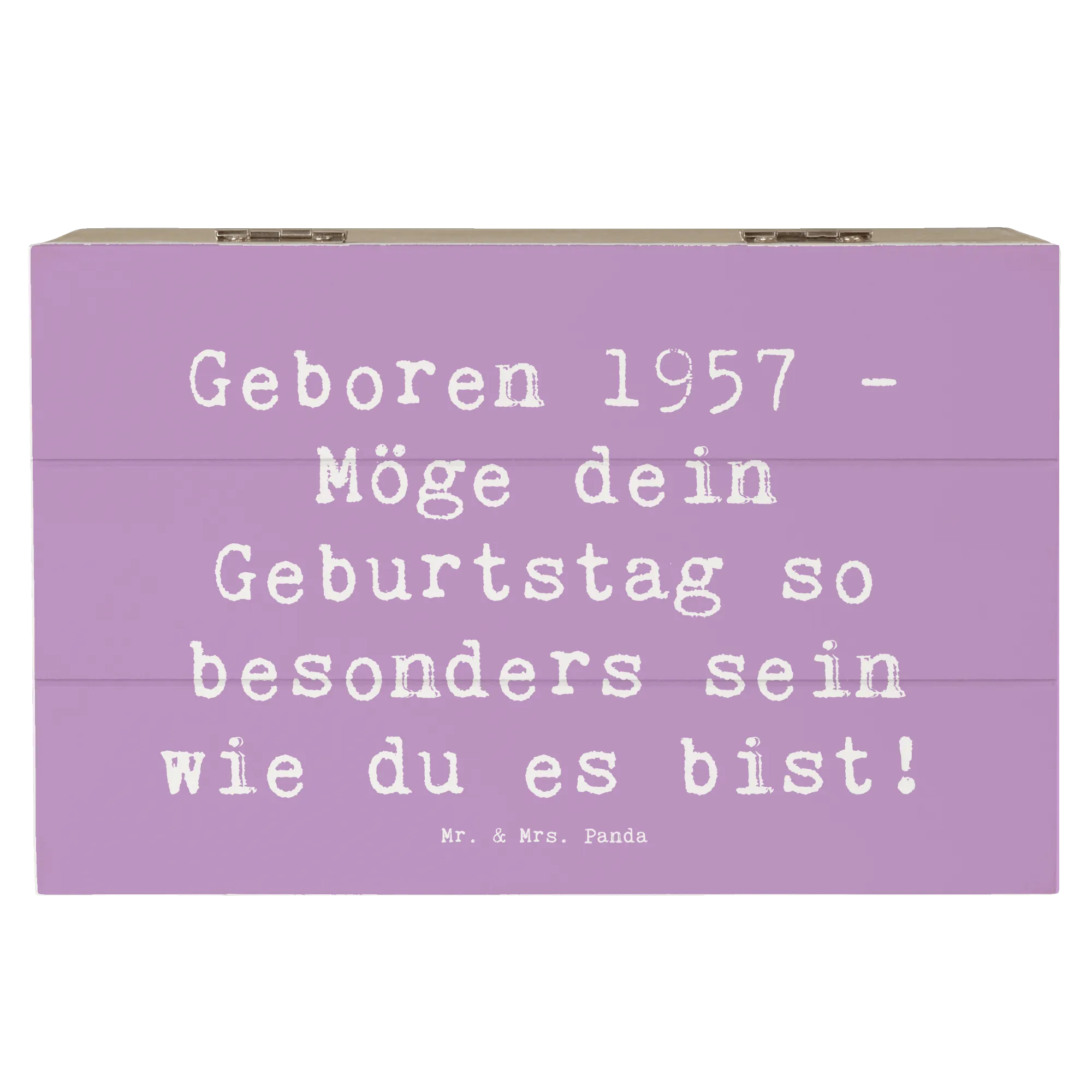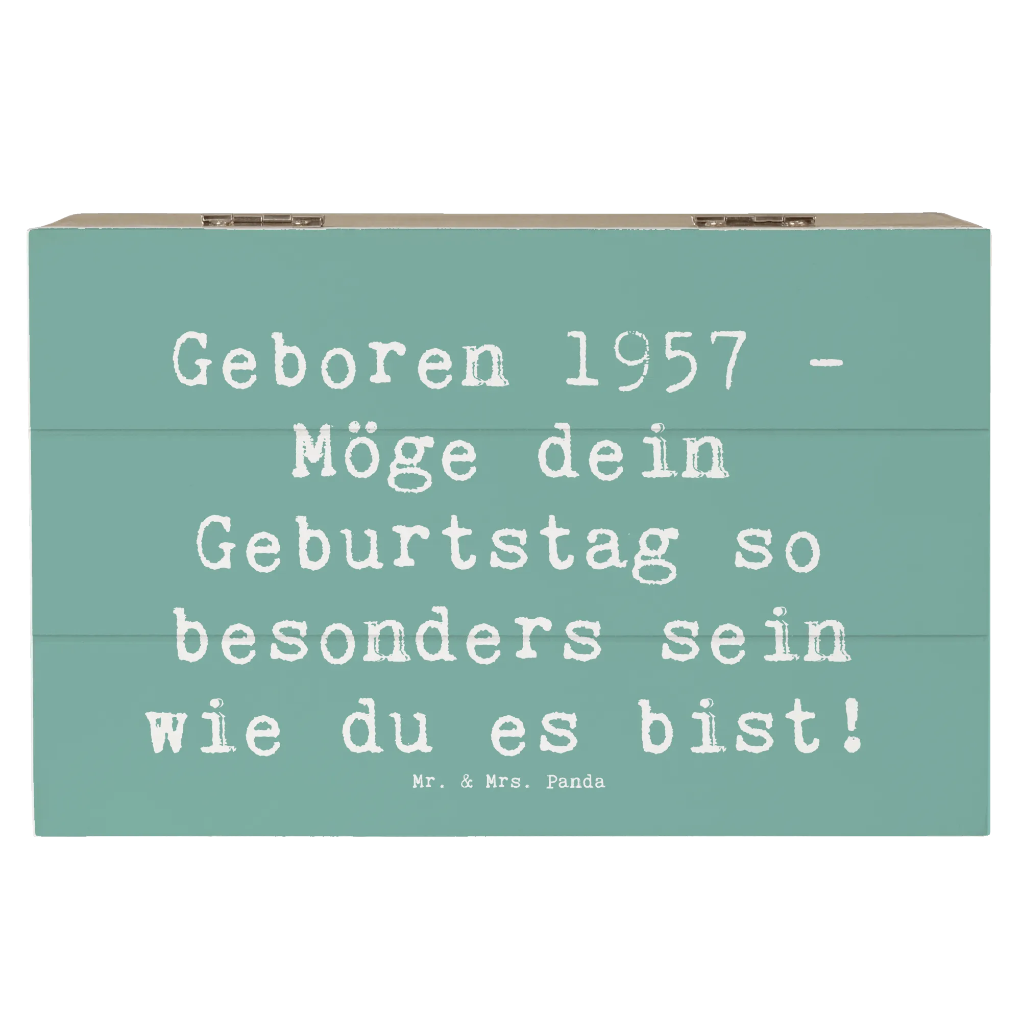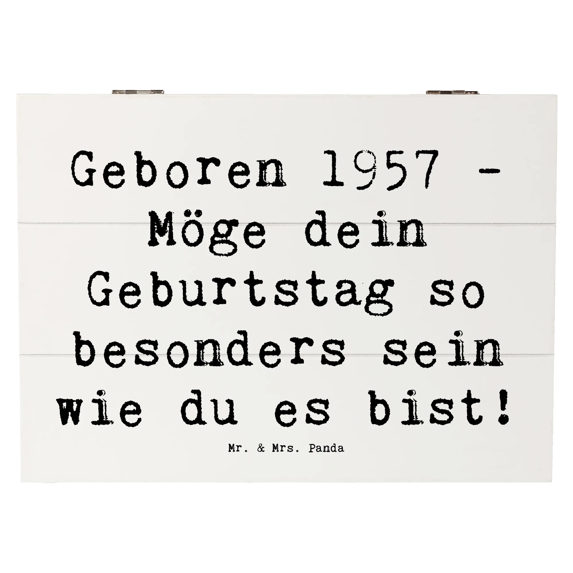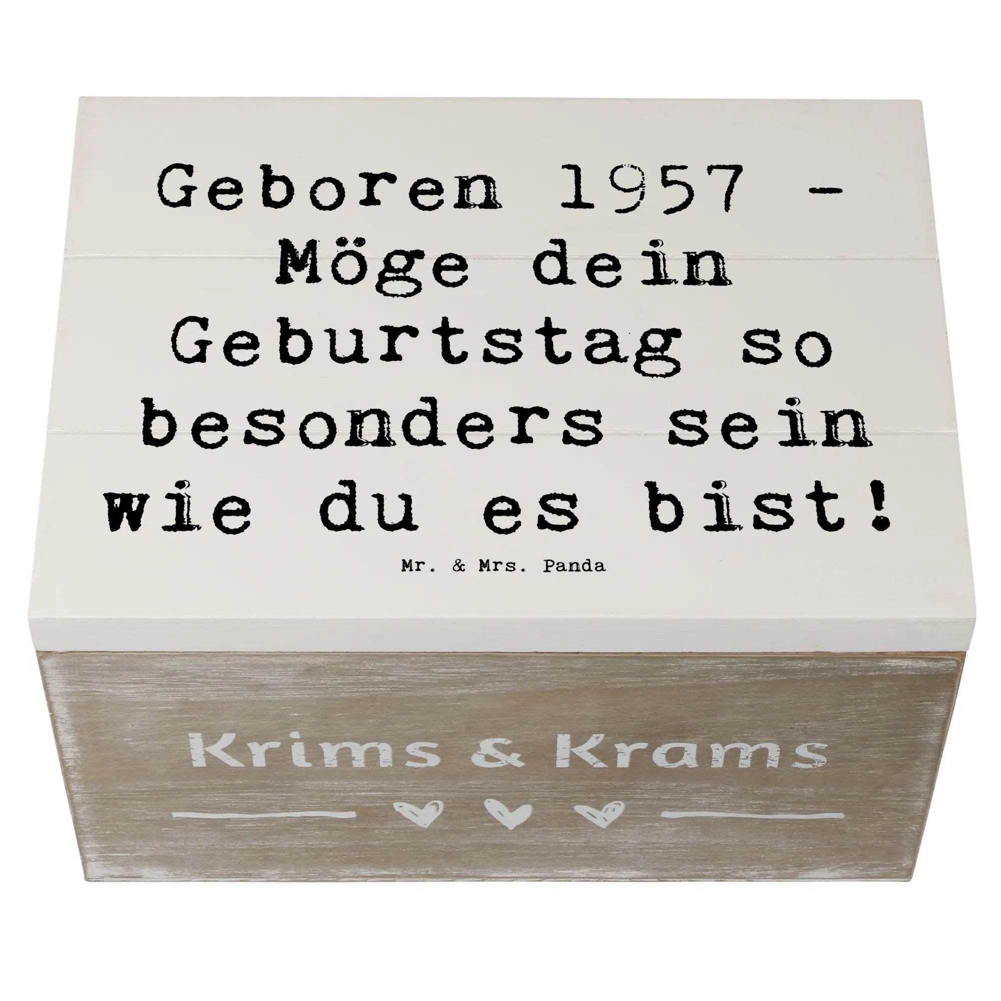Die wunderschöne Holzkiste von Mr. & Mrs. Panda mit dem originellen Motiv "Geboren 1957 - Möge dein Geburtstag so besonders sein wie du es bist!" ist ein perfektes Geschenk für alle, die im Jahr 1957 das Licht der Welt erblickt haben. Diese hochwertige Erinnerungskiste kombiniert eine charmante Optik mit einer besonderen Funktionalität.