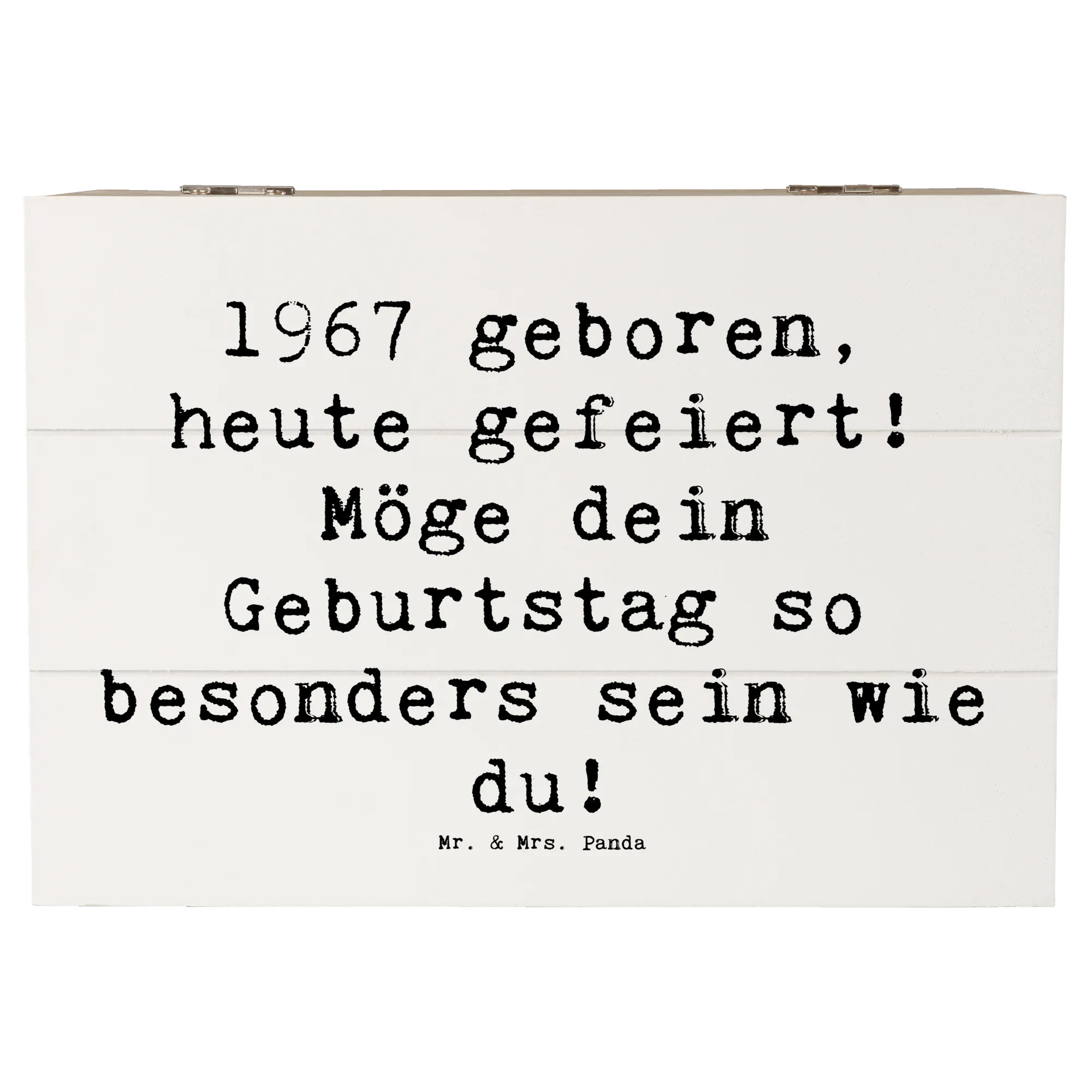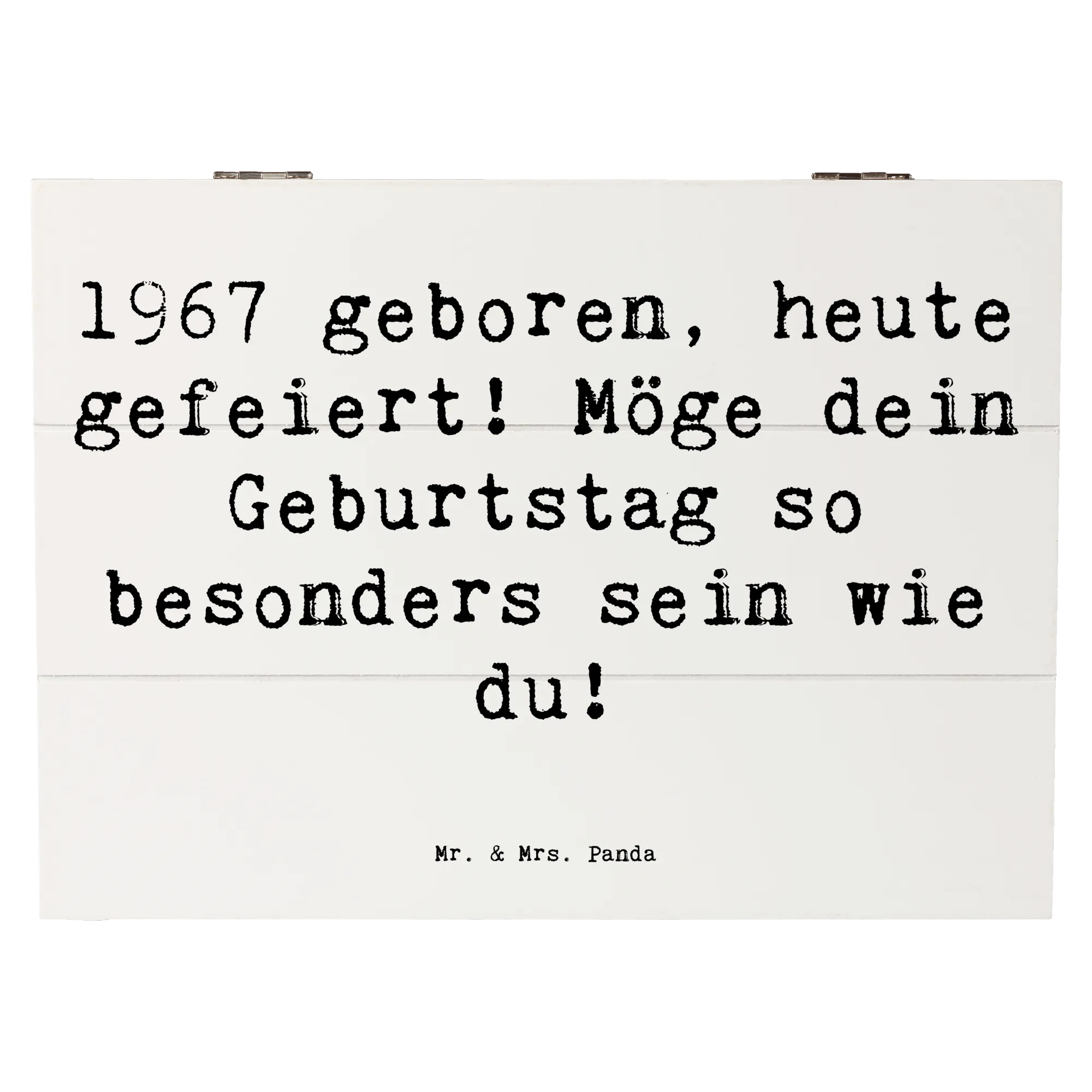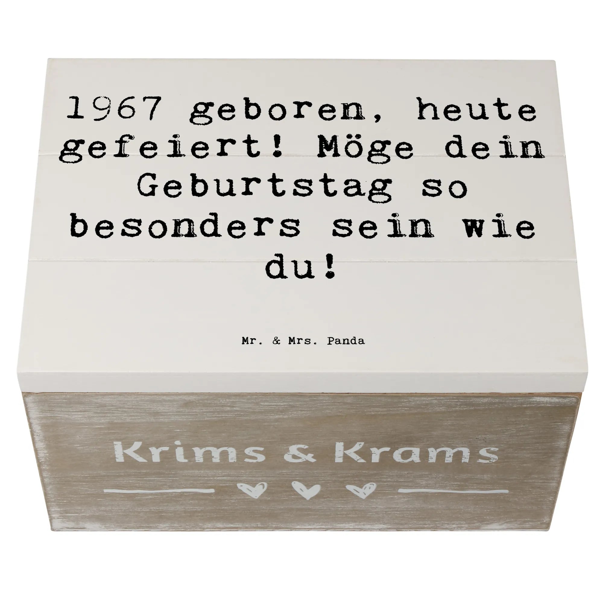 Mit dem liebevollen Motiv "1967 geboren, heute gefeiert! Möge dein Geburtstag so besonders sein wie du!" wird jedes Geschenk zu etwas ganz Besonderem. Die Kiste misst 190 mm x 120 mm x 100 mm und bietet ausreichend Platz für all deine Schätze, sei es für Erinnerungen aus der Kindheit, Fotos oder kleine Geschenke.