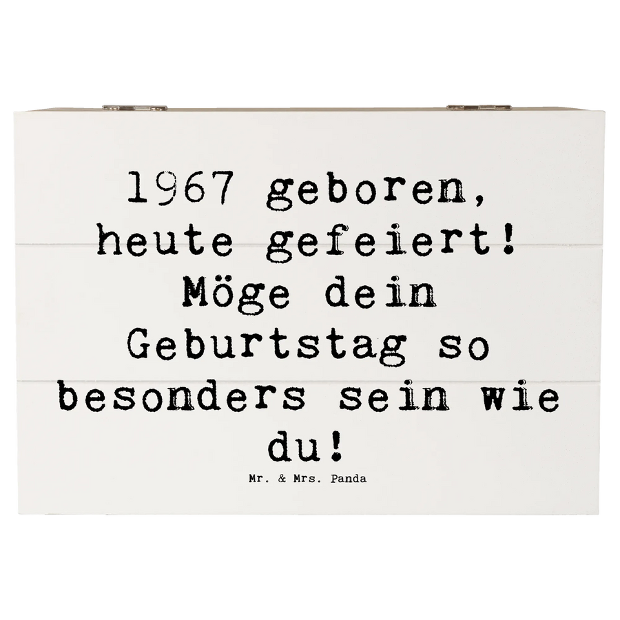 Die wunderschöne Holzkiste von Mr. & Mrs. Panda ist das perfekte Geschenk für alle, die 1967 geboren wurden und ihren besonderen Tag gebührend feiern möchten. Diese liebevoll gestaltete Erinnerungsbox ist nicht nur ein idealer Aufbewahrungsort für wertvolle Schätze und Erinnerungen, sondern auch ein ganz spezielles Geburtstagsgeschenk, das Freude und Glück verbreitet.