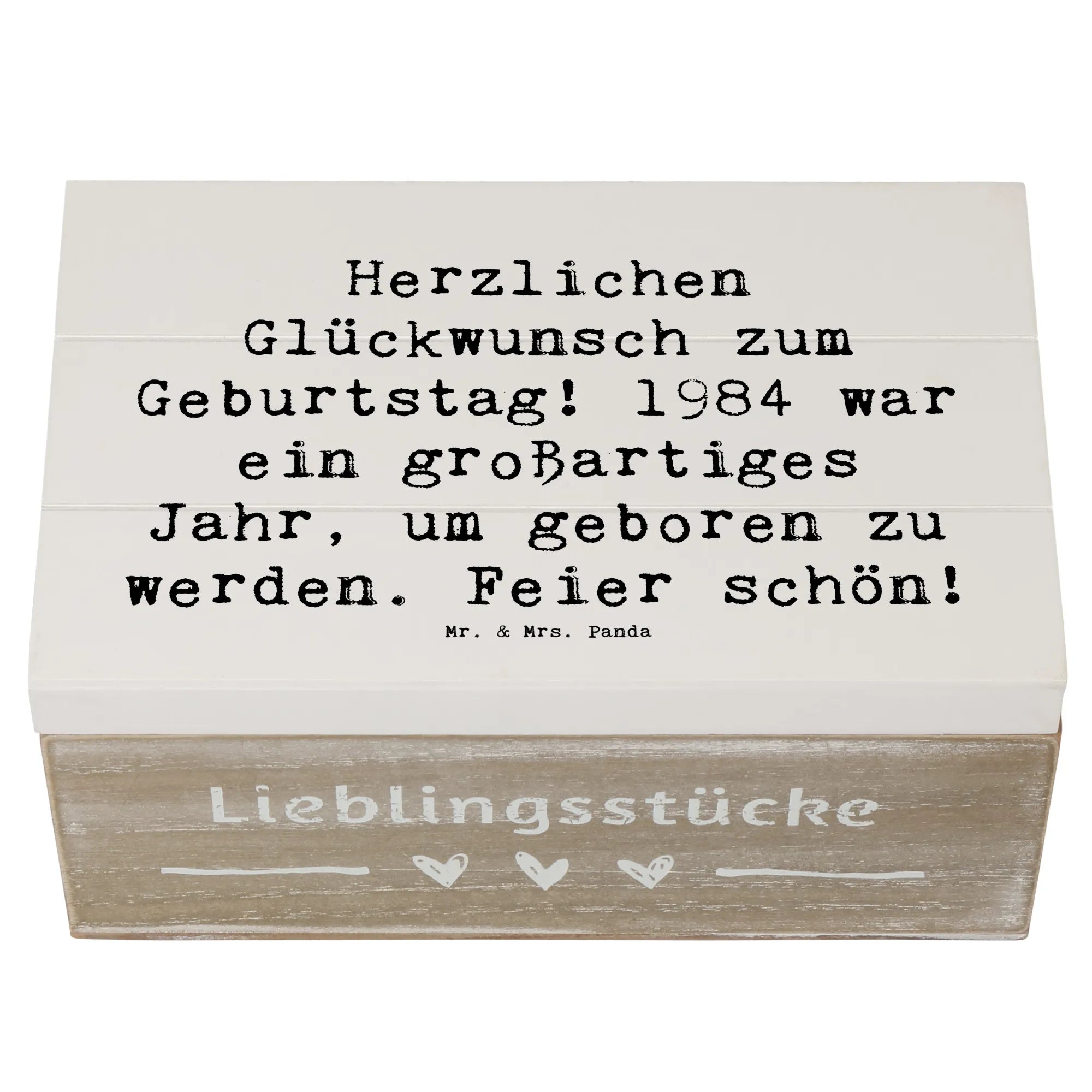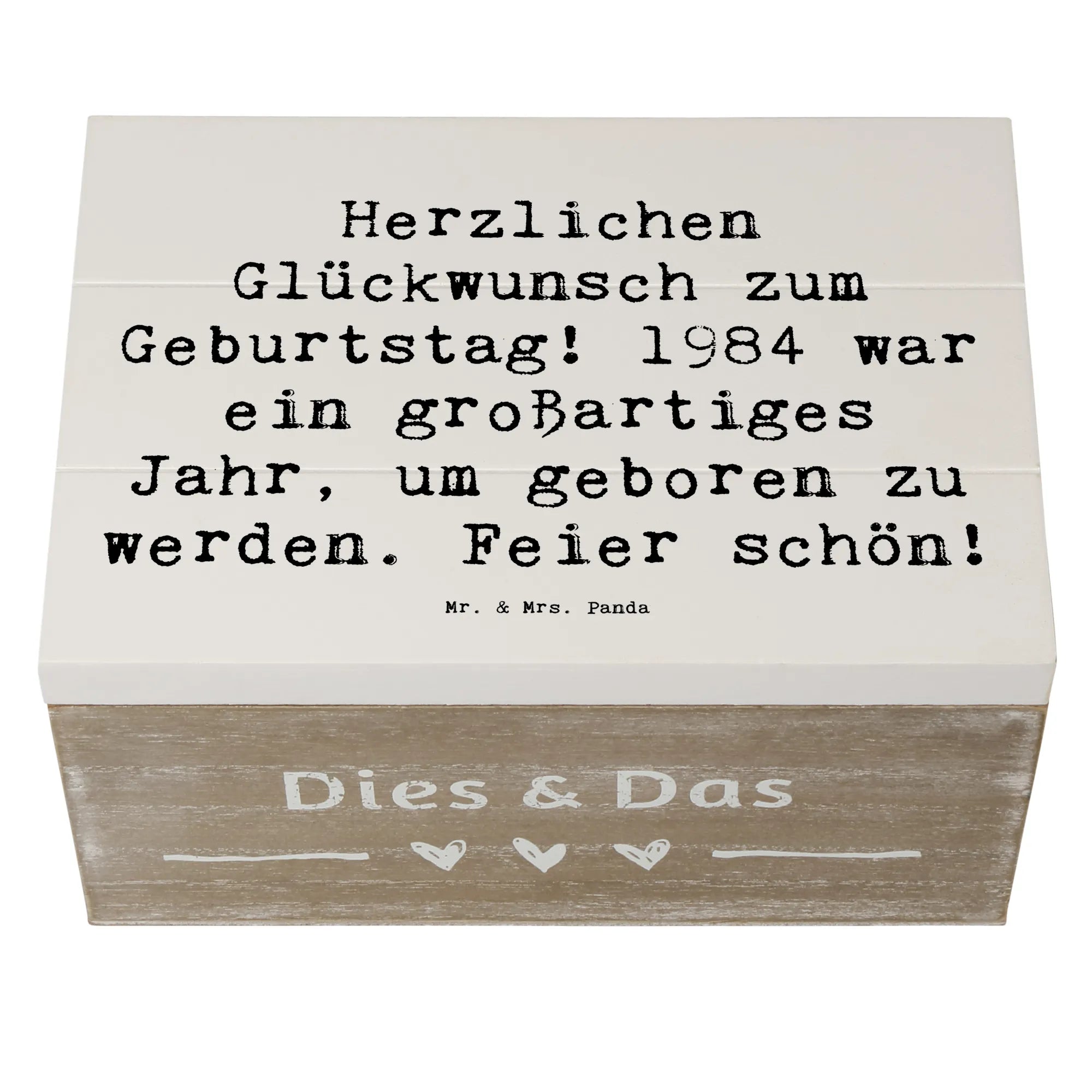 Entdecke die perfekte Holzkiste von Mr. & Mrs. Panda für alle, die 1984 geboren wurden! Diese wunderschöne Holzkiste ist nicht nur funktional, sondern auch ein wahres Schmuckstück. Mit dem liebevoll gestalteten Spruch "Herzlichen Glückwunsch zum Geburtstag! 1984 war ein großartiges Jahr, um geboren zu werden. Feier schön!" bringt sie Lebensfreude in jedes Zuhause.