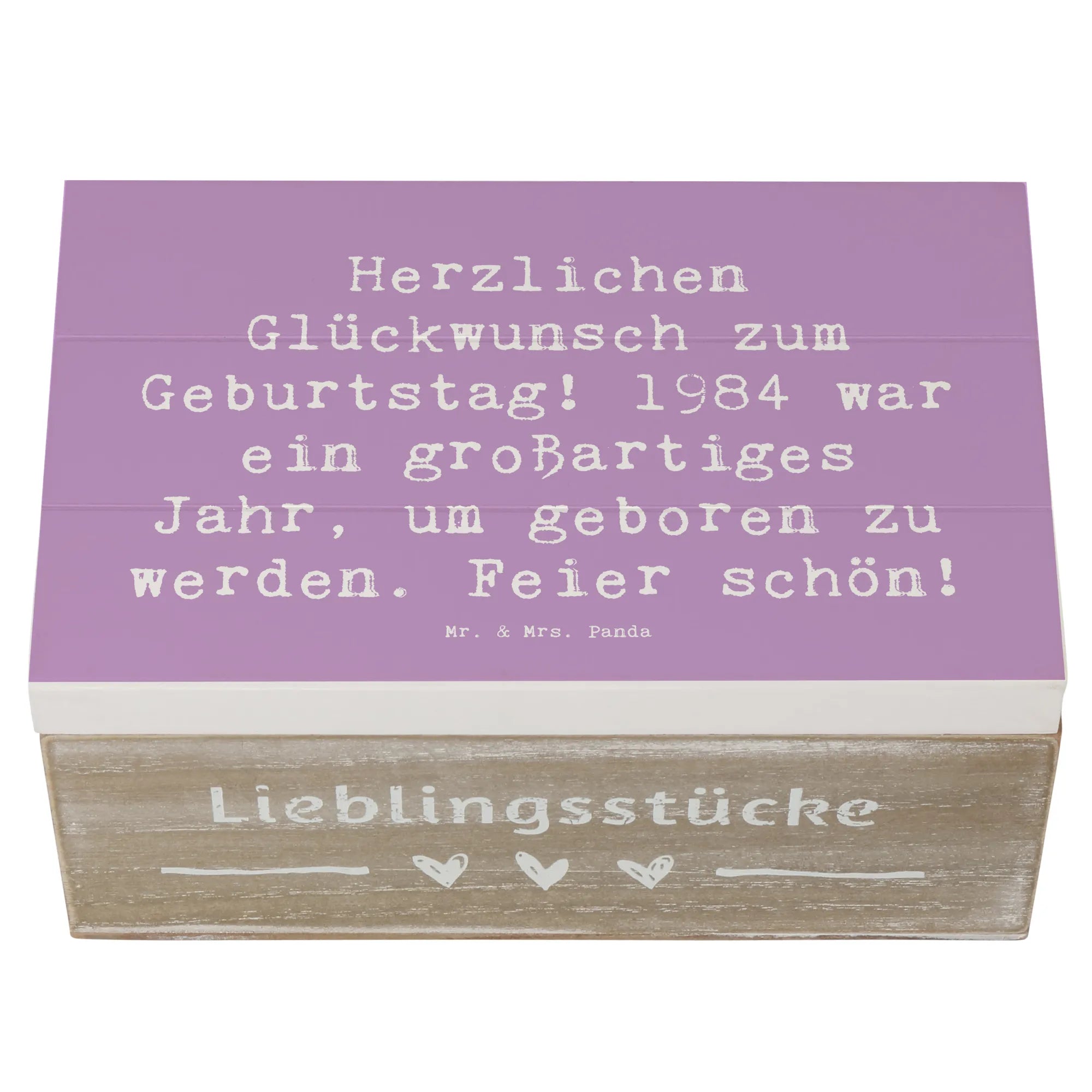 Der Slogan "Herzlichen Glückwunsch zum Geburtstag! 1984 war ein großartiges Jahr, um geboren zu werden. Feier schön!" verleiht der Kiste eine persönliche Note und macht sie zu einem einzigartigen Geschenk. Dieses speziell von den talentierten Künstlern bei Mr. & Mrs. Panda gestaltete Motiv bringt nicht nur Freude, sondern auch einen Hauch Nostalgie mit sich.