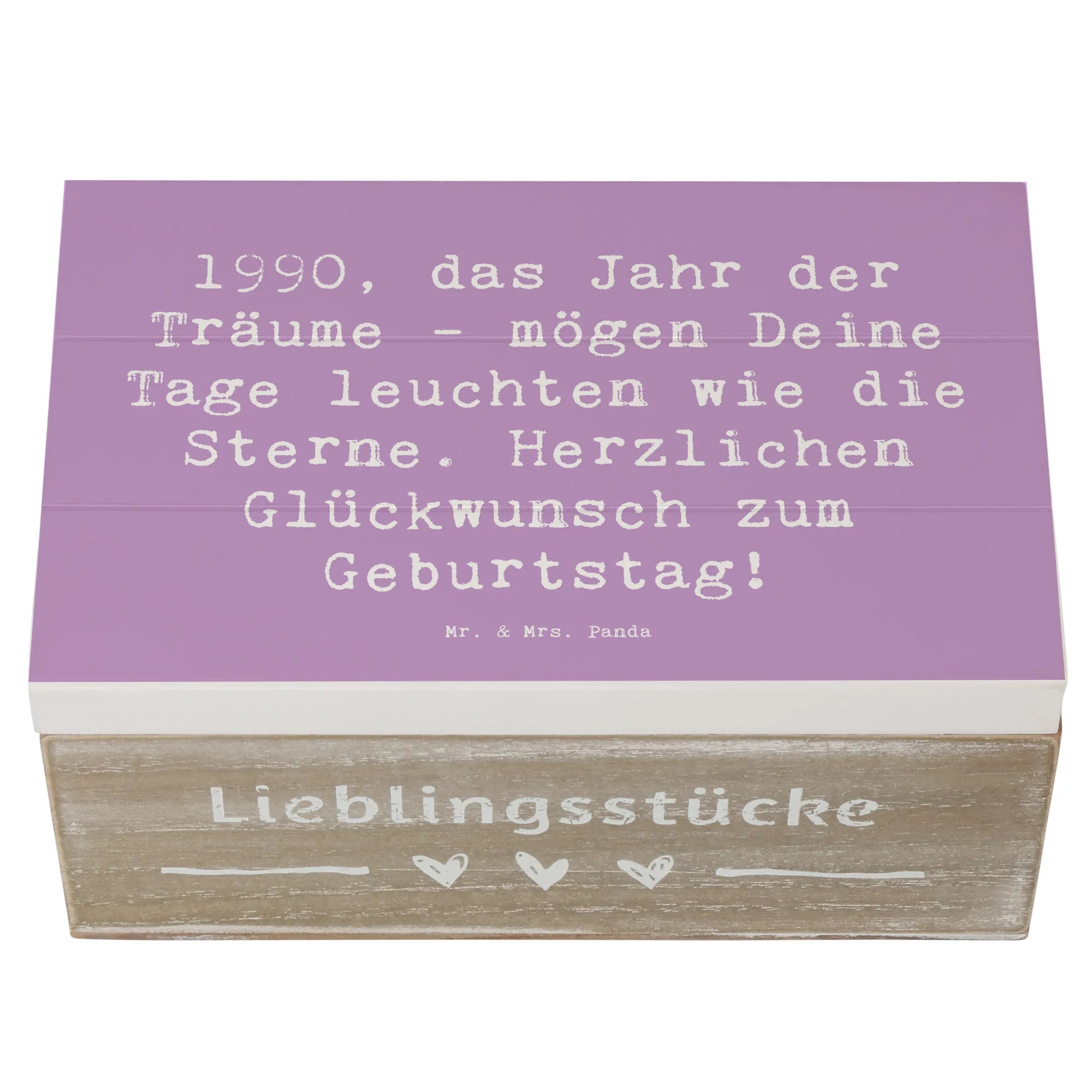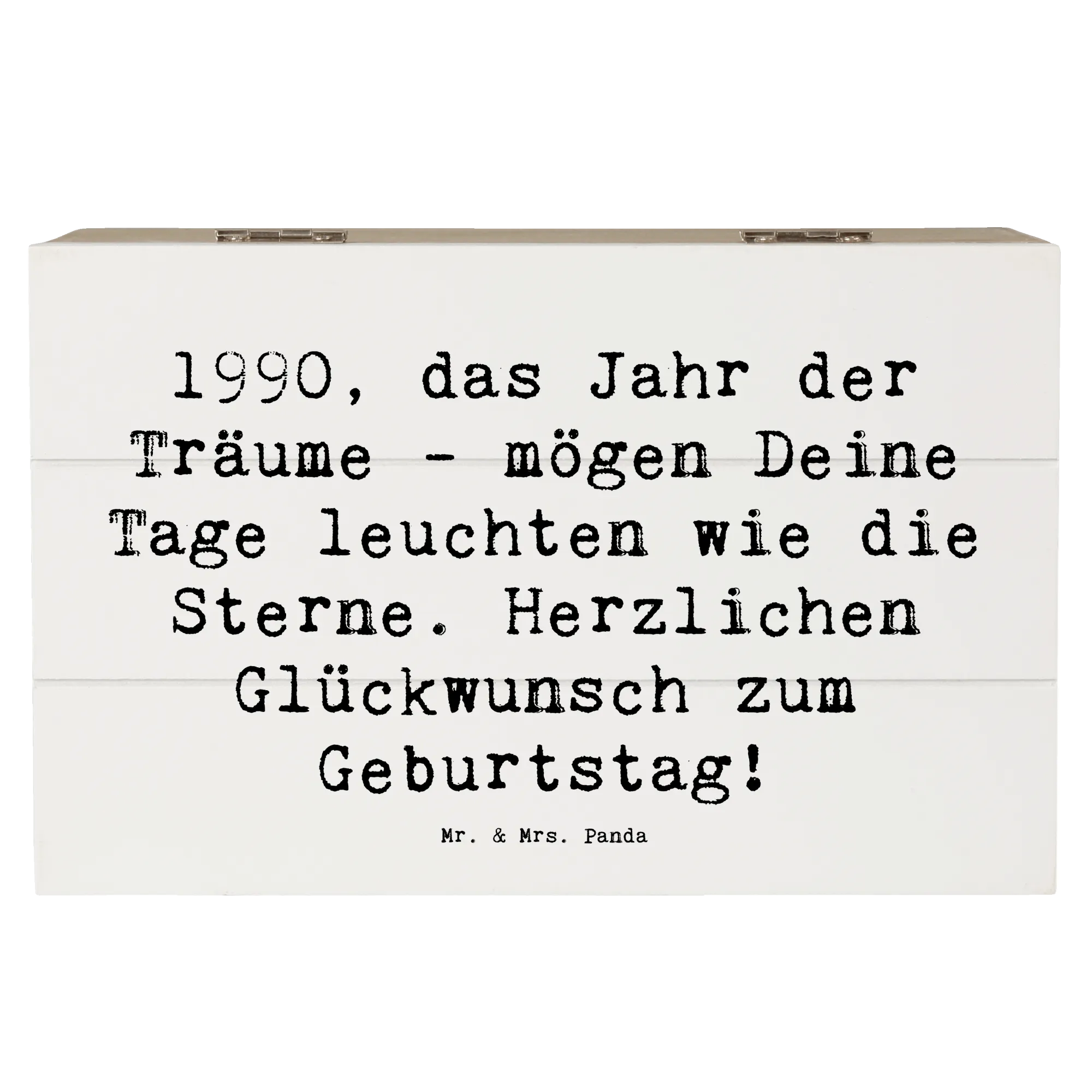 Wenn du auf der Suche nach dem perfekten Geschenk für einen besonderen Menschen bist, dann ist die Holzkiste "1990, das Jahr der Träume" von Mr. & Mrs. Panda genau das Richtige für dich!