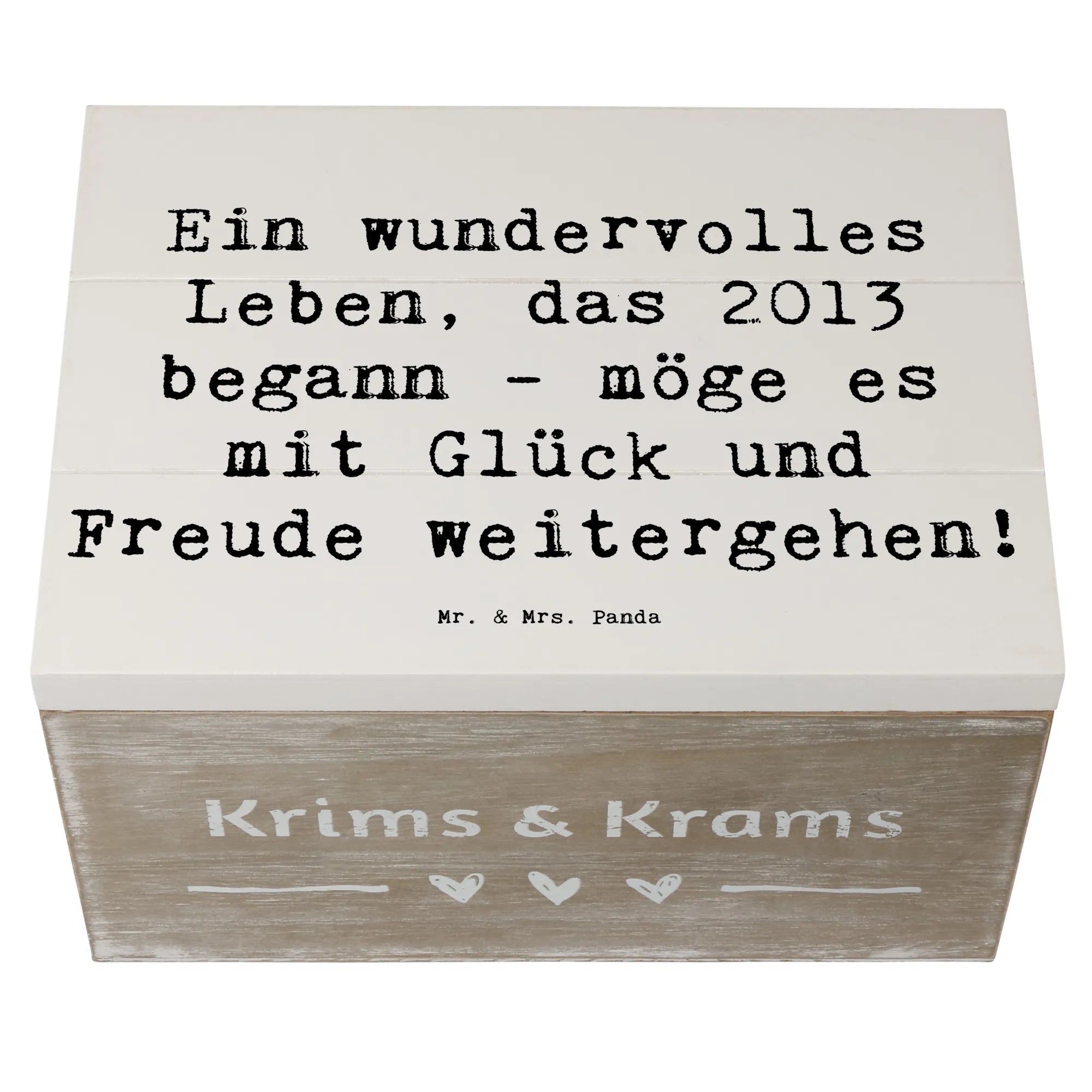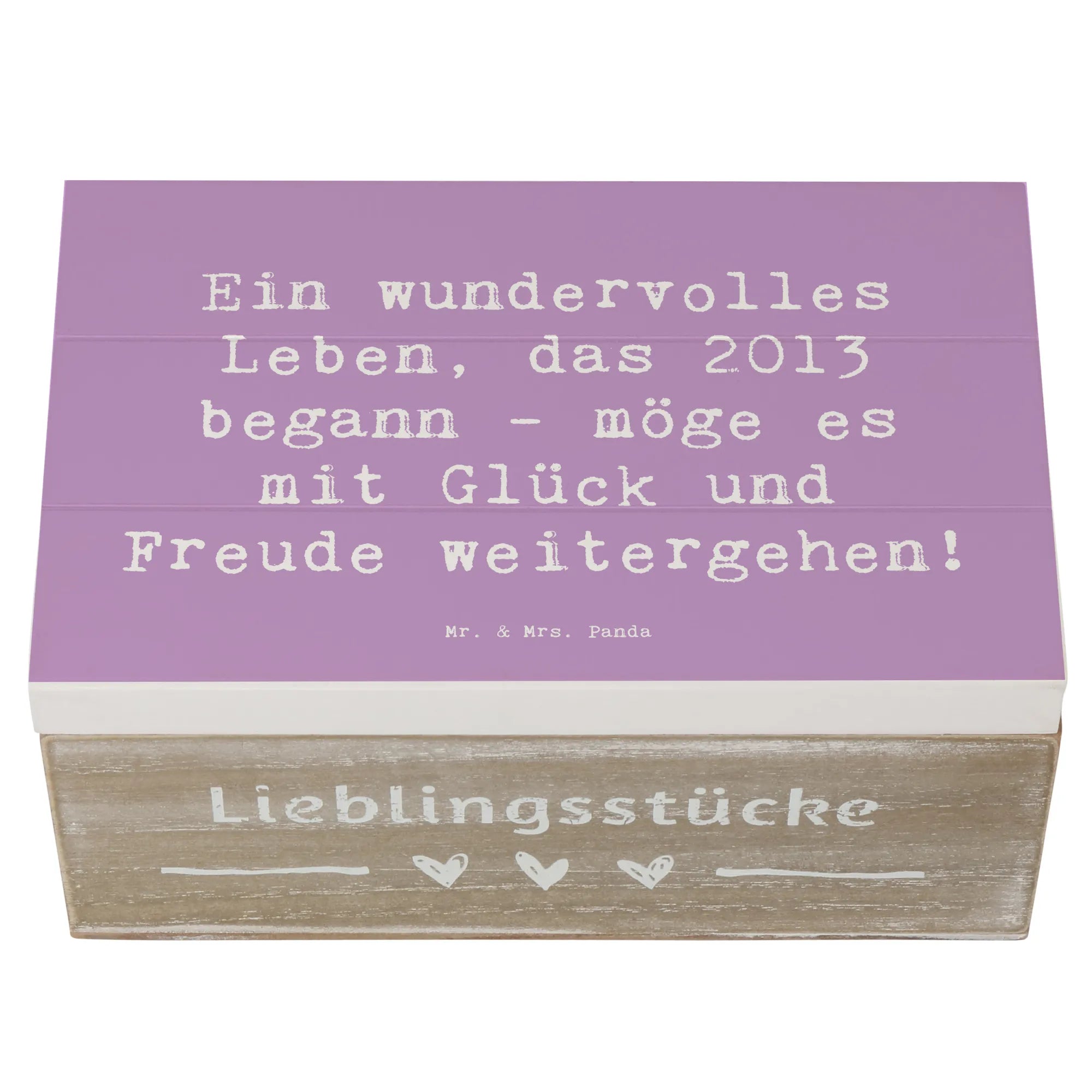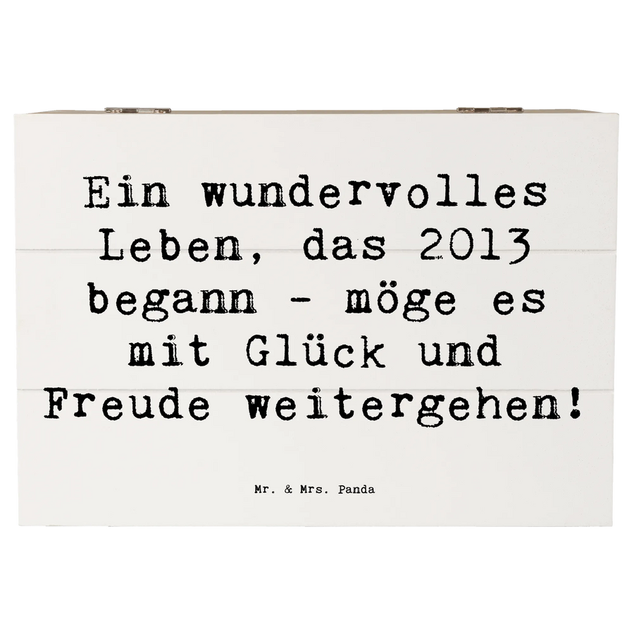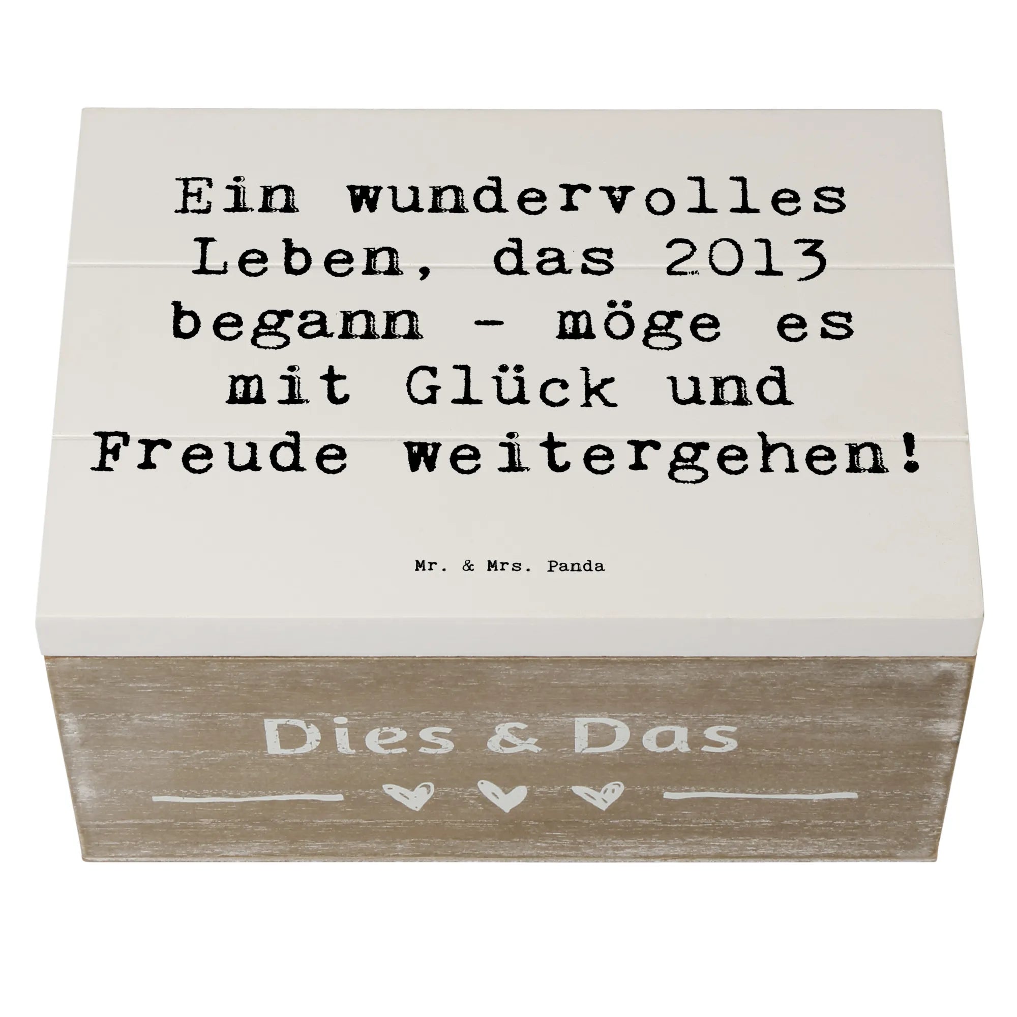 Die wunderschöne Holzkiste von Mr. & Mrs. Panda mit dem Motiv "Ein wundervolles Leben, das 2013 begann - möge es mit Glück und Freude weitergehen!" ist der perfekte Begleiter für alle, die besondere Erlebnisse und Erinnerungen festhalten möchten.