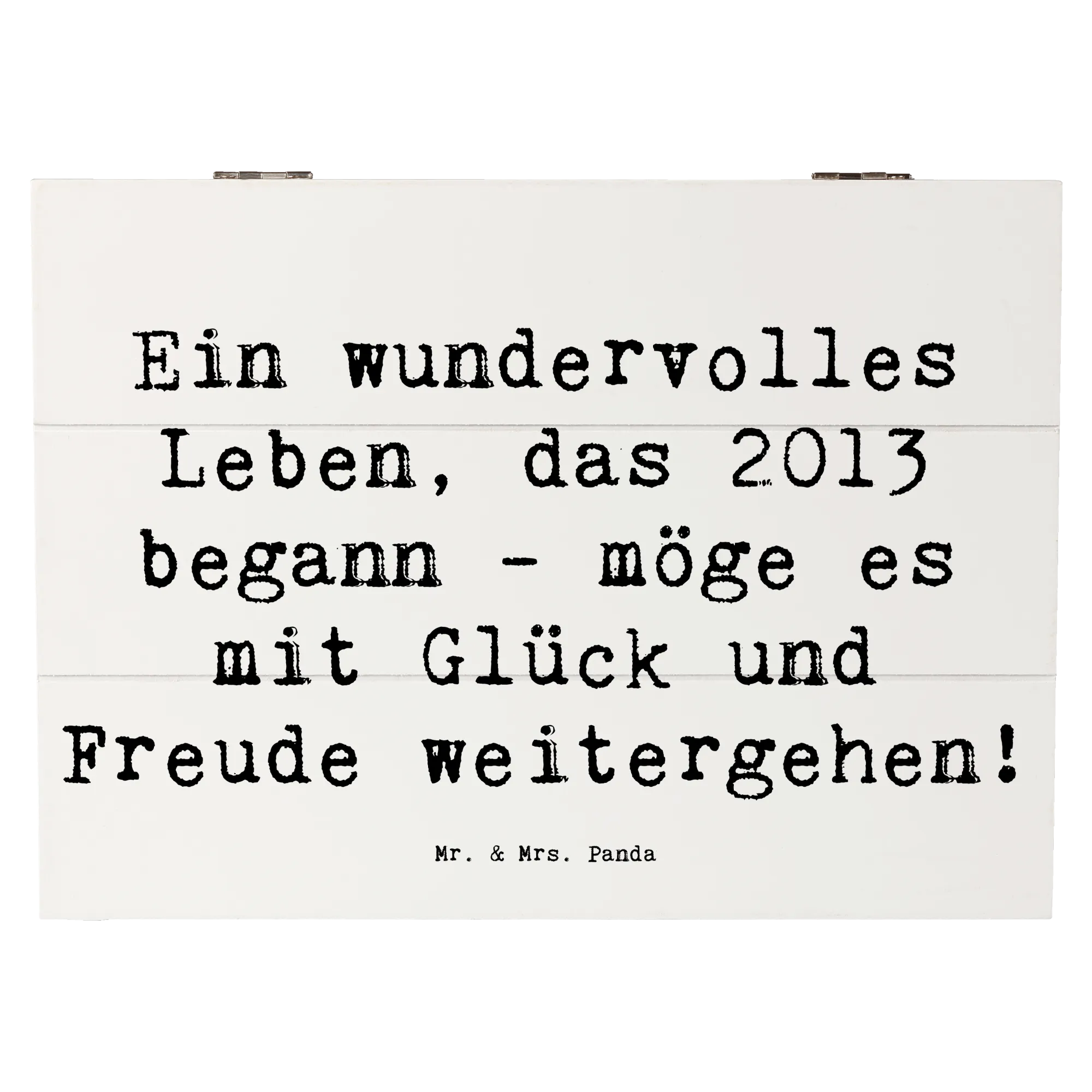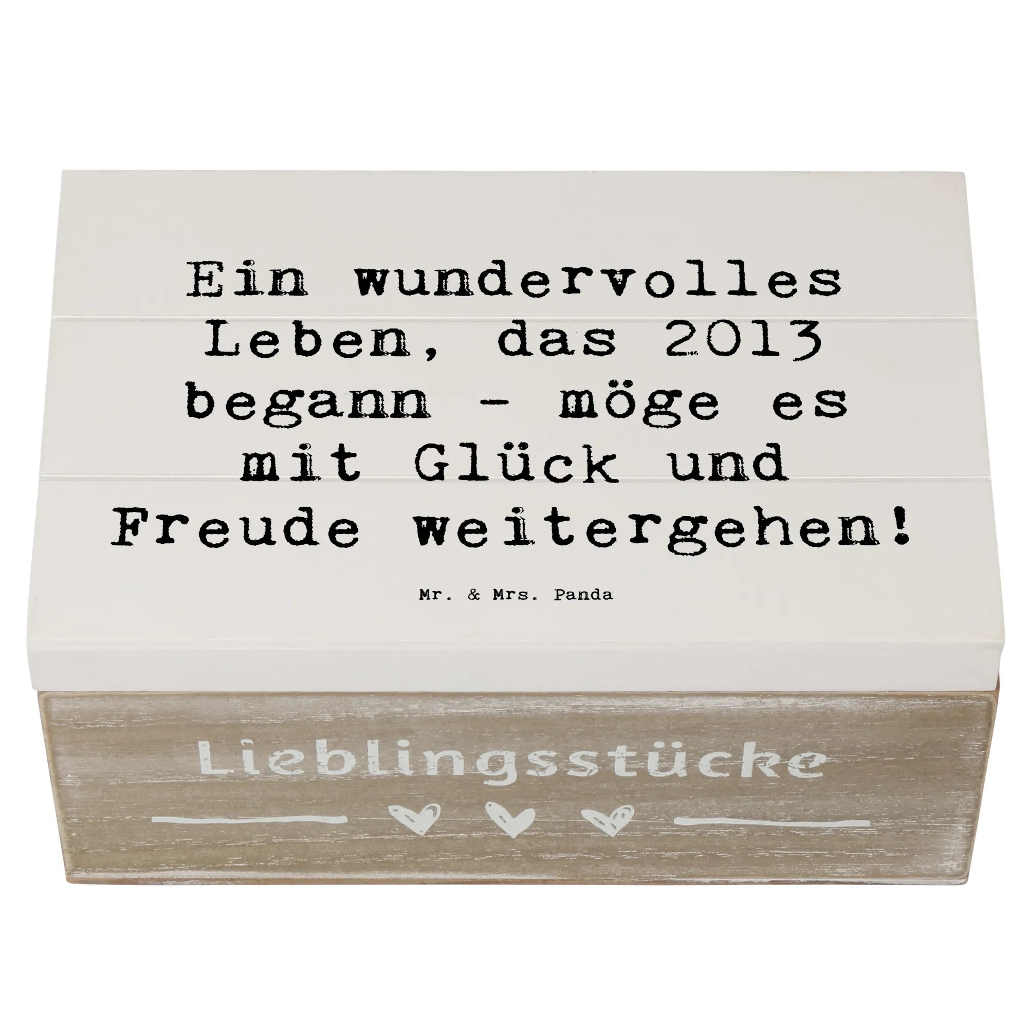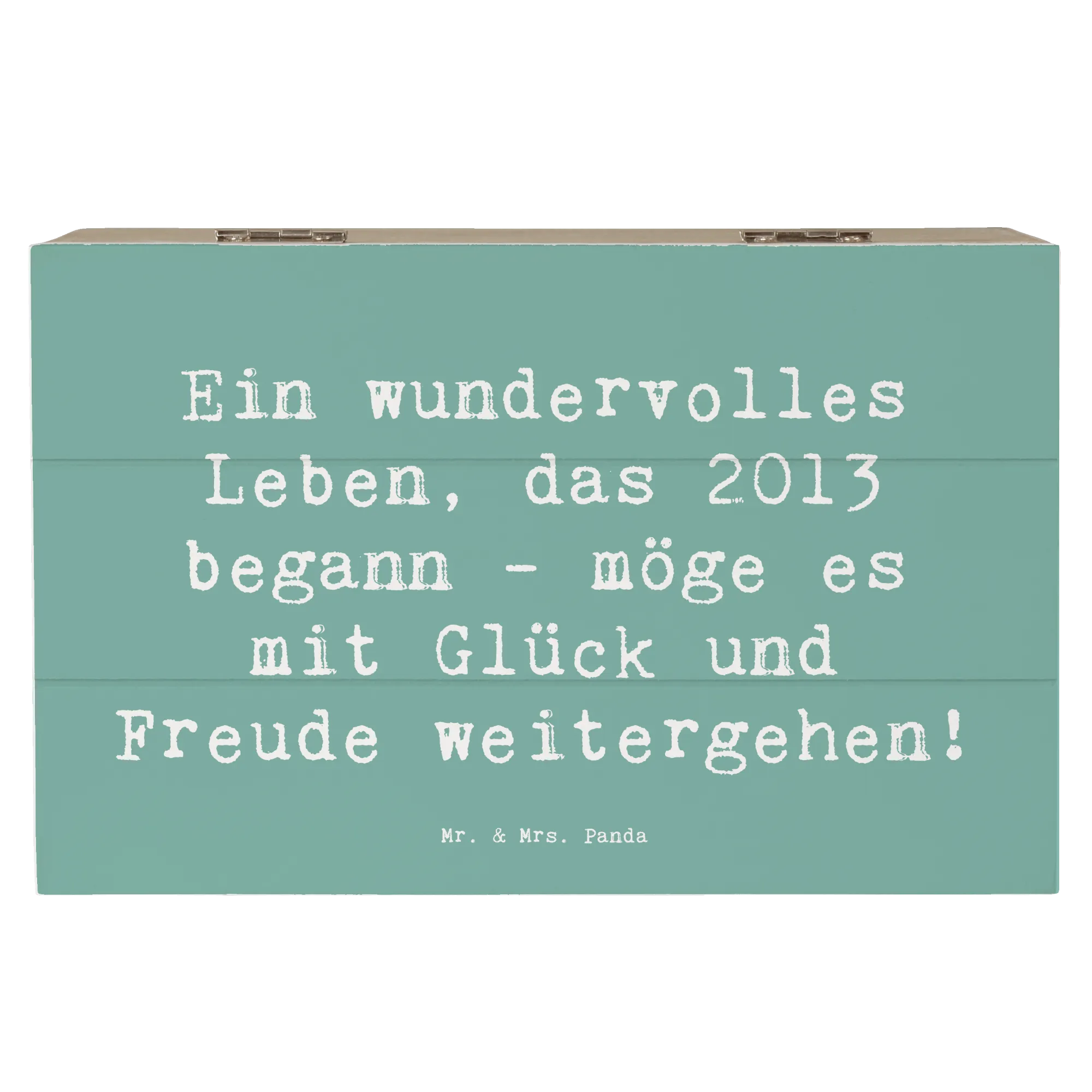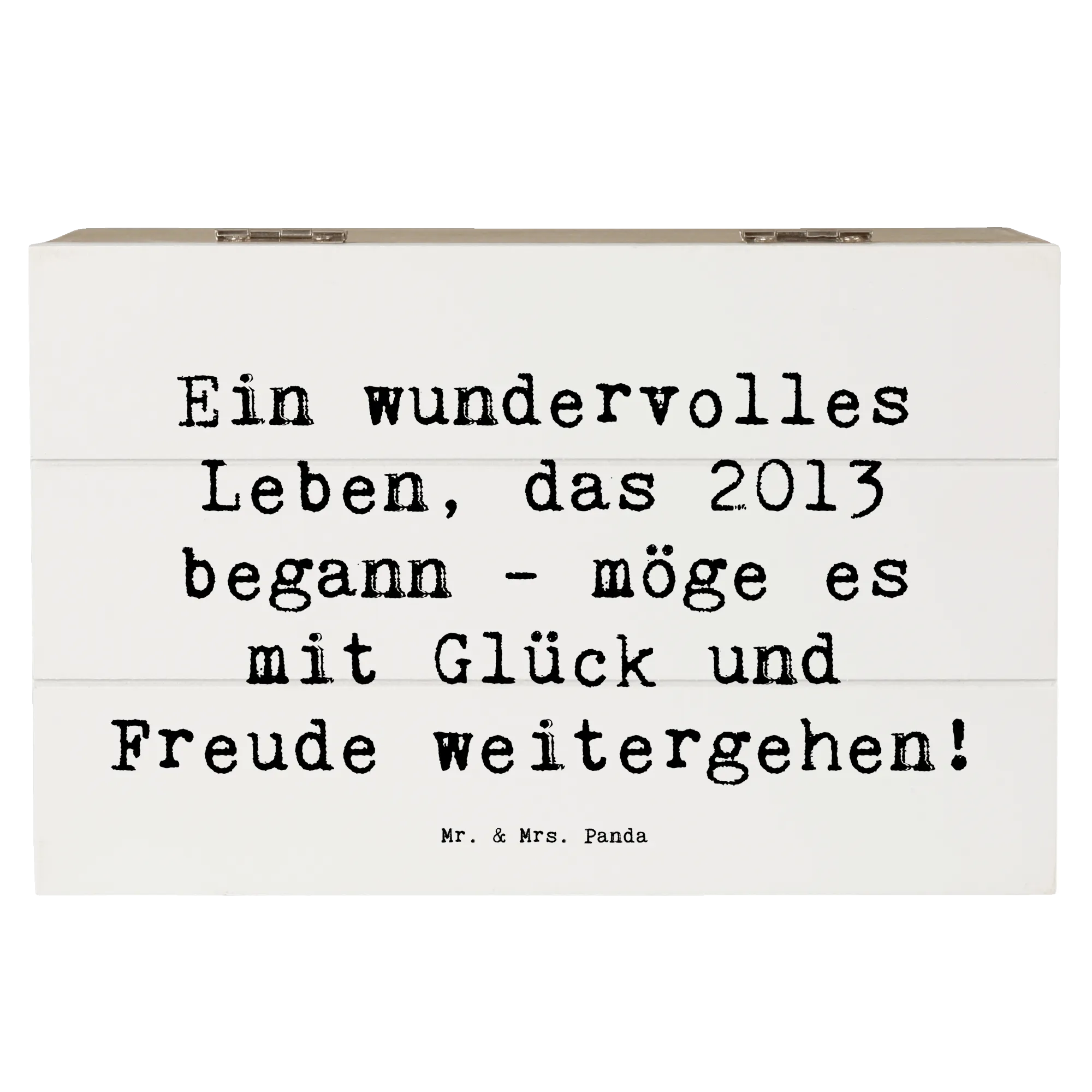 Die wunderschöne Holzkiste von Mr. & Mrs. Panda mit dem Motiv "Ein wundervolles Leben, das 2013 begann - möge es mit Glück und Freude weitergehen!" ist der perfekte Begleiter für alle, die besondere Erlebnisse und Erinnerungen festhalten möchten.
