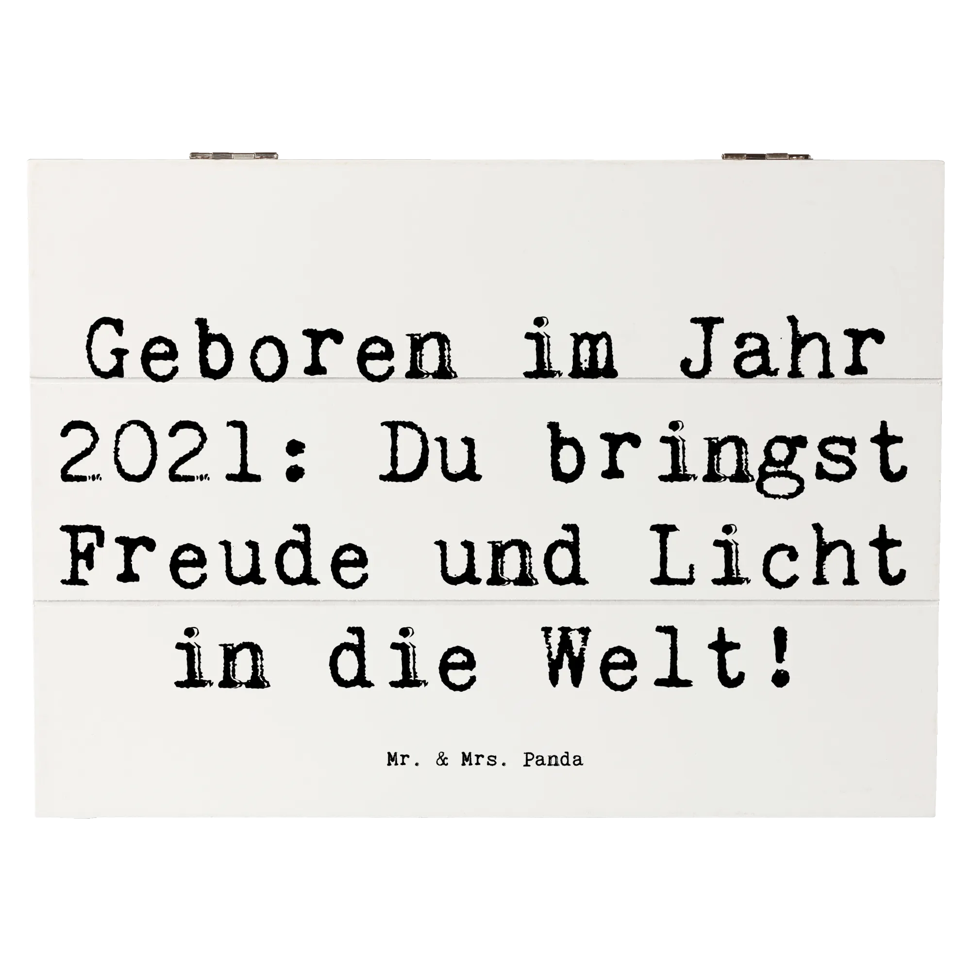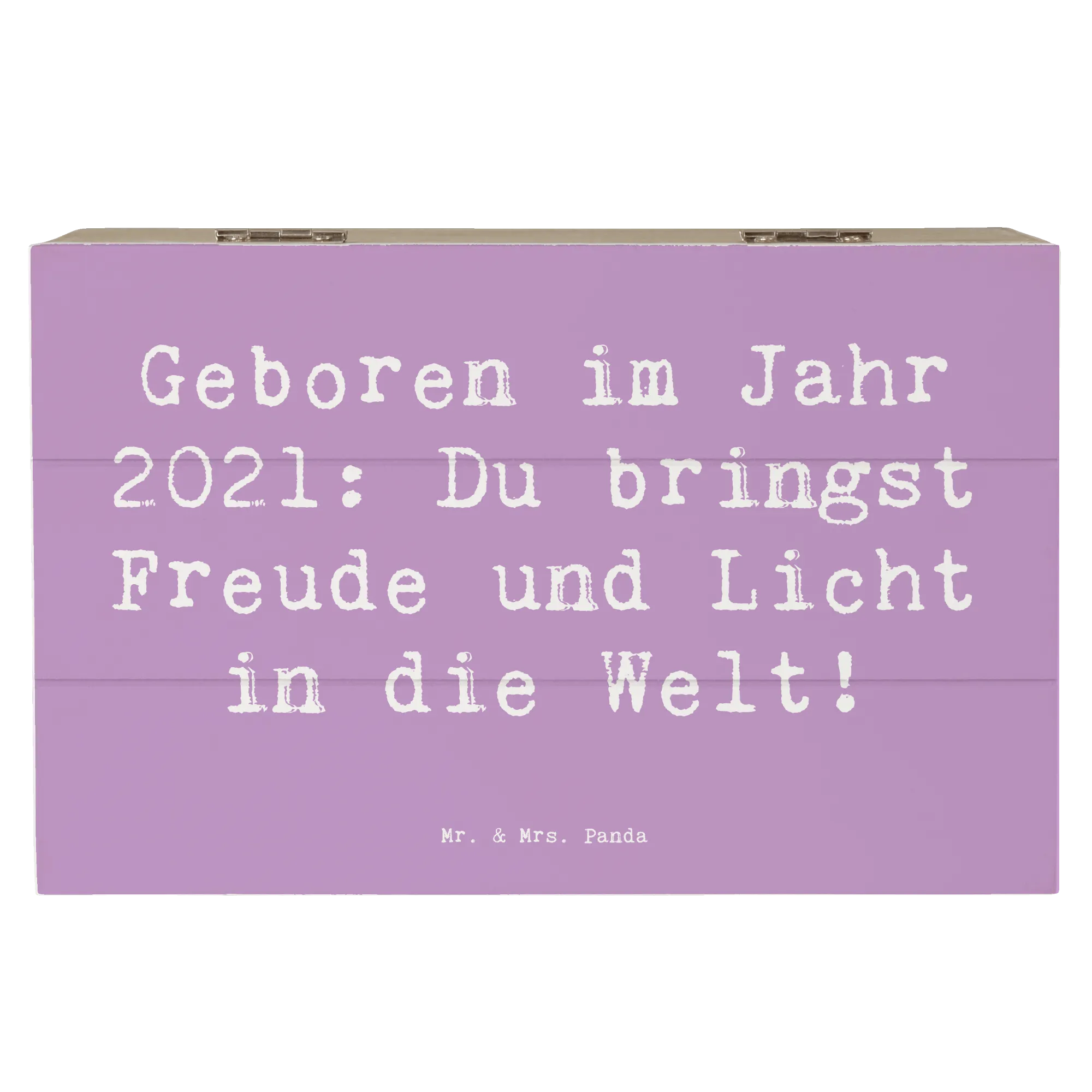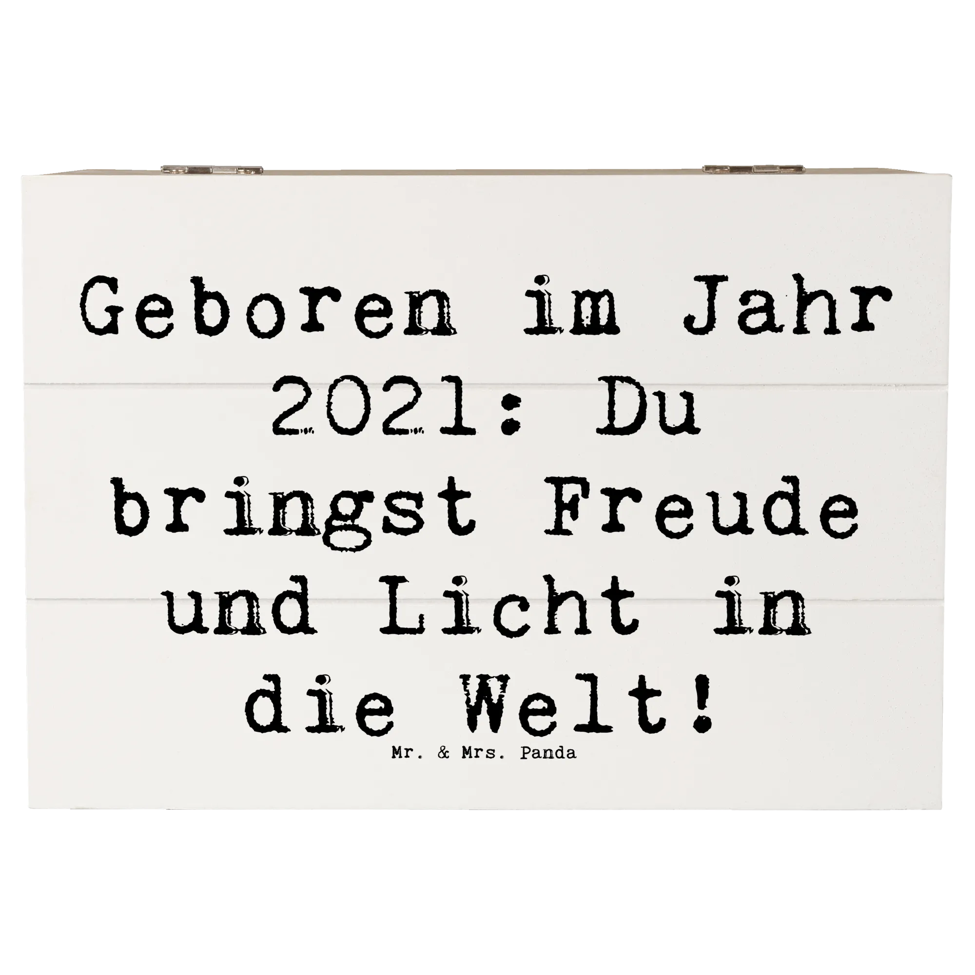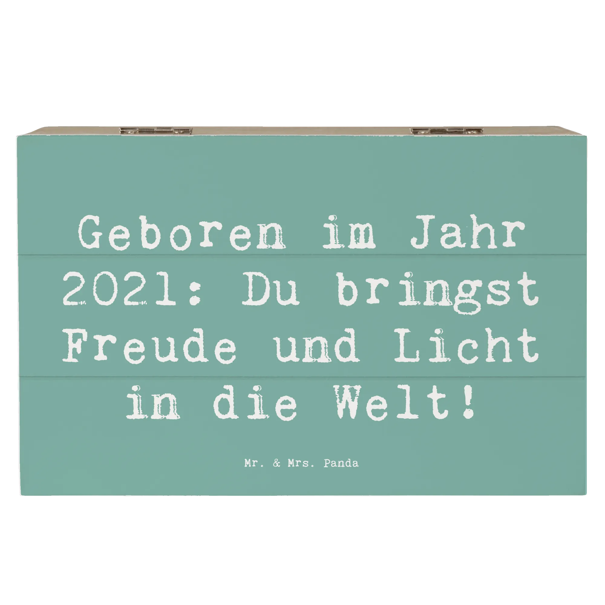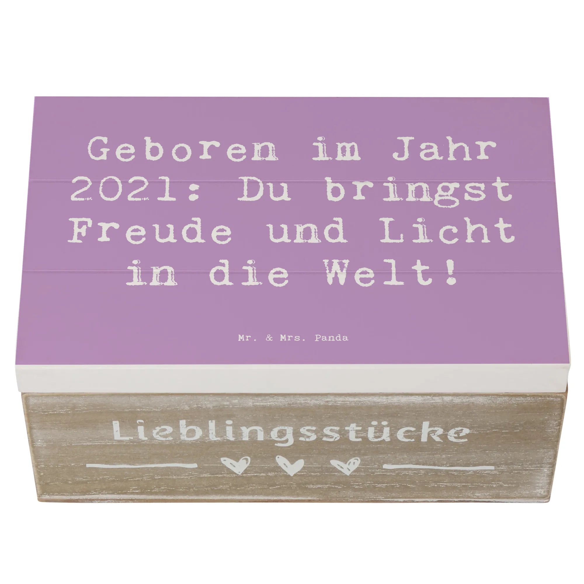 Das besondere Design mit dem Spruch 'Geboren im Jahr 2021: Du bringst Freude und Licht in die Welt!' macht sie zu etwas Einzigartigem. Liebe und Kreativität fließen in jedes Detail, und so wurde auch dieses Motiv von der talentierten Mrs. Panda handgezeichnet. Diese Holzkiste ist nicht nur eine dekorative Aufbewahrungsbox, sondern ein echtes Schmuckstück, das jeden Raum aufwertet.