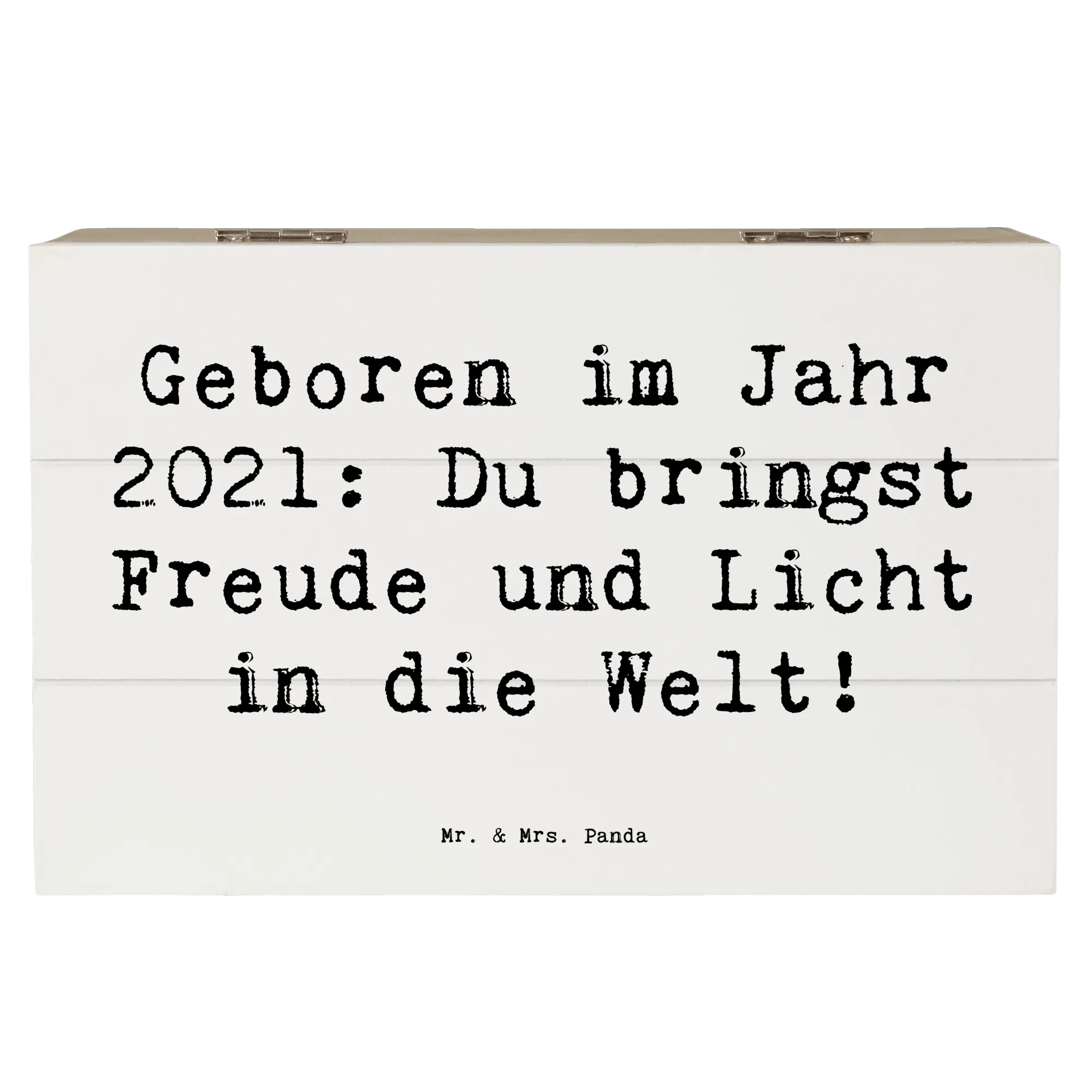 Die wunderschöne Holzkiste von Mr. & Mrs. Panda mit dem Motif 'Geboren im Jahr 2021: Du bringst Freude und Licht in die Welt!' ist das perfekte Geschenk für alle, die einen besonderen Menschen feiern möchten.