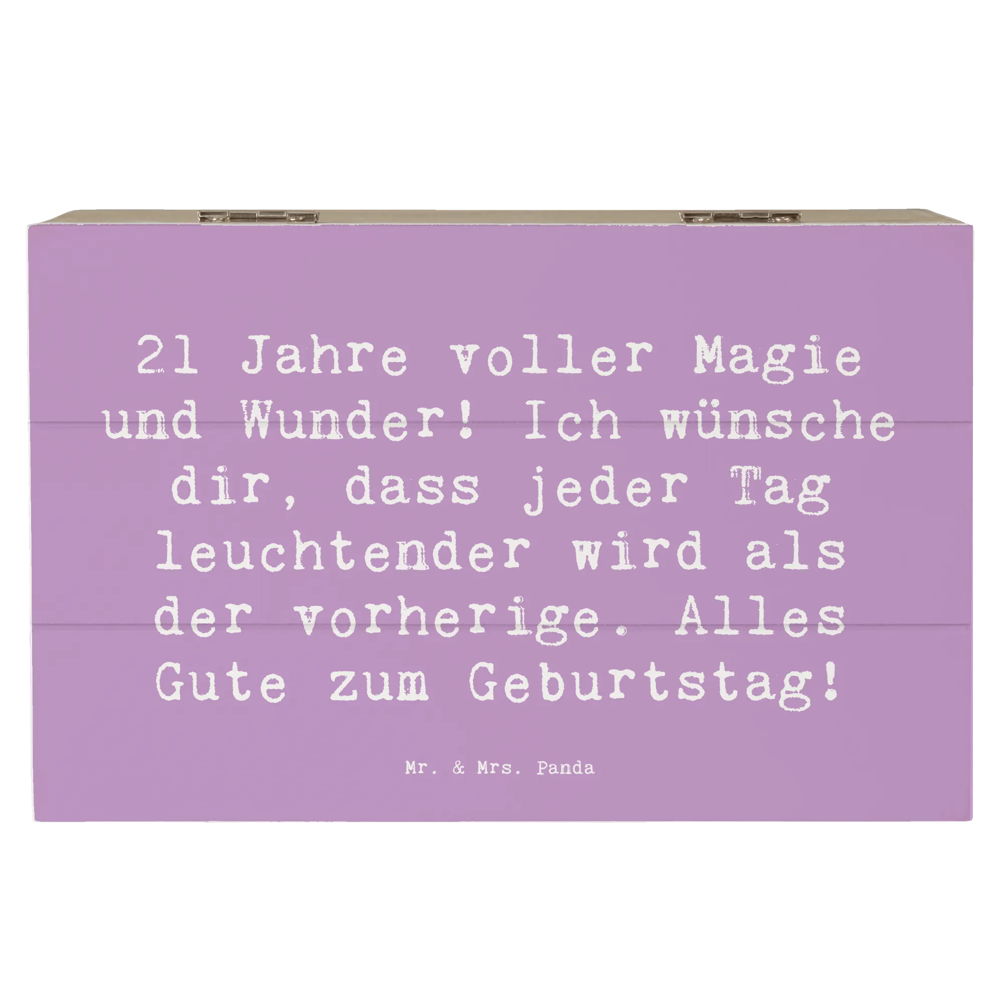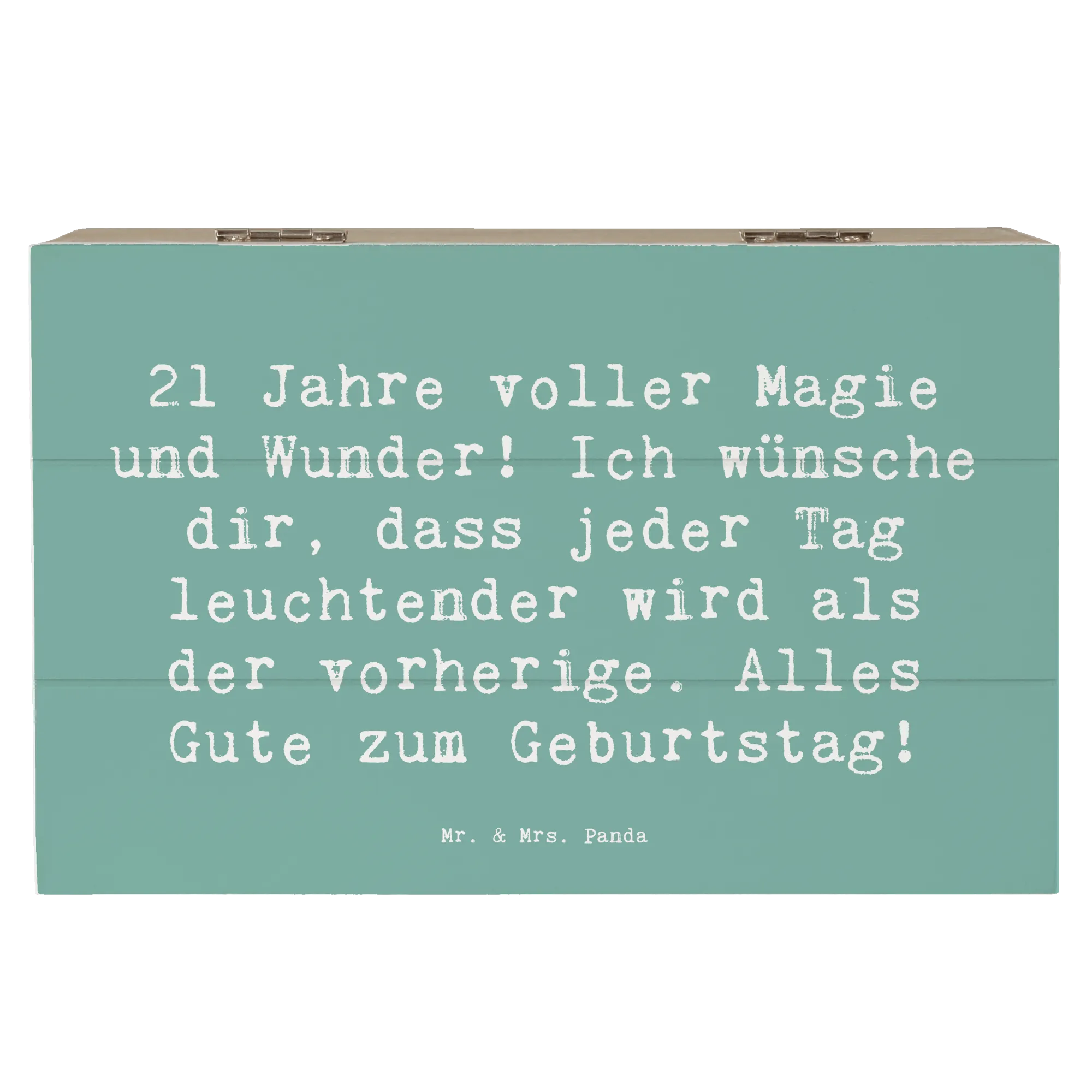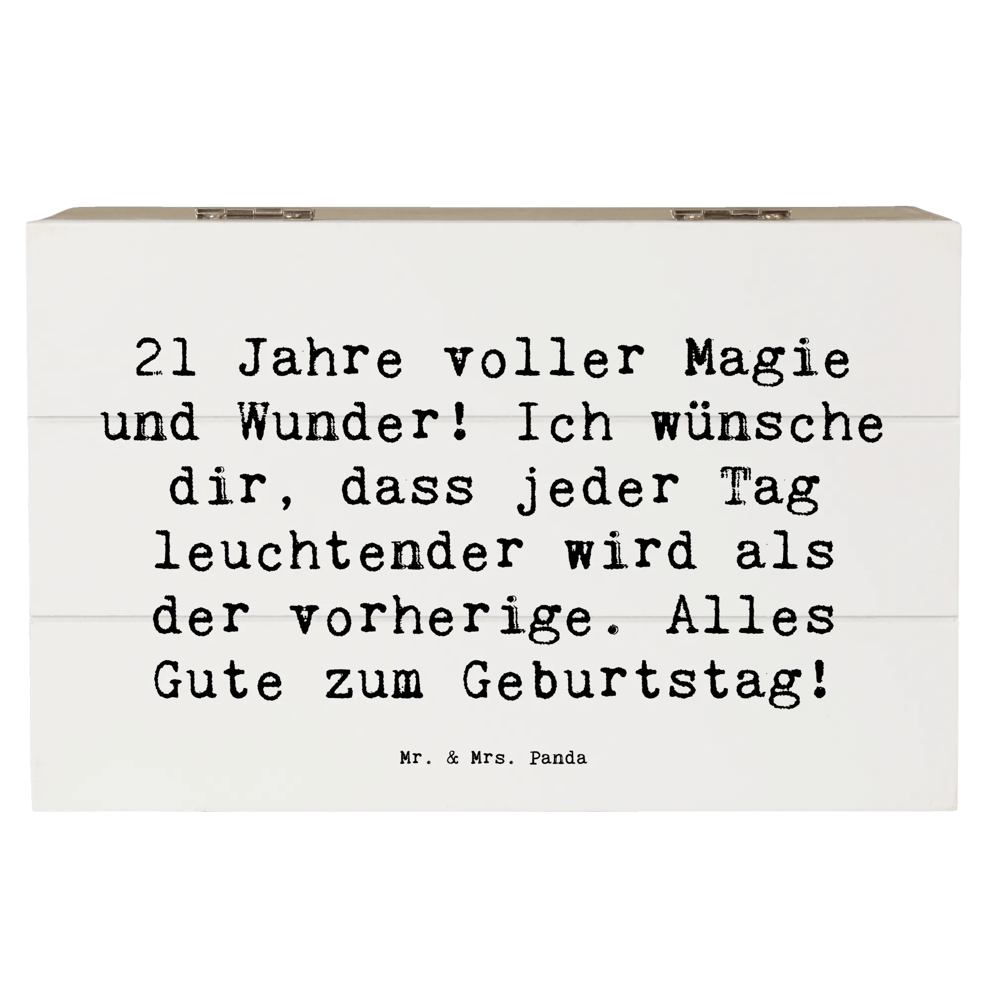 Die wunderschöne Holzkiste von Mr. & Mrs. Panda ist das perfekte Geschenk zum 21. Geburtstag! Mit dem liebevollen Slogan "21 Jahre voller Magie und Wunder! Ich wünsche dir, dass jeder Tag leuchtender wird als der vorherige. Alles Gute zum Geburtstag!" wird diese Kiste sicherlich ein Lächeln auf das Gesicht des Geburtstagskindes zaubern.