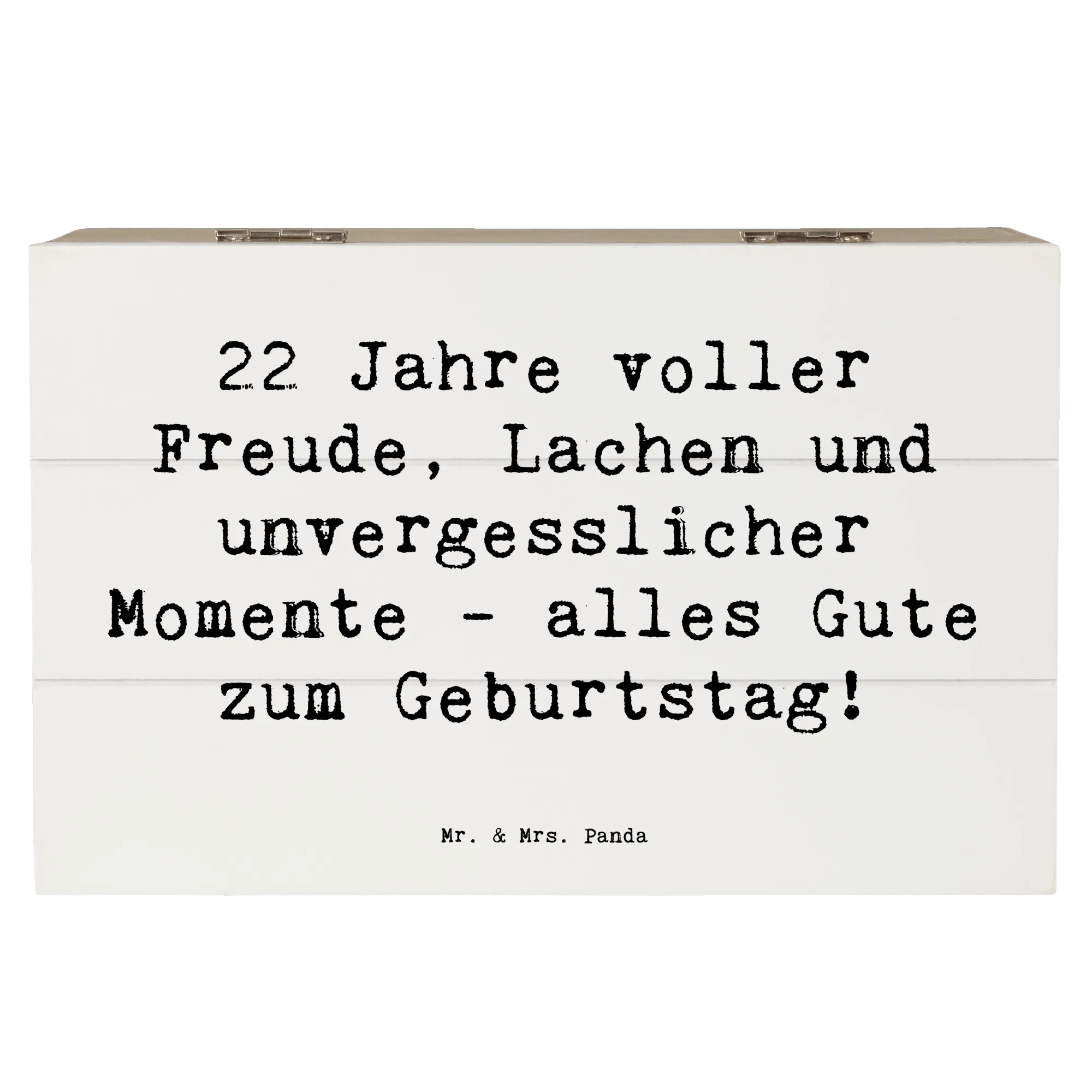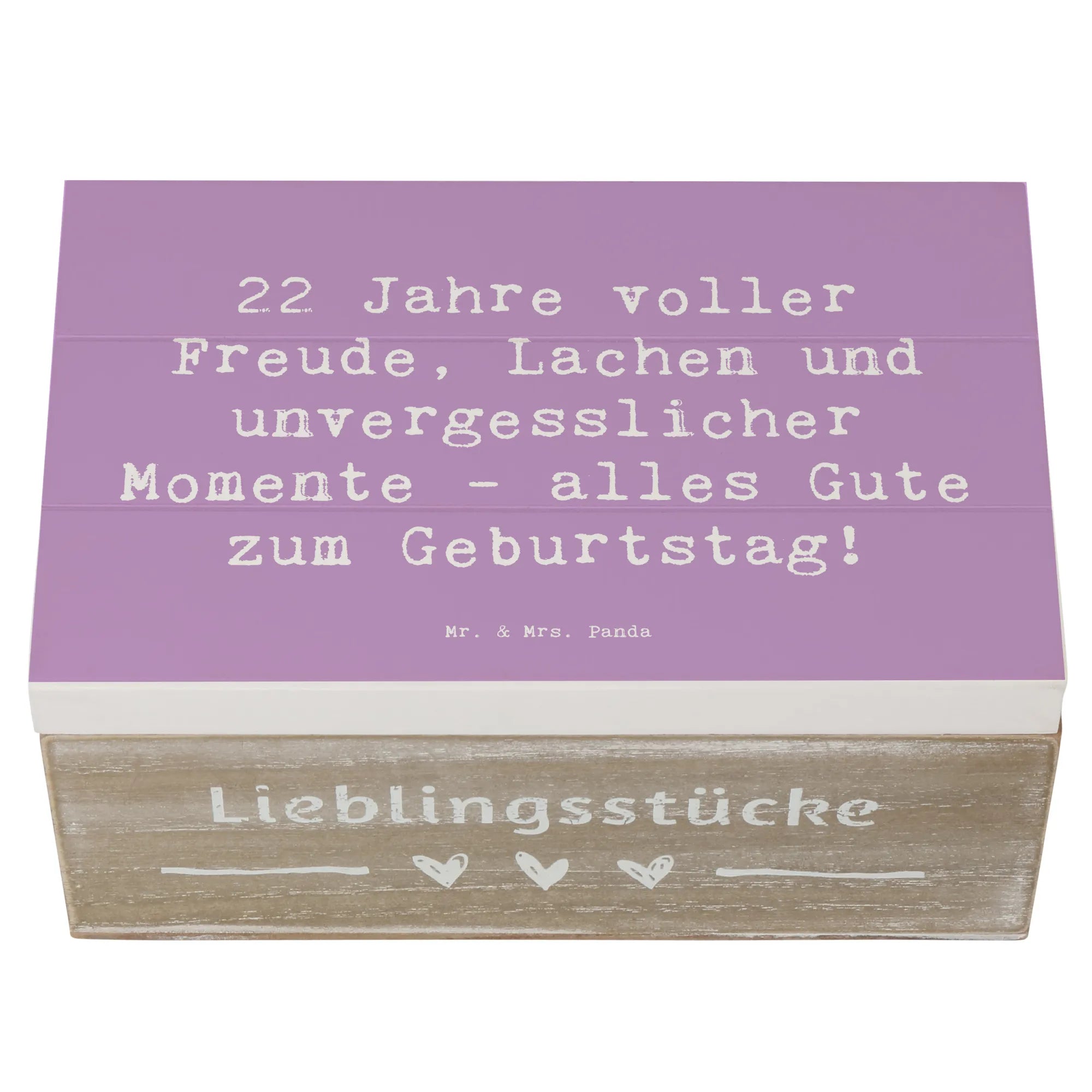 Die wunderschöne Holzkiste von Mr. & Mrs. Panda ist das perfekte Geschenk zum 22. Geburtstag! Mit ihrem liebevollen Design und dem Slogan "22 Jahre voller Freude, Lachen und unvergesslicher Momente - alles Gute zum Geburtstag!" ist sie mehr als nur eine Kiste – sie ist ein Ort voller Erinnerungen.