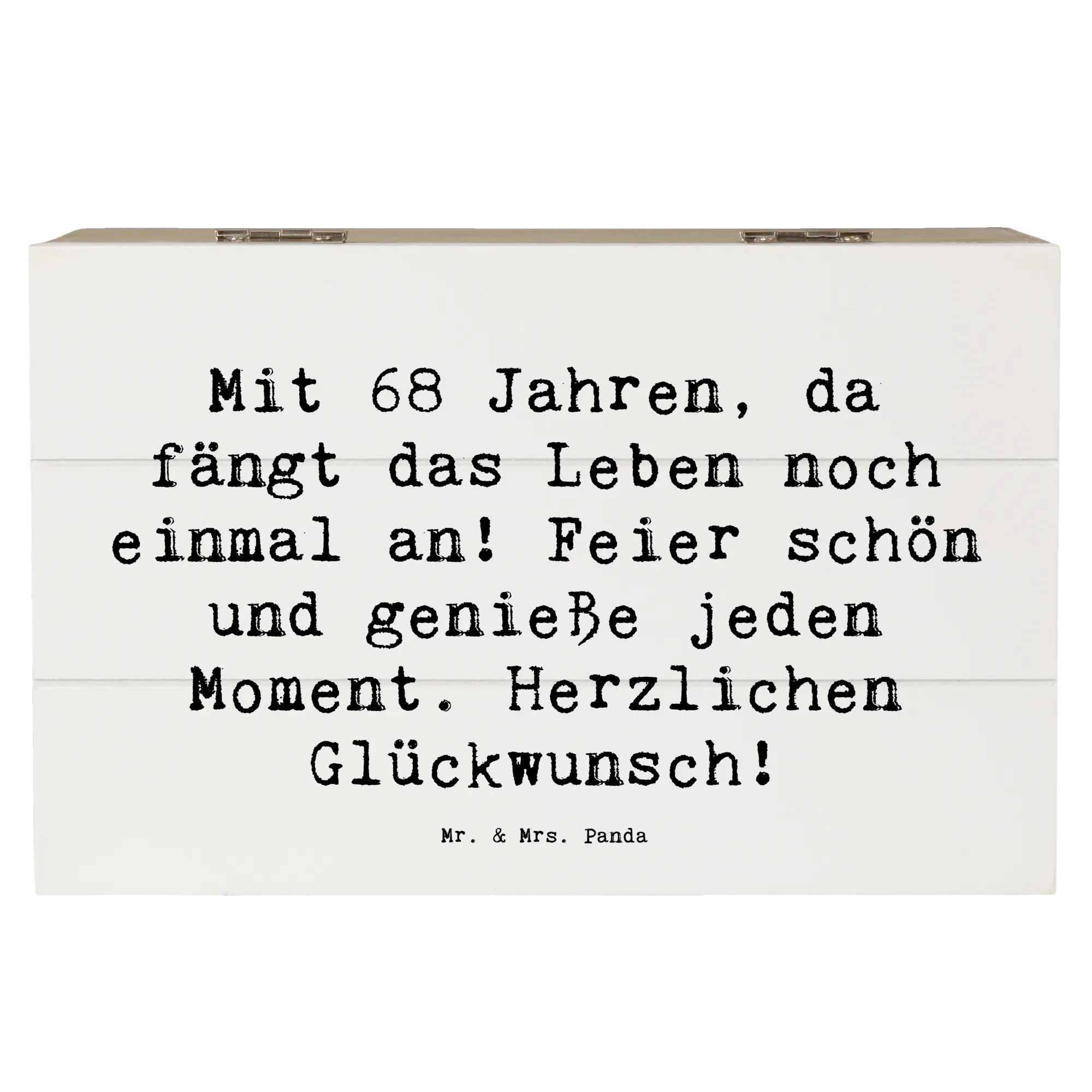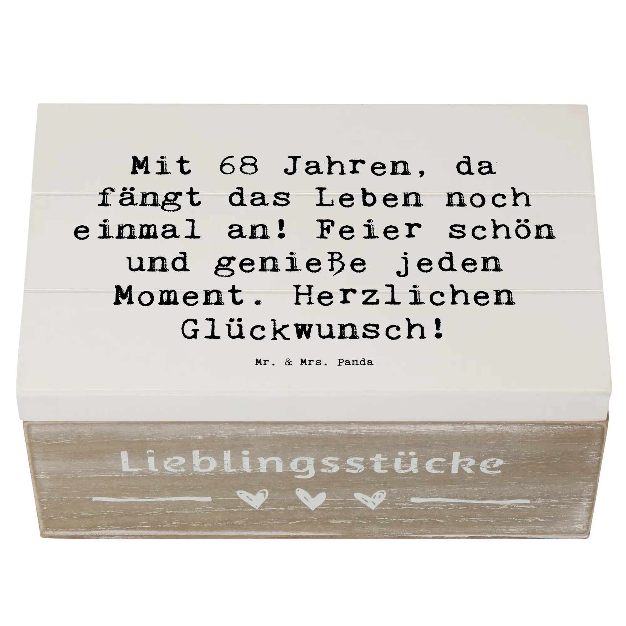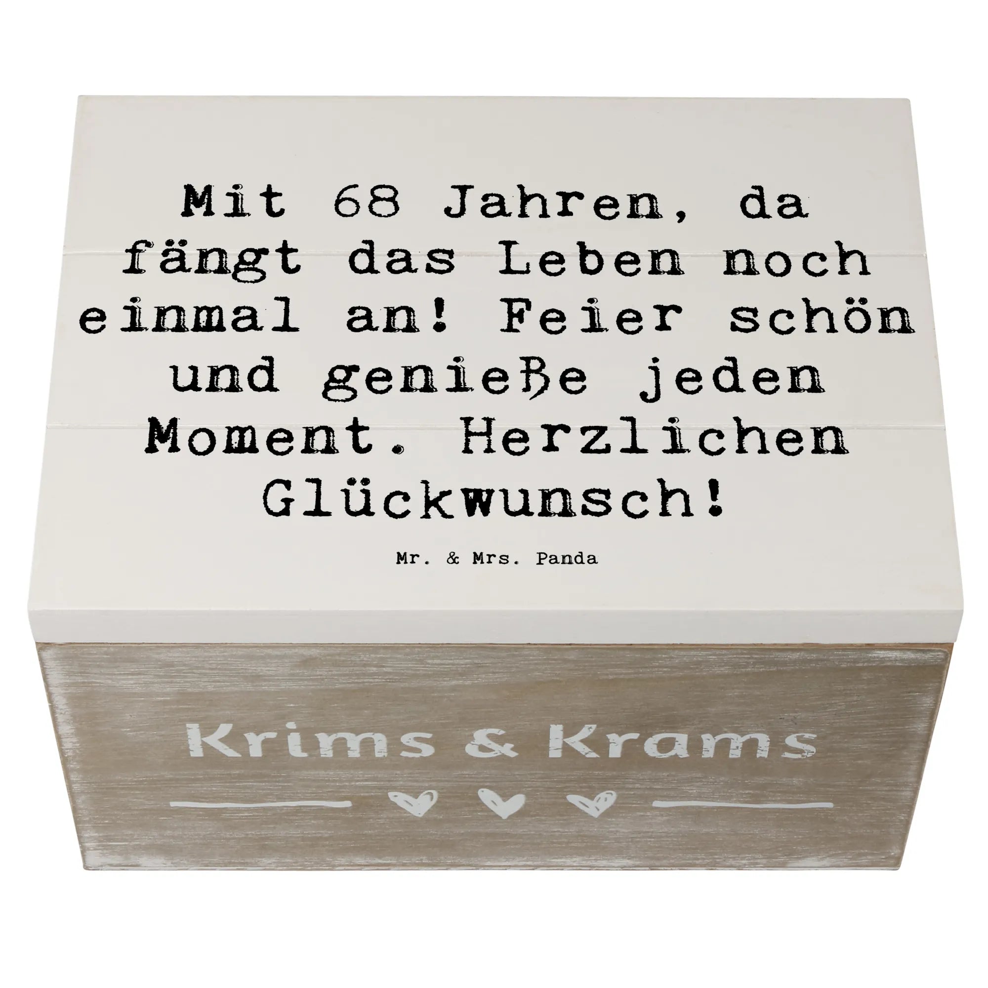 Die wunderschöne Holzkiste von Mr. & Mrs. Panda ist das ideale Geschenk zum 68. Geburtstag! Mit dem liebevollen Spruch "Mit 68 Jahren, da fängt das Leben noch einmal an! Feier schön und genieße jeden Moment. Herzlichen Glückwunsch!" bietet diese Kiste nicht nur Platz für Schätze, sondern auch für die schönsten Erinnerungen.