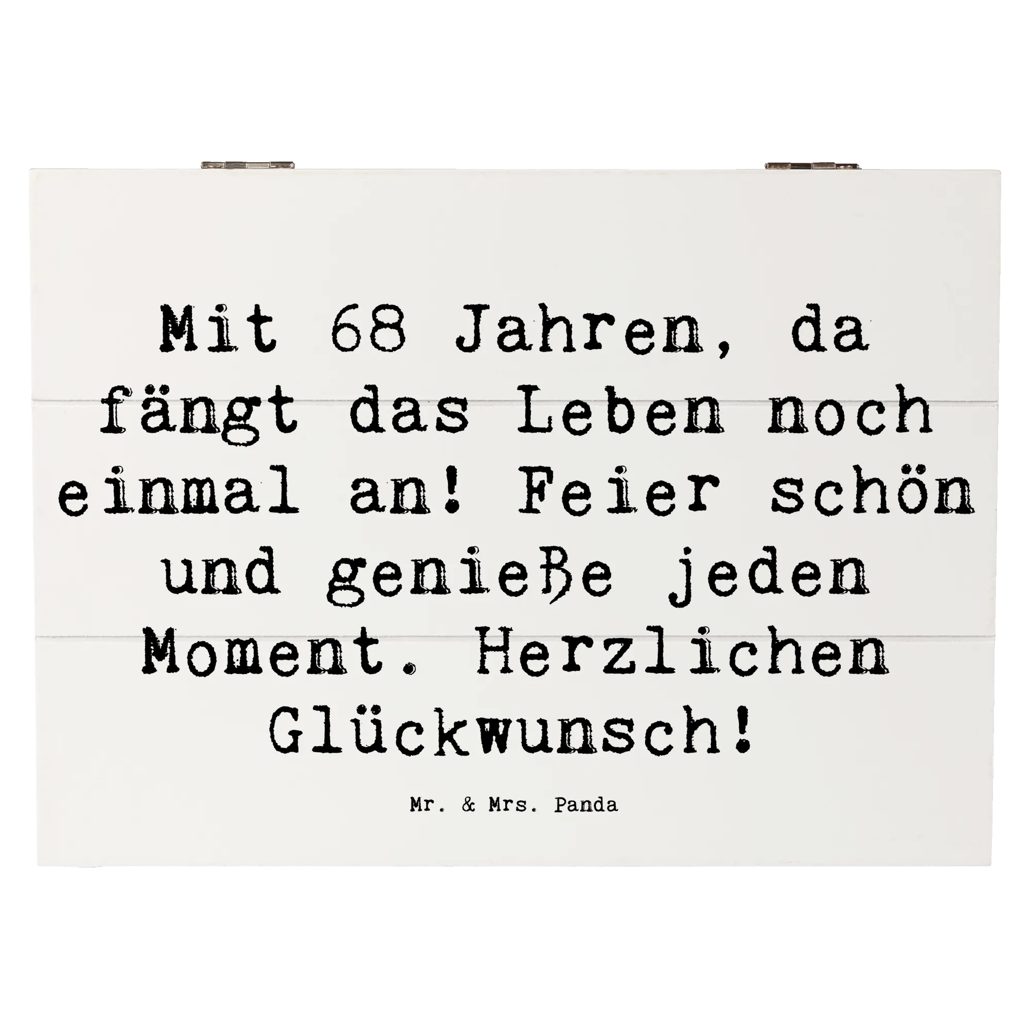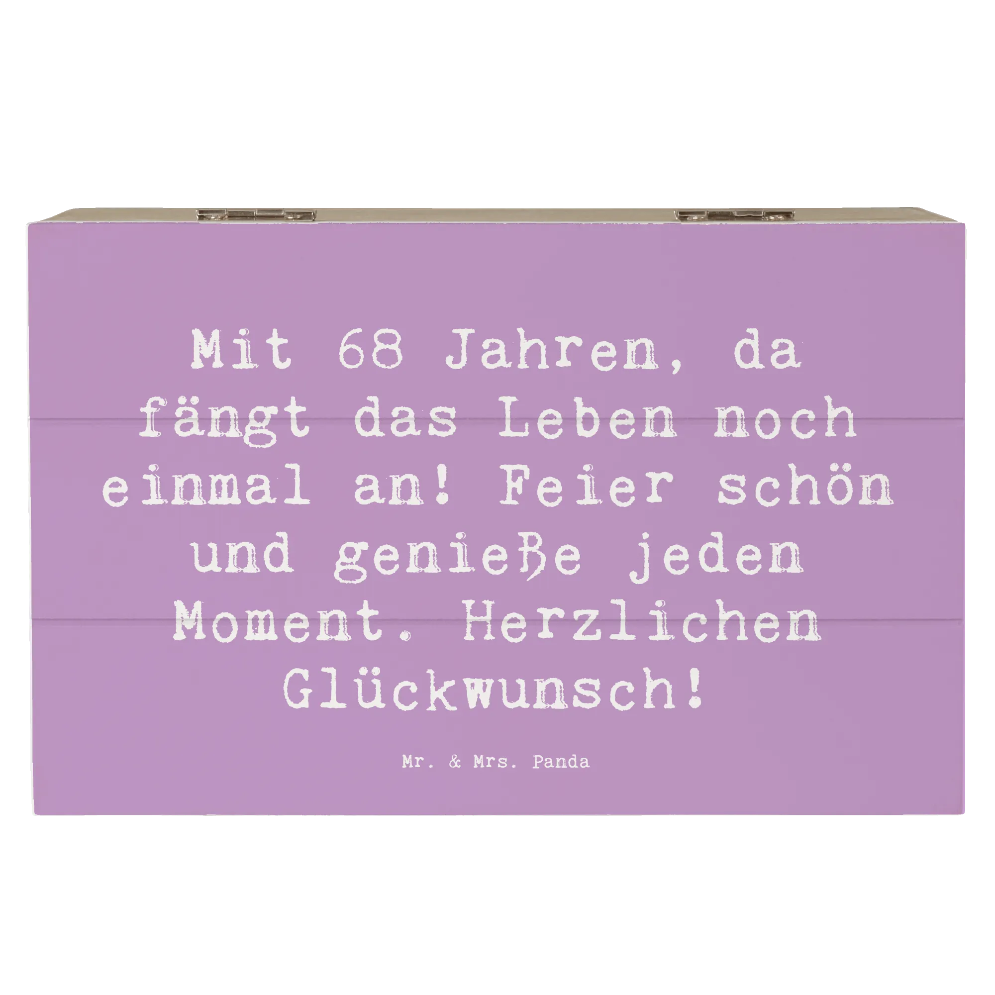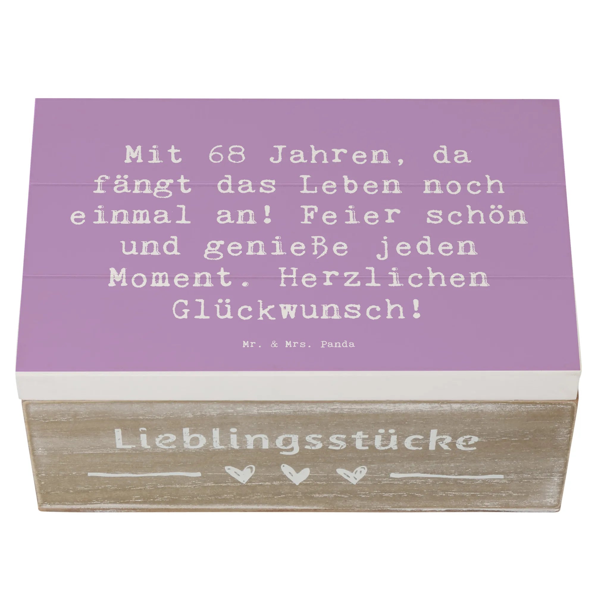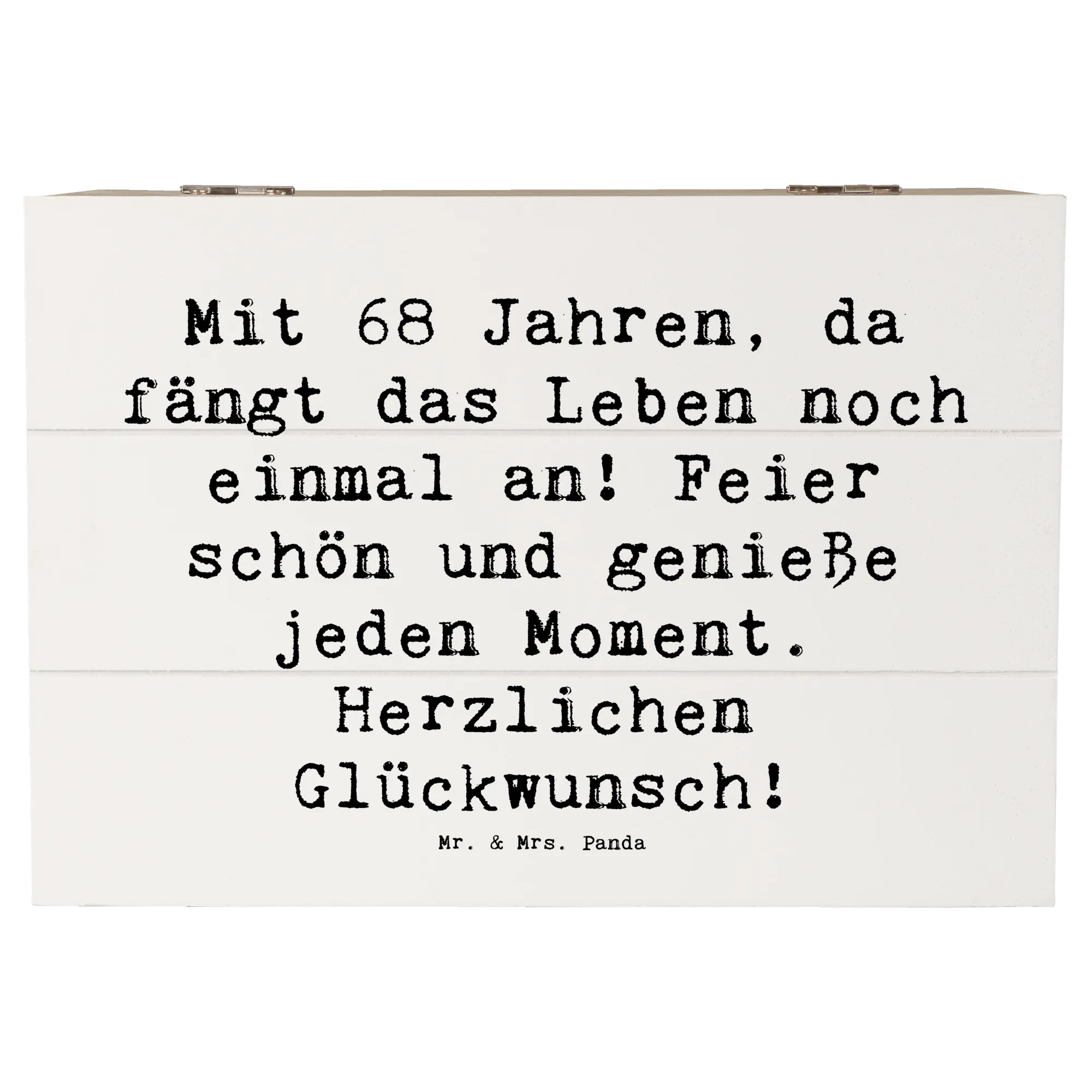 Die wunderschöne Holzkiste von Mr. & Mrs. Panda ist das ideale Geschenk zum 68. Geburtstag! Mit dem liebevollen Spruch "Mit 68 Jahren, da fängt das Leben noch einmal an! Feier schön und genieße jeden Moment. Herzlichen Glückwunsch!" bietet diese Kiste nicht nur Platz für Schätze, sondern auch für die schönsten Erinnerungen.