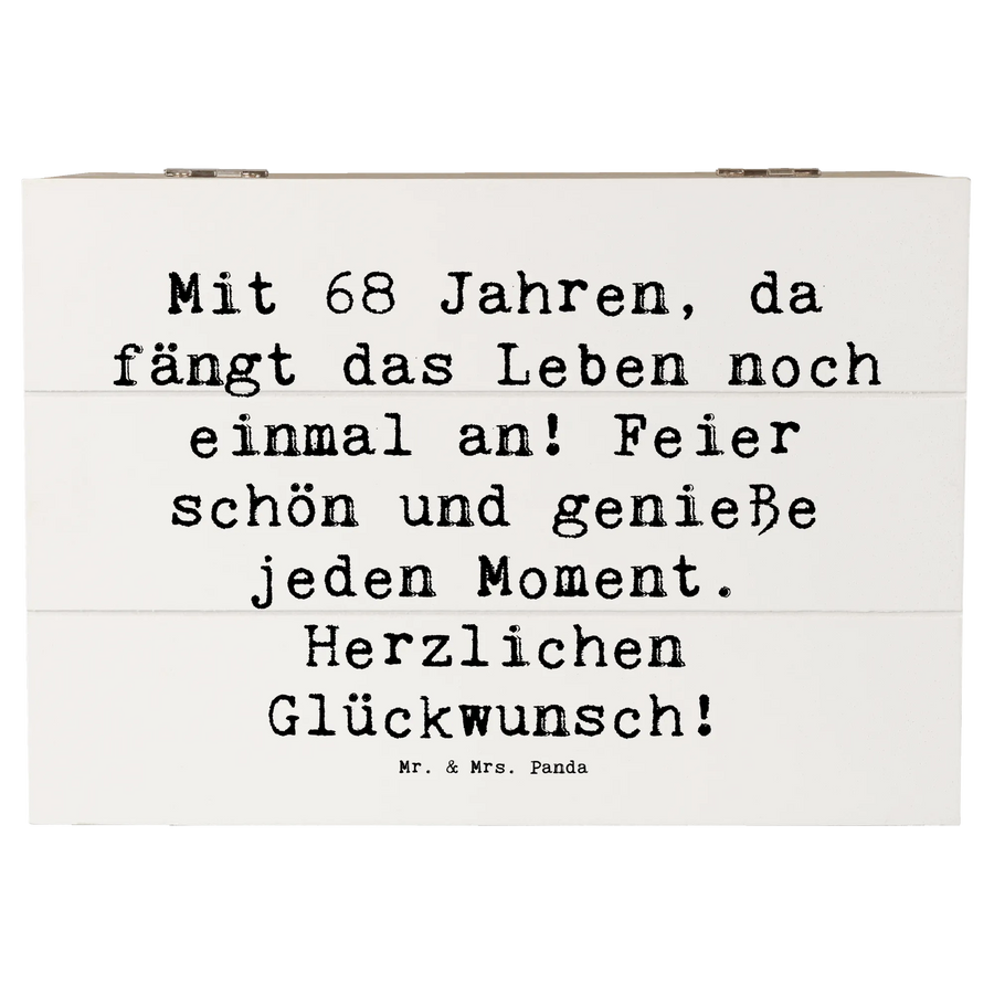 Die wunderschöne Holzkiste zum 68. Geburtstag von Mr. & Mrs. Panda ist das perfekte Geschenk für all jene, die diesen besonderen Tag feiern möchten! Mit einem lebensbejahenden Spruch, der lautet: "Mit 68 Jahren, da fängt das Leben noch einmal an! Feier schön und genieße jeden Moment. Herzlichen Glückwunsch!" zieht dieses liebevoll designte Stück alle Blicke auf sich.