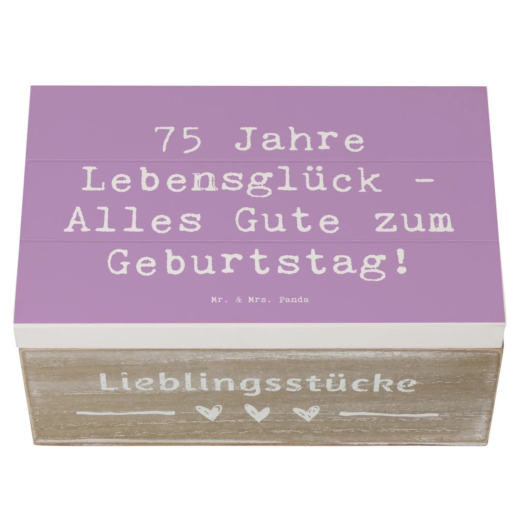 Die wunderschöne Holzkiste von Mr. & Mrs. Panda ist das perfekte Geschenk zum 75. Geburtstag! Mit ihrem liebevollen Druck, der den wunderschönen Spruch "75 Jahre Lebensglück - Alles Gute zum Geburtstag!" aufzeigt, bringt sie nicht nur Freude, sondern auch eine persönliche Note in jede Feier.