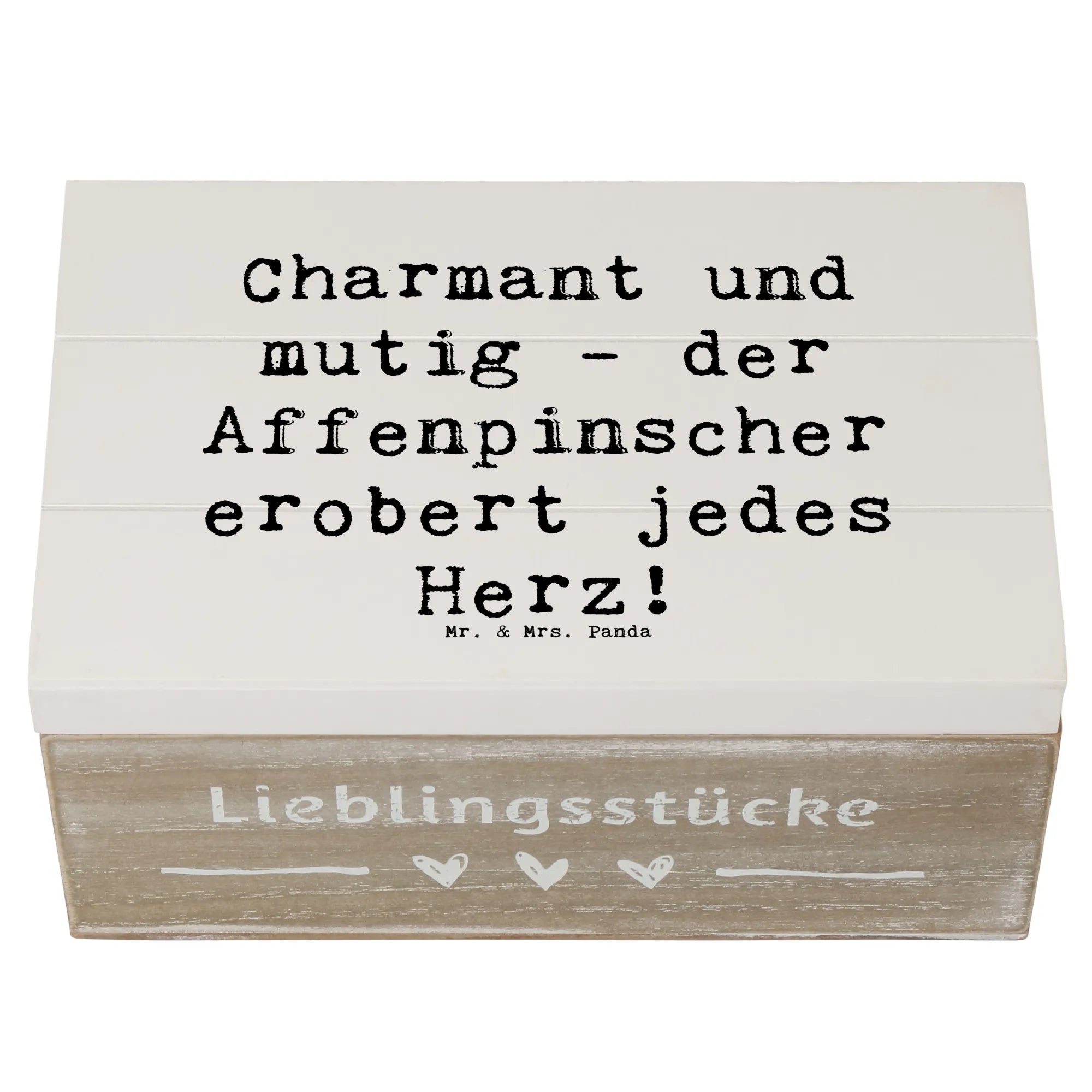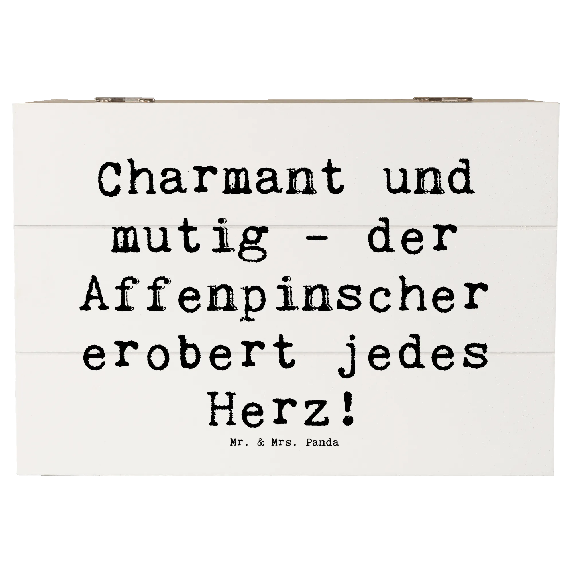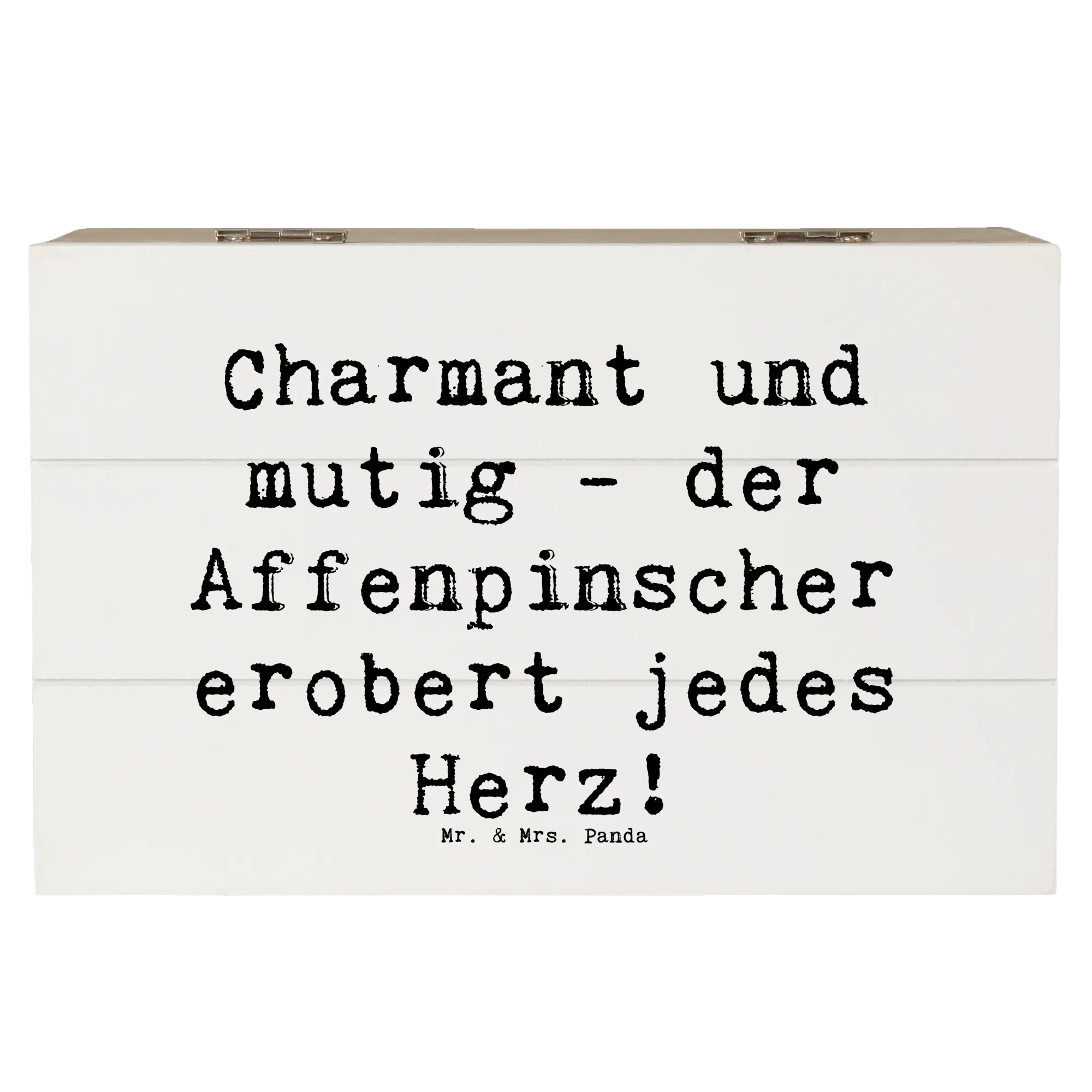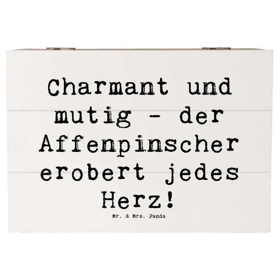Die Holzkiste mit dem motivierenden Spruch "Charmant und mutig - der Affenpinscher erobert jedes Herz!" von Mr. & Mrs. Panda ist das perfekte Geschenk für Hundeliebhaber und all diejenigen, die das Besondere lieben. Egal ob zur Geburt des Lieblingshundes, zur Kommunion oder Konfirmation - diese Kiste ist ein absolutes Must-Have für jeden Hundefan.