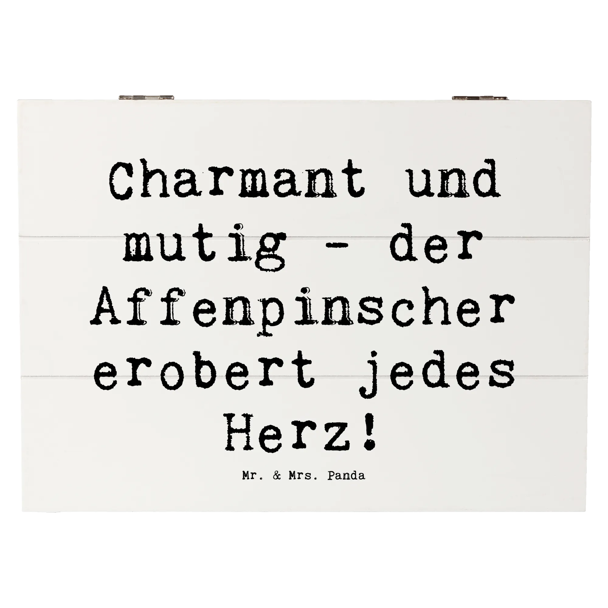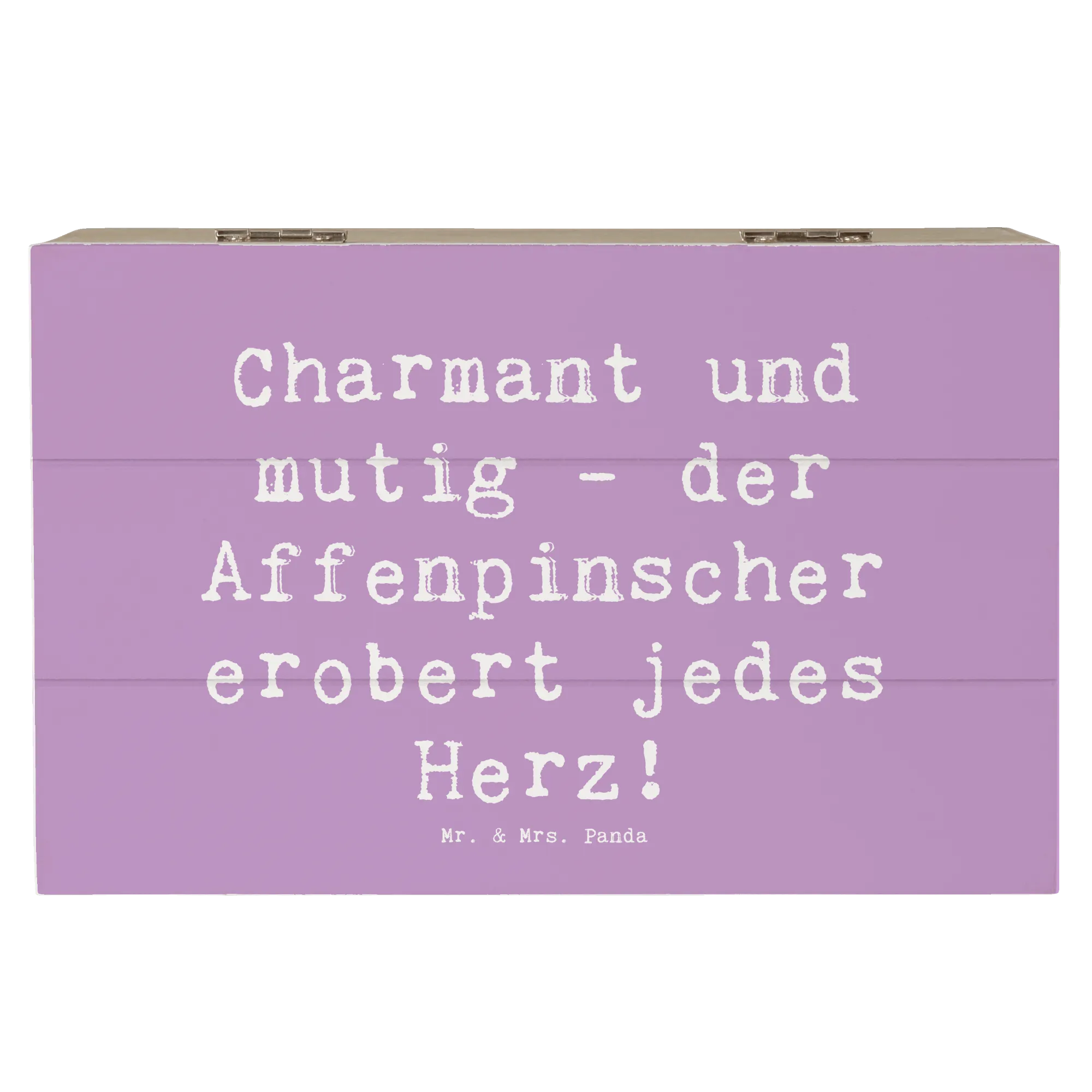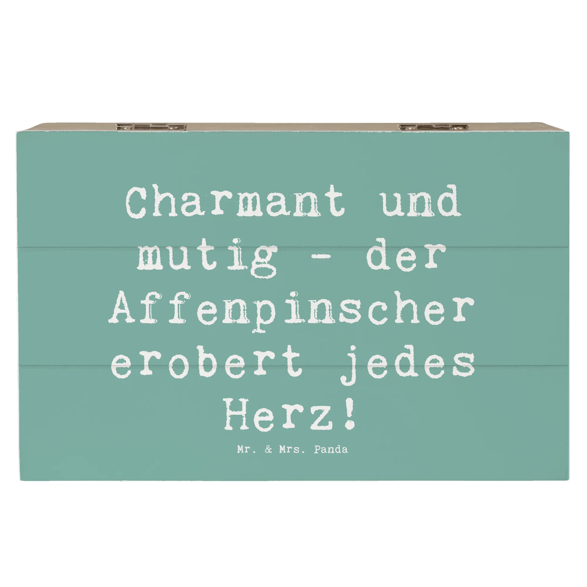Die Holzkiste mit dem motivierenden Spruch "Charmant und mutig - der Affenpinscher erobert jedes Herz!" von Mr. & Mrs. Panda ist das perfekte Geschenk für Hundeliebhaber und all diejenigen, die das Besondere lieben. Egal ob zur Geburt des Lieblingshundes, zur Kommunion oder Konfirmation - diese Kiste ist ein absolutes Must-Have für jeden Hundefan.