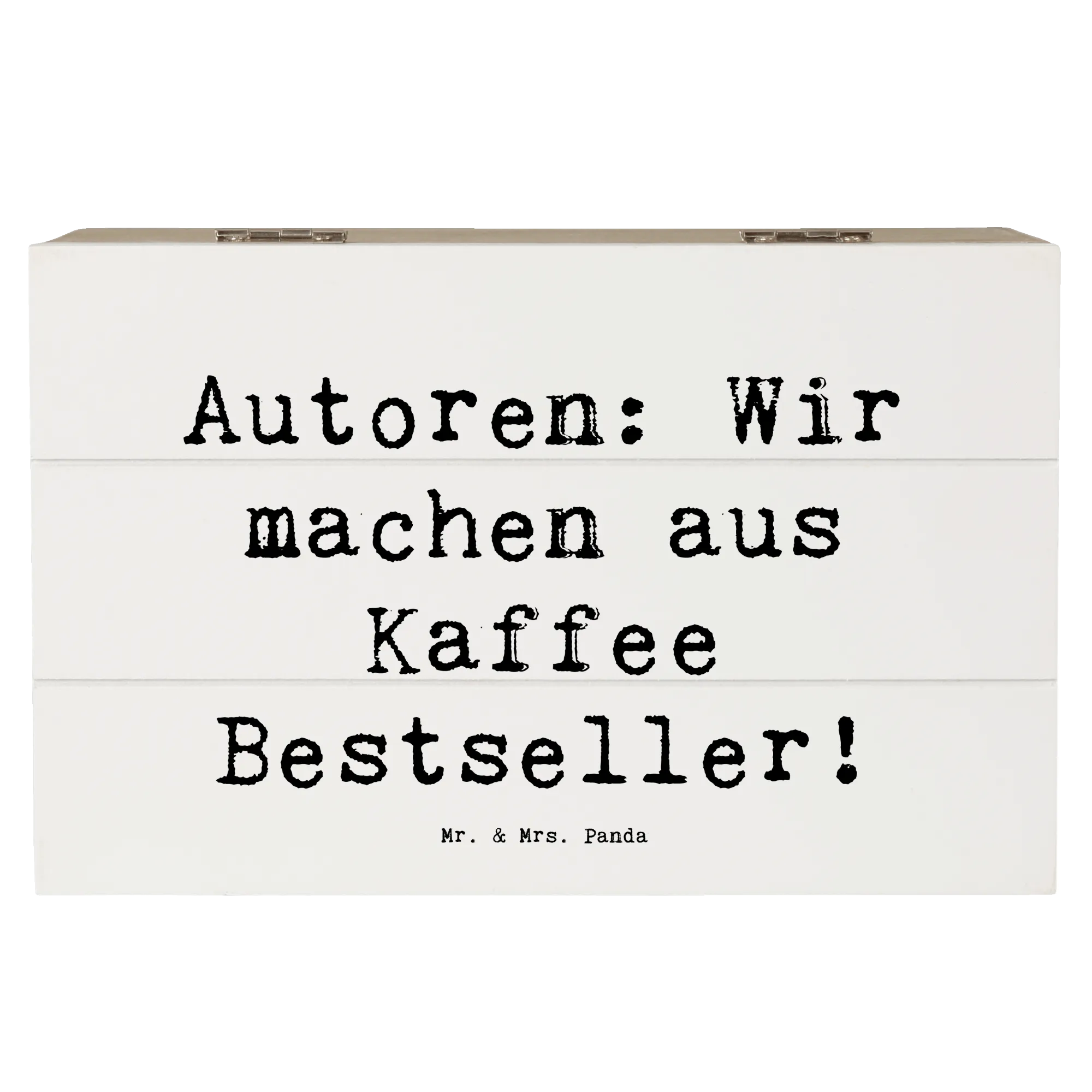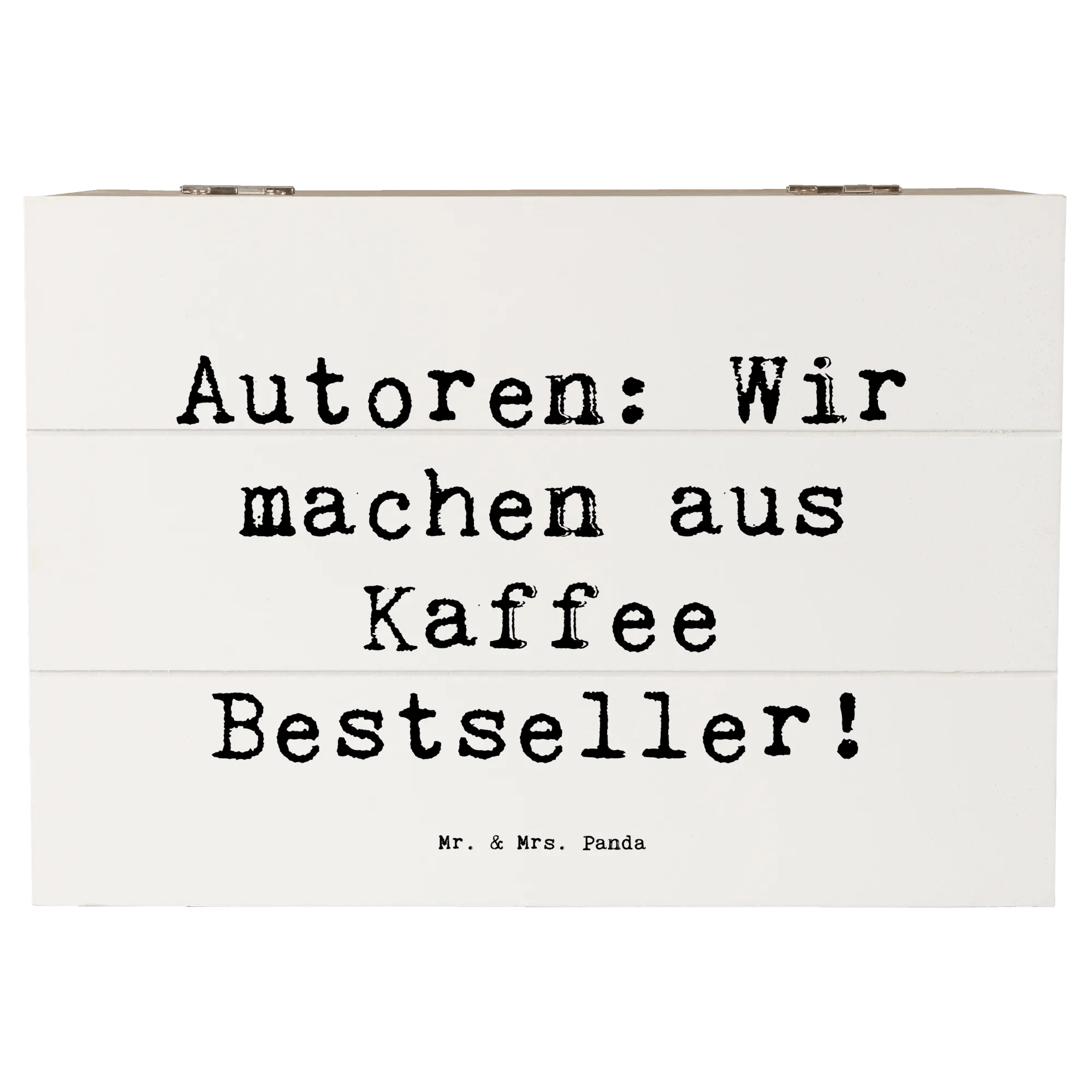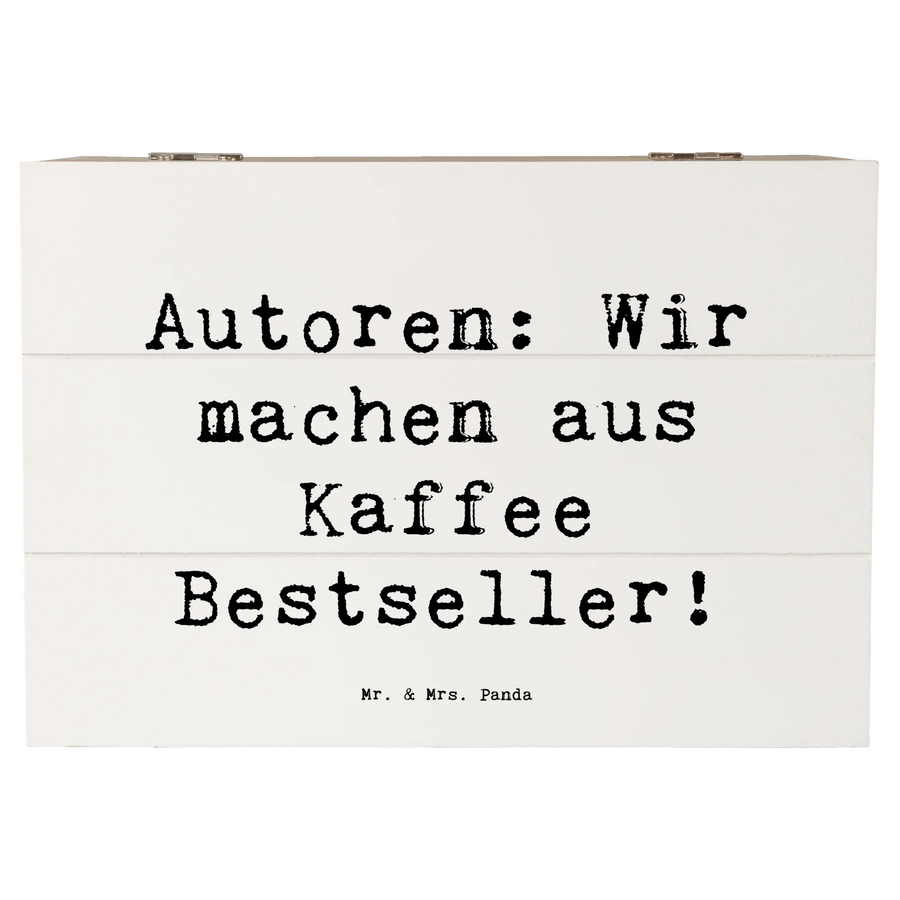 Du suchst nach dem perfekten Geschenk für eine Autorin oder einen Buchliebhaber? Dann ist die Holzkiste "Autorin" von Mr. & Mrs. Panda genau das richtige für dich! Diese wunderschöne Aufbewahrungsbox ist nicht nur ein praktischer Ort, um all die kostbaren Erinnerungen, Notizen oder kleine Schätze zu verstauen, sondern auch eine liebevoll gestaltete Erinnerungskiste, die das Herz jedes kreativen Kopfes höher schlagen lässt. Mit dem ikonischen Spruch "Autoren: Wir machen aus Kaffee Bestseller!" wird sie zum idealen Begleiter für jeden Schreibprozess.
